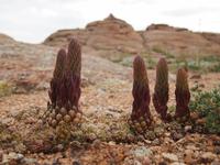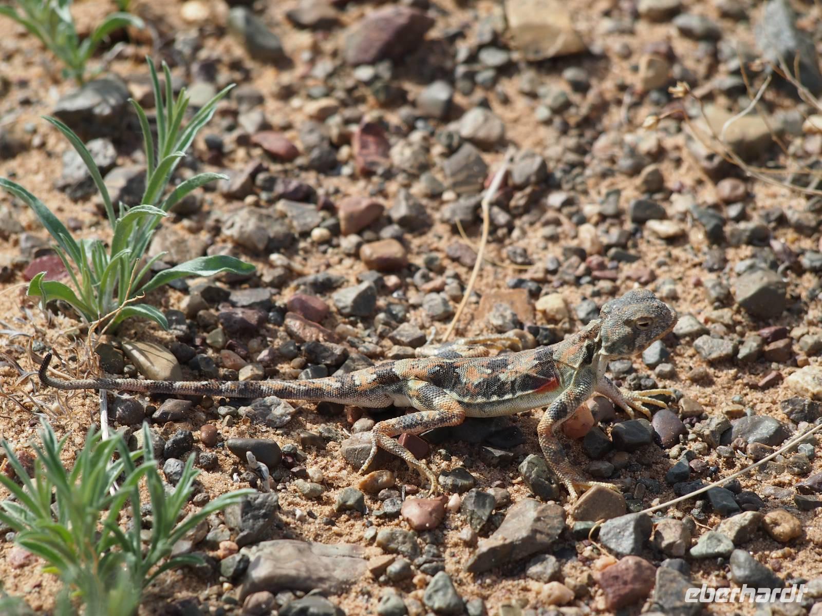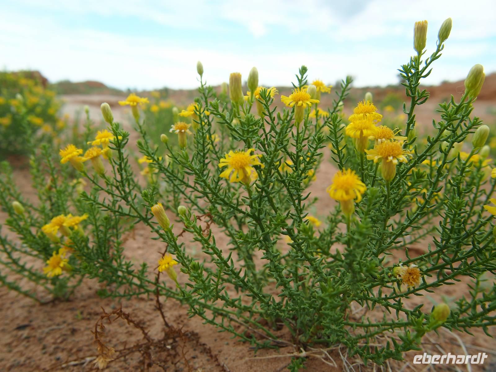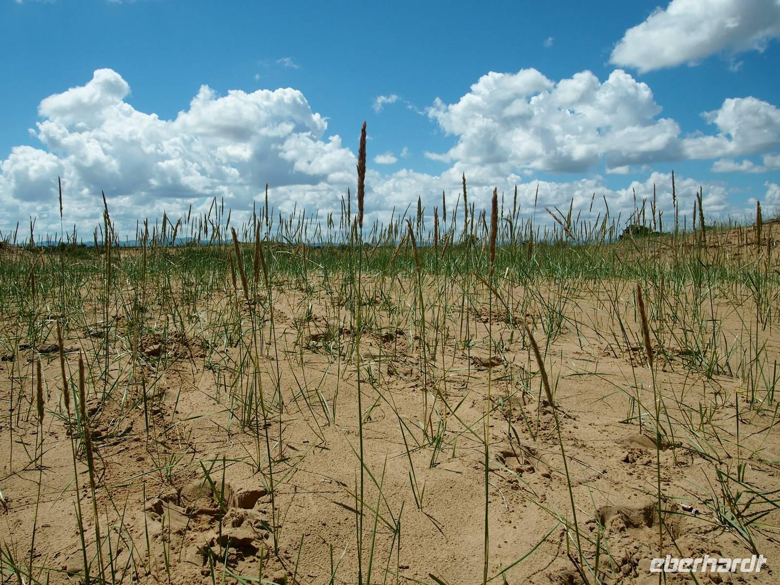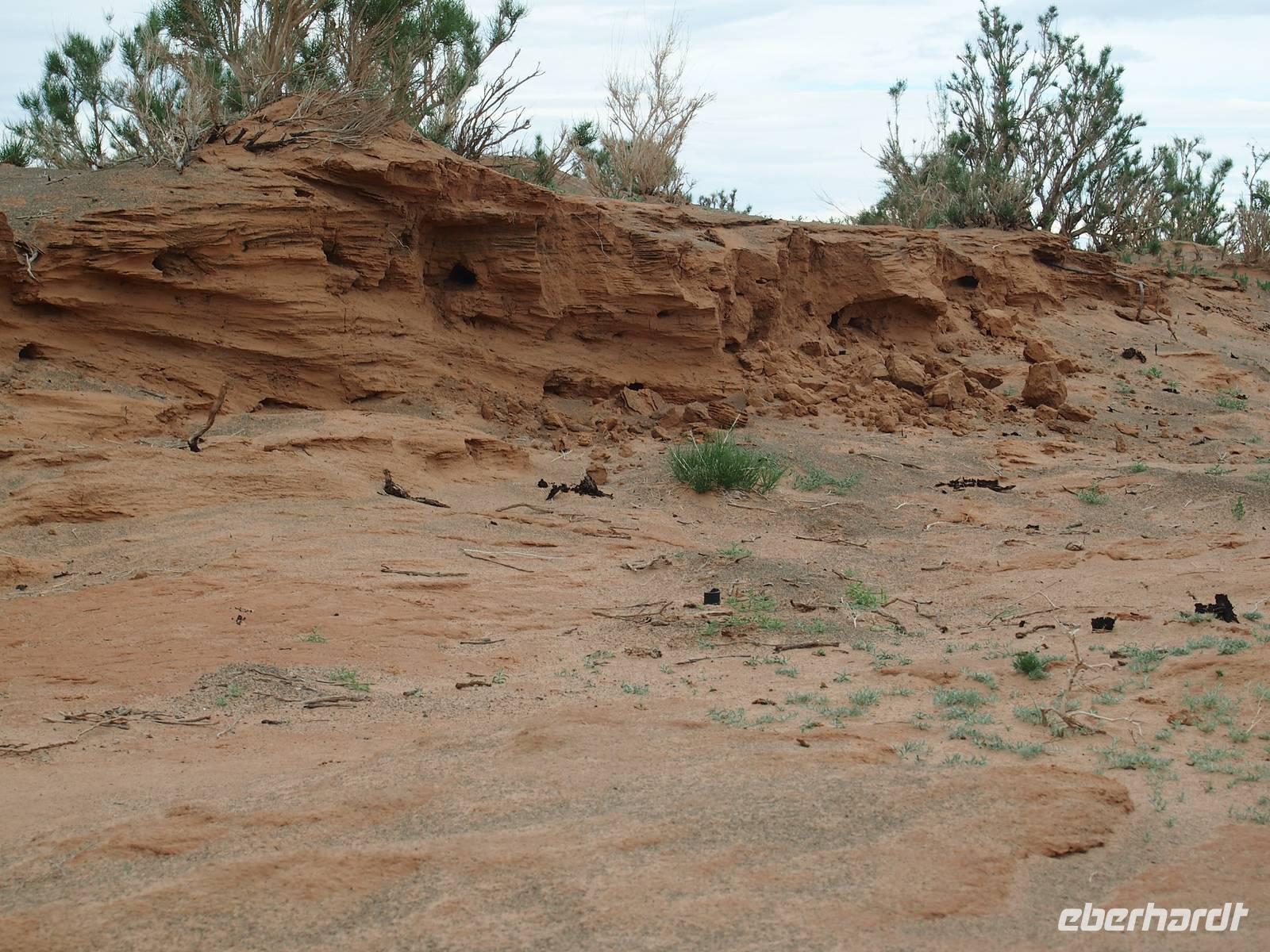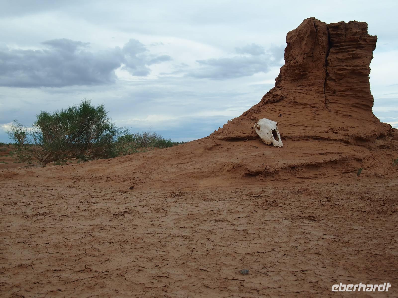 Nach dem Frühstück fuhren wir weiter Richtung Norden durch die Wüste Gobi. Nach relativ kurzer Fahrzeit hatte ein Auto eine Panne und so mussten wir eine kleine Zwangspause einlegen. Die Fahrer konnten das Problem schnell beheben, wir nutzten die Zeit, um die Pflanzenwelt zu begutachten und zu fotografieren. Zu unserem Glück waren zwei größere Kamelherden in unmittelbarer Nähe von uns und so machten wir uns auf den Weg die Tiere zu beobachten. Faszinierend und gespenstisch zugleich war das laute Röhren, welches die Kamele von sich gaben, da die Tiere, die wir bis dahin zu Gesicht bekommen hatten, völlig geräuschlos waren. Wir waren doch sehr erstaunt über den Klang, der mit einem Motorradgeräusch zu vergleichen ist.