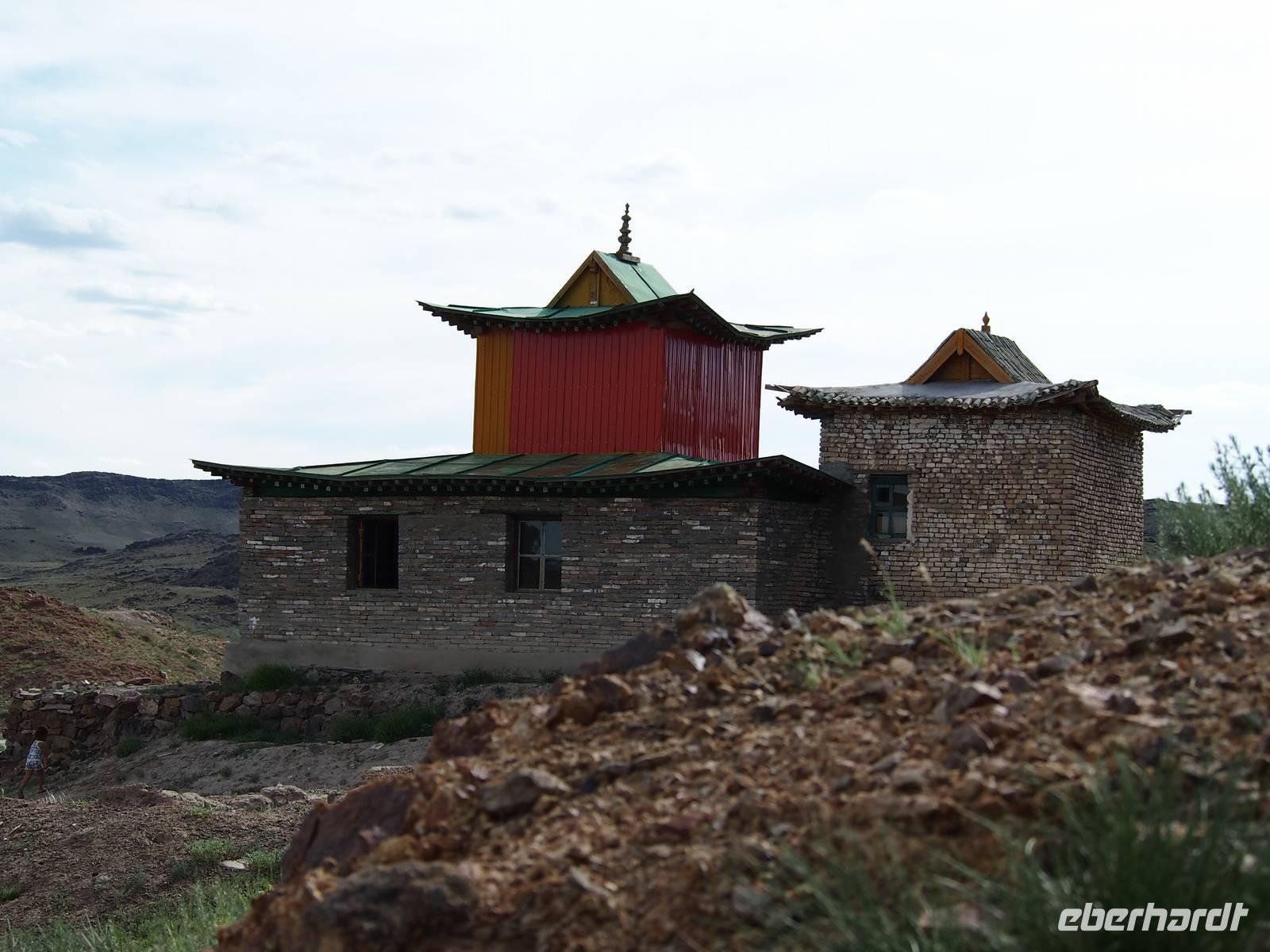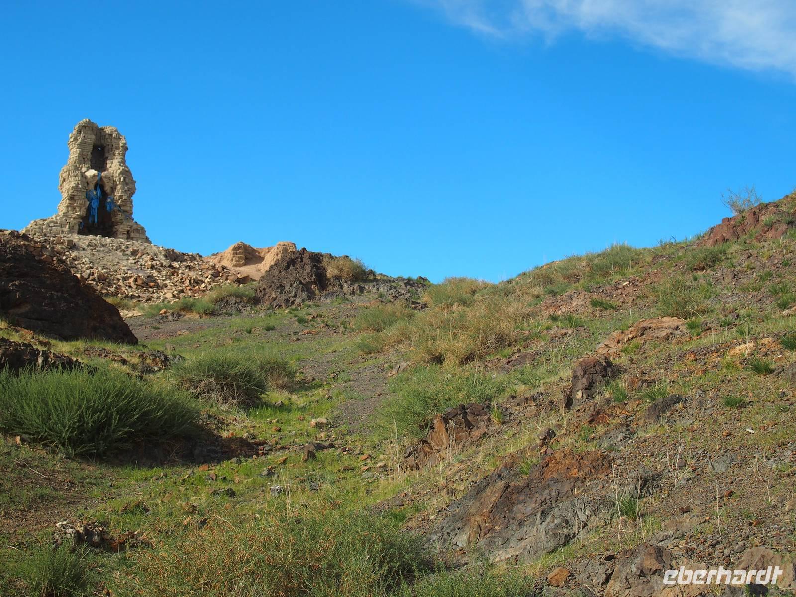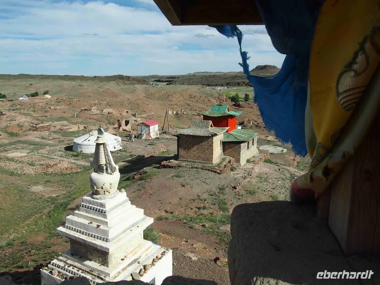Nach diesem fesselnden Erlebnis ging es weiter durch die Wüste. Unser Weg führte uns weiter an einer Sanddüne vorbei, die wir alle bestiegen, um die Aussicht und die Weite zu genießen. Später fuhren wir durch komplett flaches Land und viele nutzen die Zeit, um ihre Augen ein wenig auszuruhen. Unsere Mittagspause haben wir auch auf diesem flachen Stück eingelegt. Das Camp, welches zwischen den Bergen direkt am Ongi - Fluss lag, erreichten wir am frühen Nachmittag. Nachdem wir die Jurten bezogen haben und uns über den Luxus in diesem Camp erfreuten, buchten viele von uns für den Abend eine Massage. Nach einer zweistündigen Pause sind wir gemeinsam zum Ongi Kloster spaziert. Wir erkundeten die im 18. Jahrhundert erbaute und in den 1930er Jahren zerstörte Klosteranlage. Das Kloster ist in zwei Teile geteilt, wobei ein Teil sogar schon wieder neu errichtet wurde.