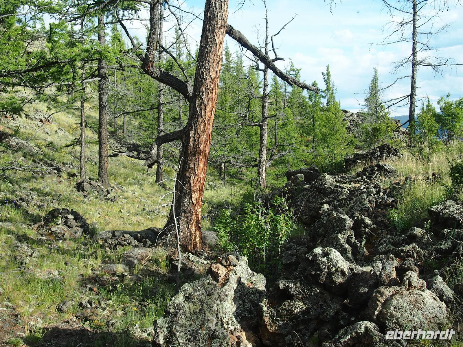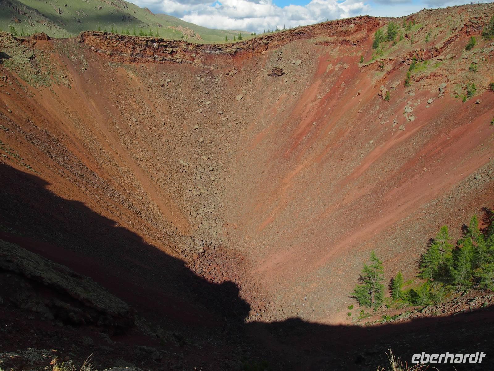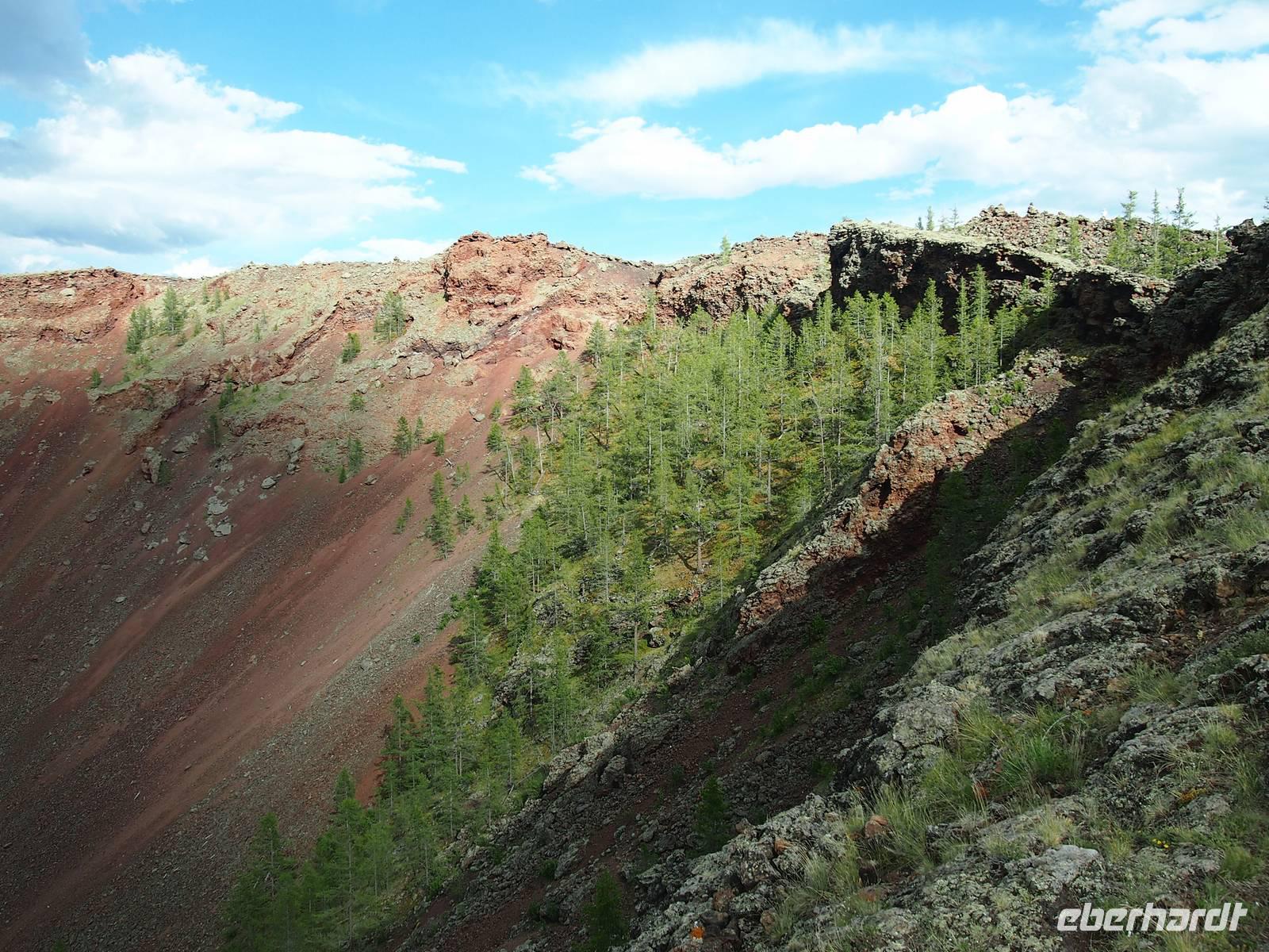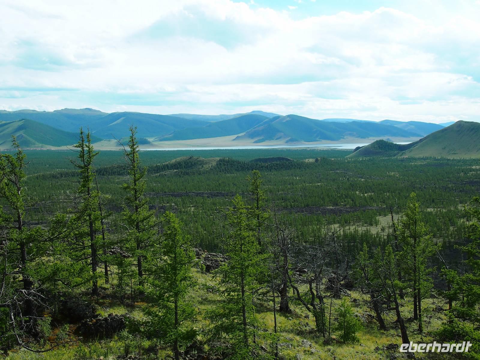 Unsere Mittagspause legten wir zwischen einem dünnbesiedelten Nadelbaumwald in der Nähe einer Schlucht ein. Am Nachmittag erreichten wir unser eigentliches Tages Highlight, den inaktiven Vulkan Chorgo. Wir bestiegen den Vulkan und einige wanderten um ihn oder gingen sogar zum Krater, in das Innere runter. Die Aussicht vom Vulkan aus war der Wahnsinn. Wir konnten sogar unser neues Camp am See von oben aus erkennen. Dort angekommen freuten wir uns über die sehr idyllische Lage direkt am See. Nach dem Essen besuchten viele von uns noch ein Kehlkopfgesang Konzert im Camp und ließen sich ihre Jurte beheizen.