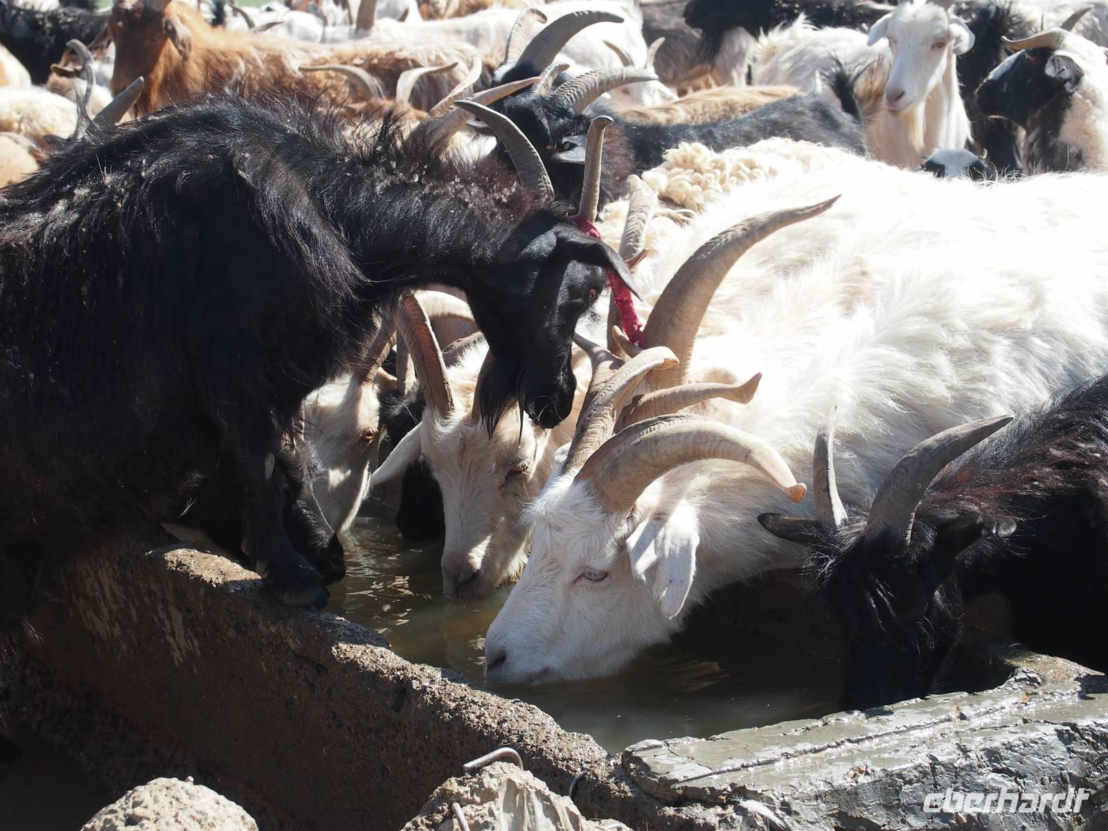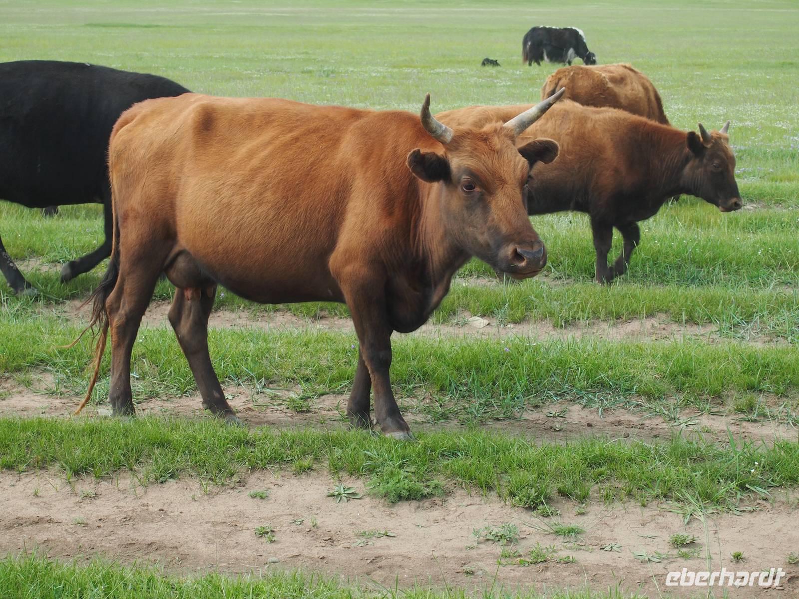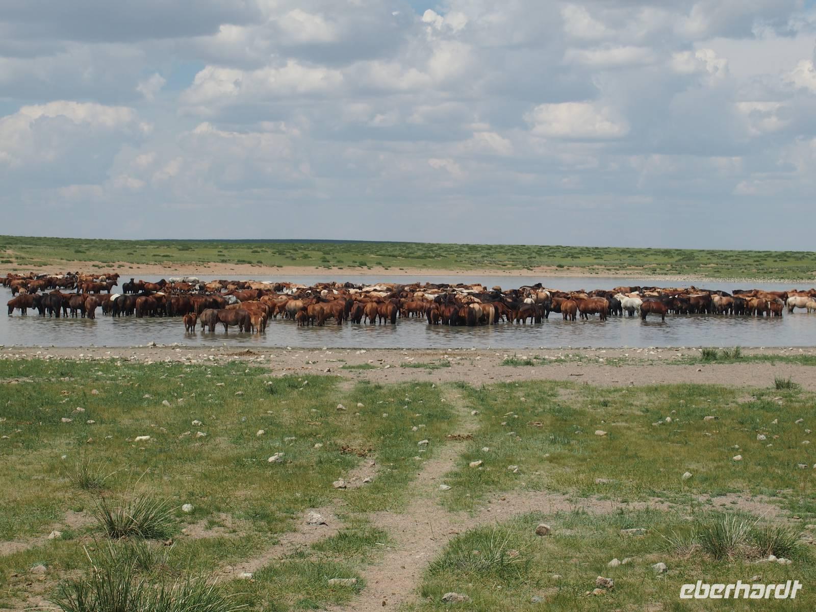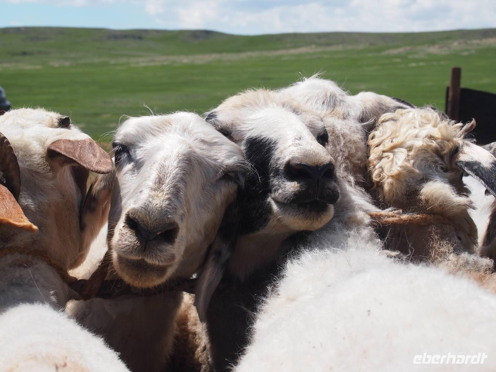 Die Landschaft veränderte sich langsam. Die Natur wurde immer grüner und die Jurten häuften sich. Außerdem sahen wir vermehrt größere Viehherden und bei einer hielten wir sogar nochmal an. Wir konnten sehen, wie die Frauen die Ziegen und Schafe melkten. Hinter den Jurten wurde Quark getrocknet und die Jungs bestiegen sogar extra für uns ihre Pferde.