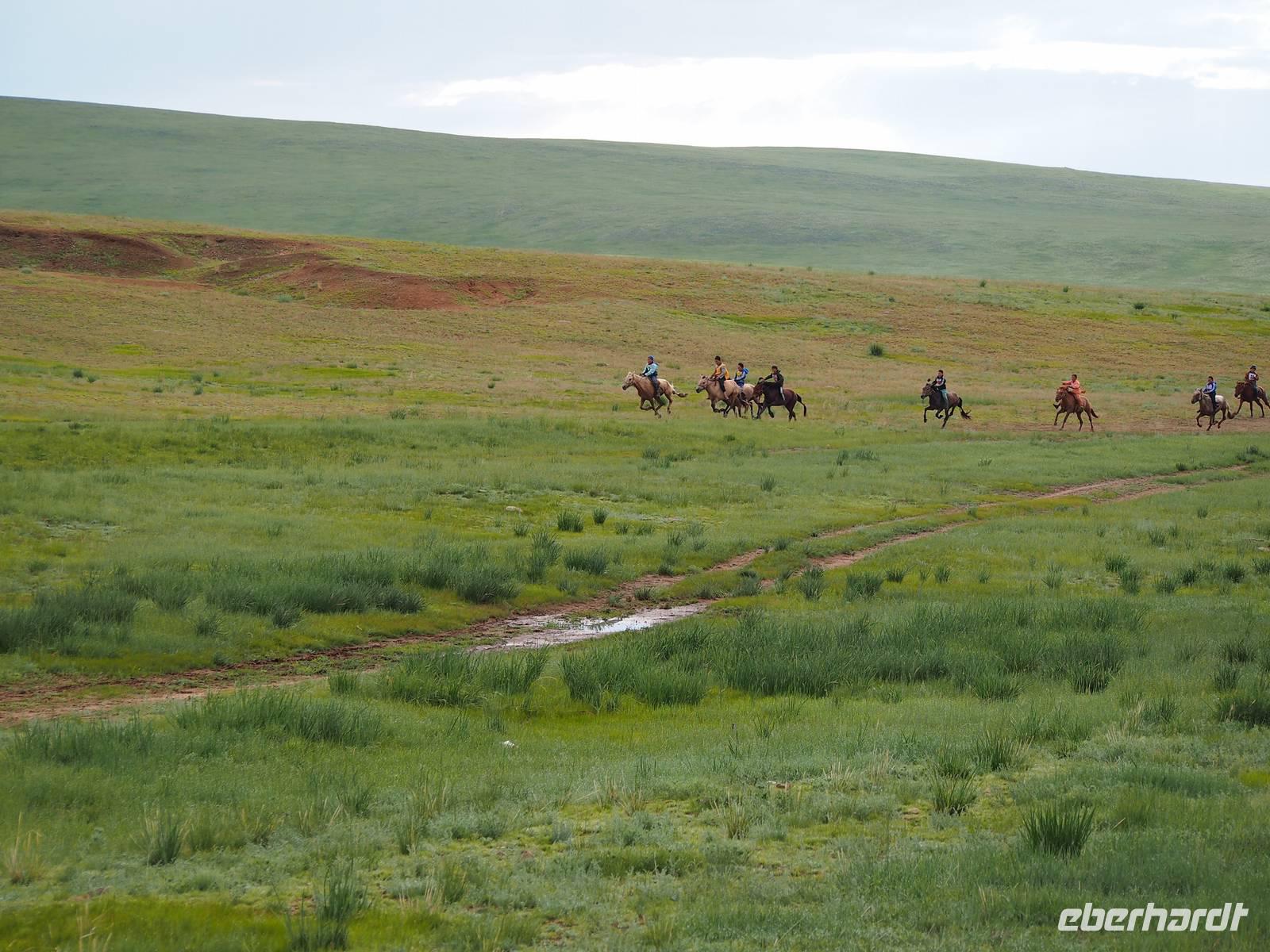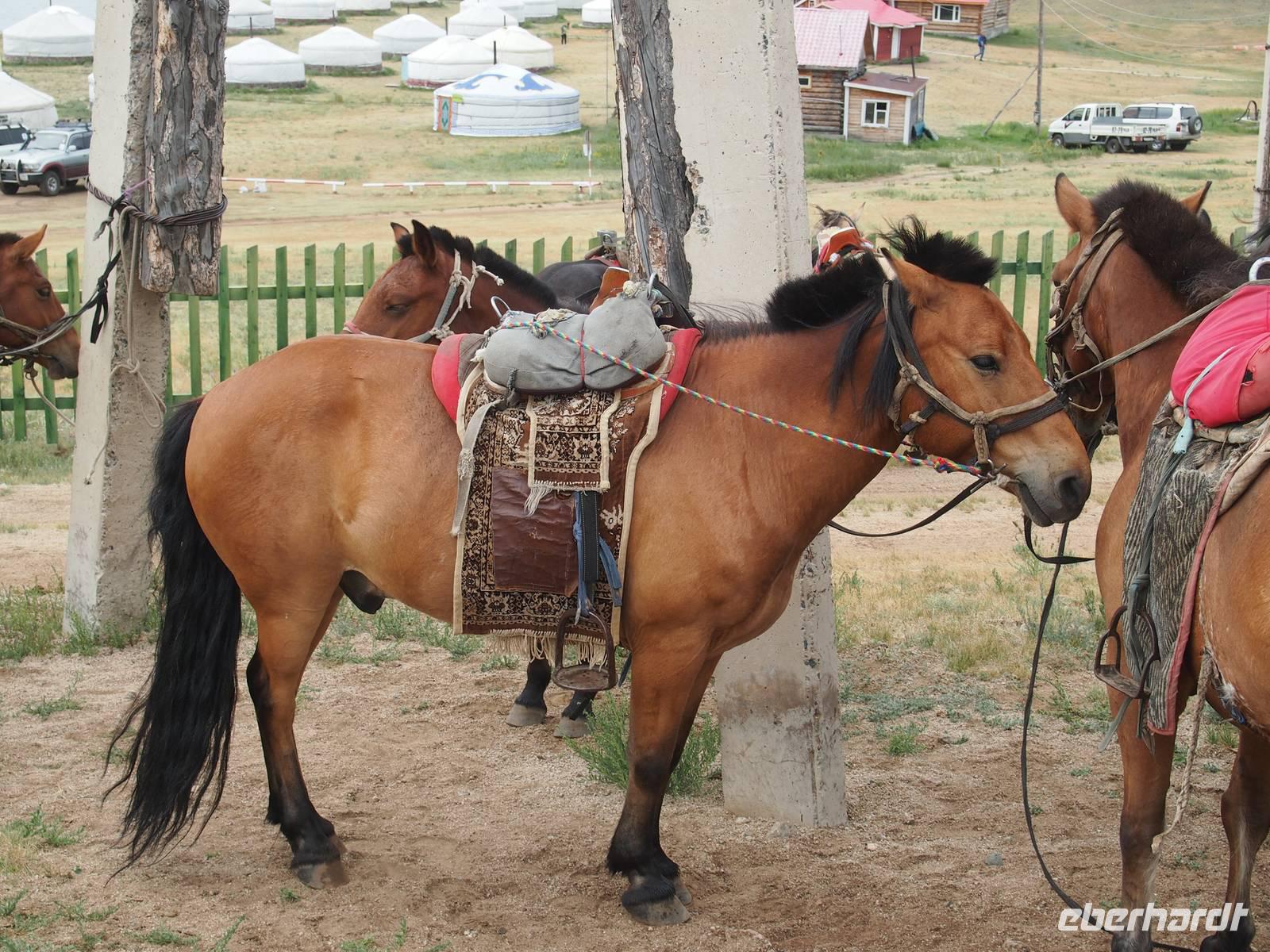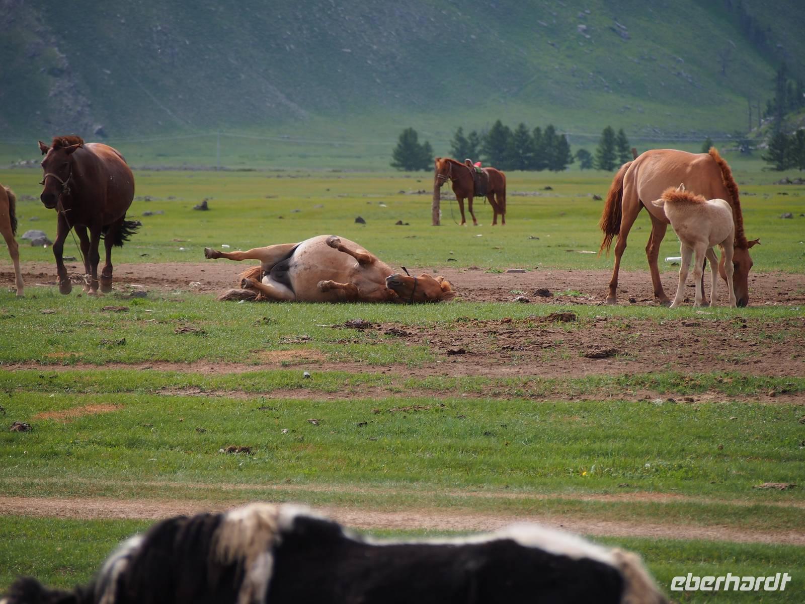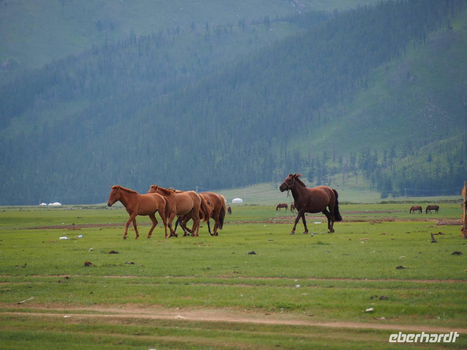 Heute konnten wir endlich mal ausschlafen. Nach einem späten Frühstück warteten wir auf die Pferde, denn heute stand als WOW-Geschenk ein Reitausflug auf dem Programm. Da die mongolischen Uhren ein wenig anders ticken als bei uns, mussten wir noch etwas warten, bis die zehn Pferde sowie drei Reiter vor unserem Camp für uns bereitstanden. Das Wetter spielte nur bedingt mit, was uns aber nicht aufhalten sollte. Wir ritten eine Stunde auf einer Feldstraße, am Ufer des Wassers und über eine riesige Wiese. Es war für alle ein tolles Erlebnis ein Stück des Weges in diesem großartigen Land auf einem Tier zurückzulegen, das hier fast heilig ist. Im Anschluss konnte jeder seinen Tag individuell gestaltet. Viele haben ein Buch gelesen, Postkarten geschrieben oder gingen spazieren. Am Abend trafen wir uns zum Abendessen und tauschten uns über unseren Tag aus. Heute ließen wir uns wieder fast alle die Jurte beheizen, während der Regen draußen gegen unsere Ger plätscherte.