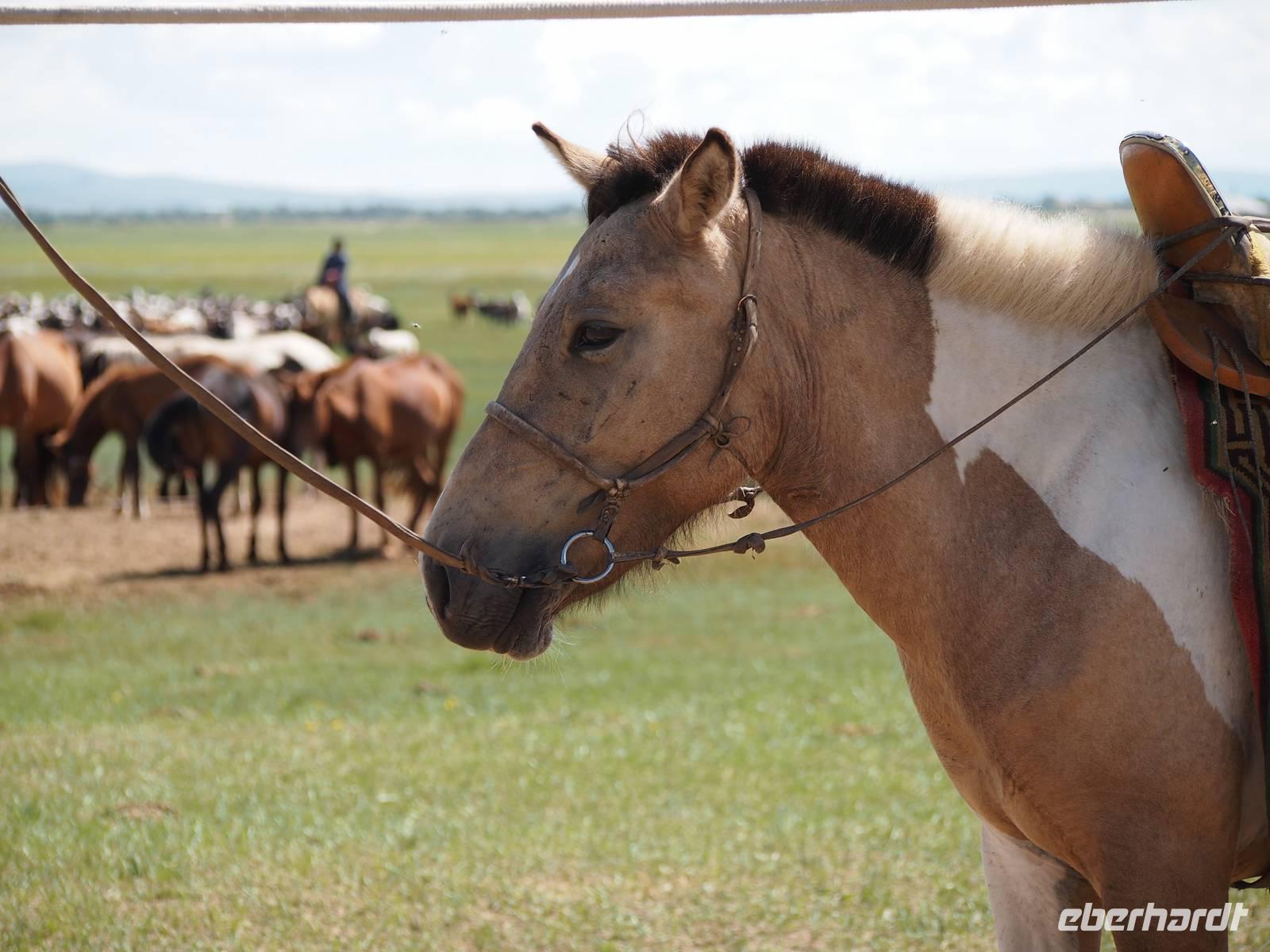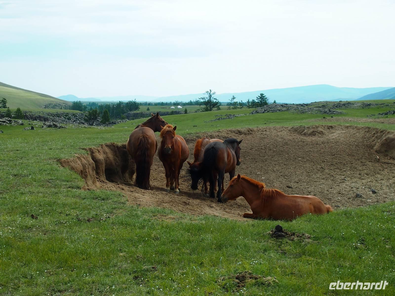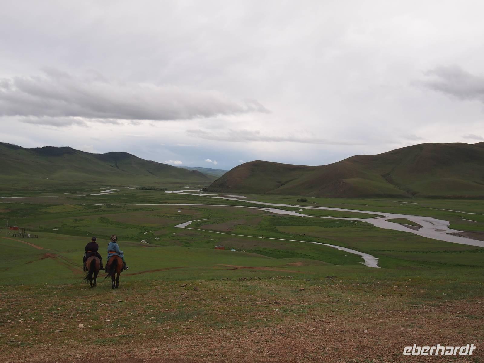 Heute konnten wir endlich mal ausschlafen. Nach einem späten Frühstück warteten wir auf die Pferde, denn heute stand als WOW-Geschenk ein Reitausflug auf dem Programm. Da die mongolischen Uhren ein wenig anders ticken als bei uns, mussten wir noch etwas warten, bis die zehn Pferde sowie drei Reiter vor unserem Camp für uns bereitstanden. Das Wetter spielte nur bedingt mit, was uns aber nicht aufhalten sollte. Wir ritten eine Stunde auf einer Feldstraße, am Ufer des Wassers und über eine riesige Wiese. Es war für alle ein tolles Erlebnis ein Stück des Weges in diesem großartigen Land auf einem Tier zurückzulegen, das hier fast heilig ist. Im Anschluss konnte jeder seinen Tag individuell gestaltet. Viele haben ein Buch gelesen, Postkarten geschrieben oder gingen spazieren. Am Abend trafen wir uns zum Abendessen und tauschten uns über unseren Tag aus. Heute ließen wir uns wieder fast alle die Jurte beheizen, während der Regen draußen gegen unsere Ger plätscherte.