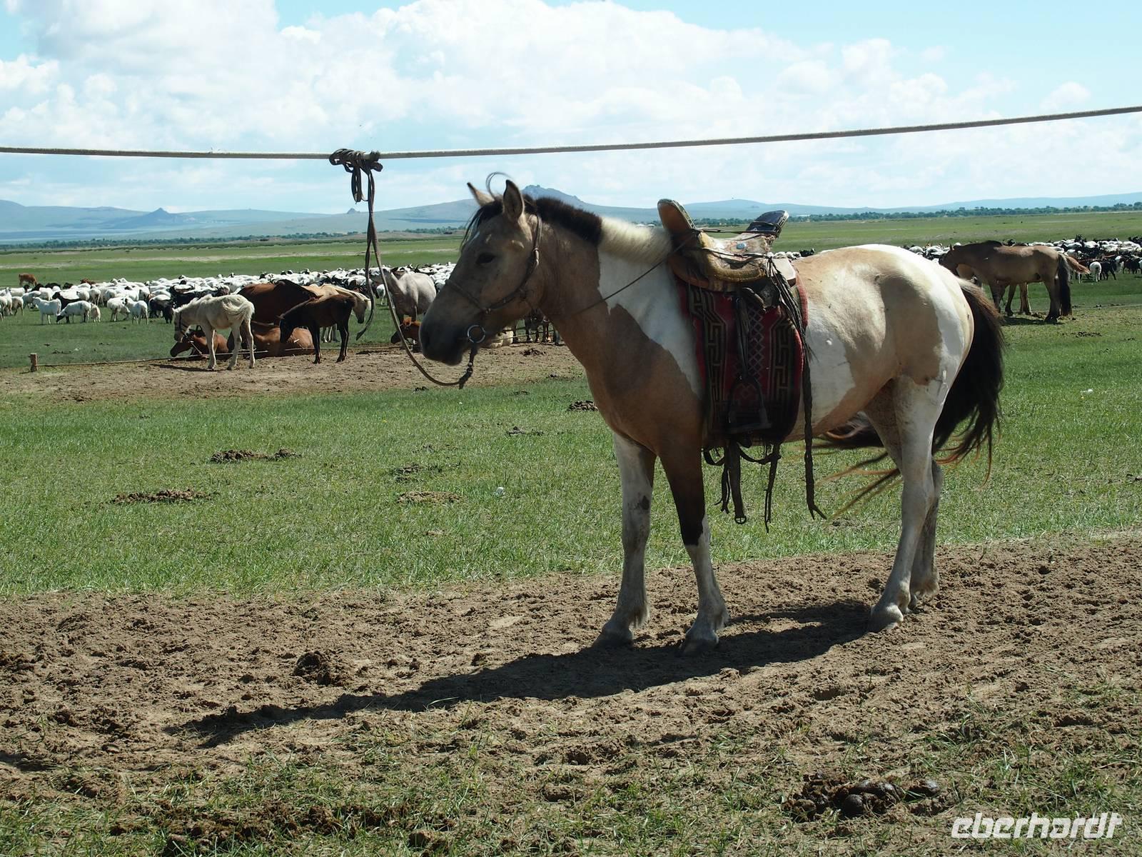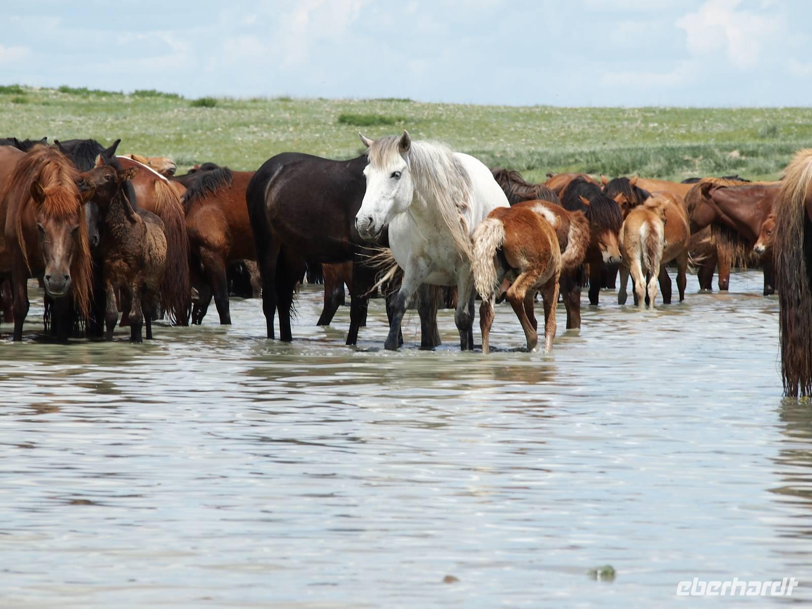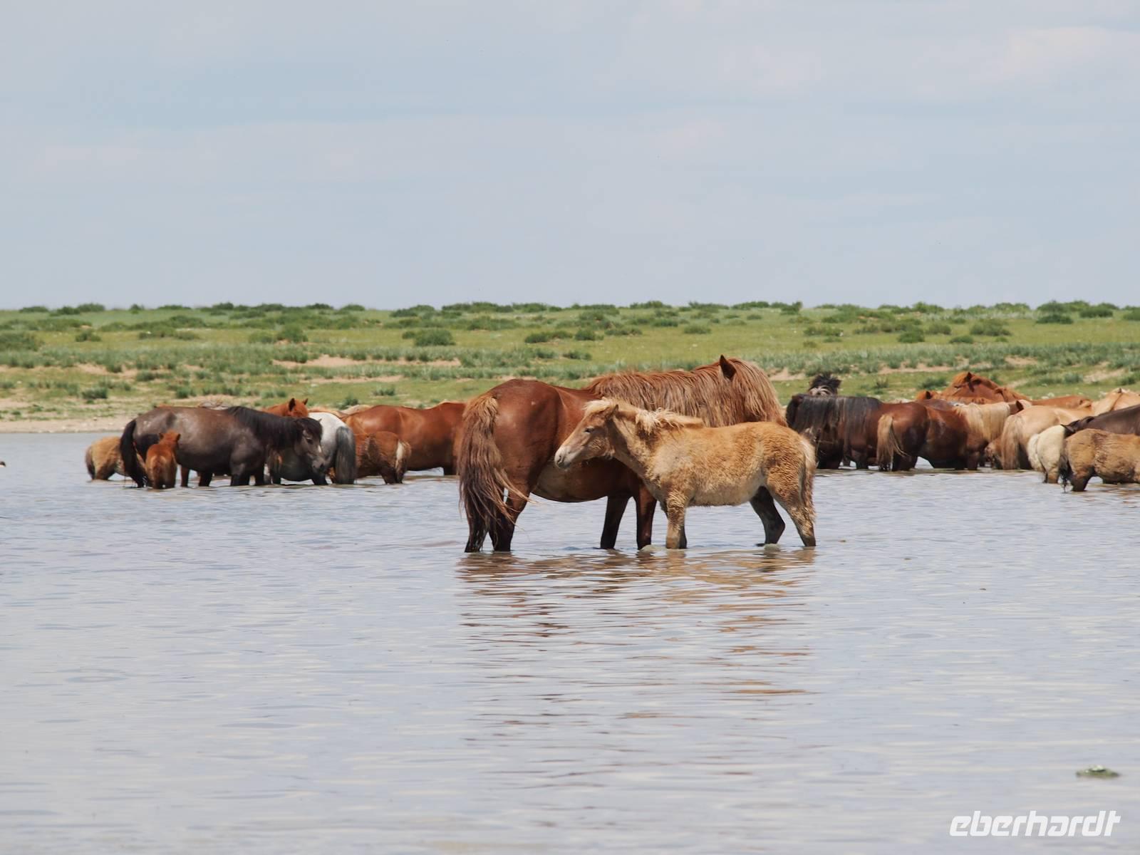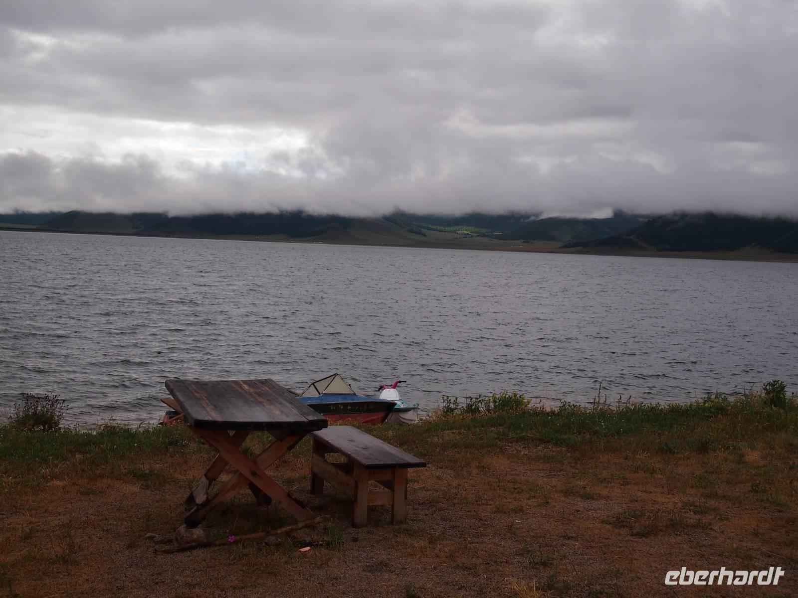 Heute konnten wir endlich mal ausschlafen. Nach einem späten Frühstück warteten wir auf die Pferde, denn heute stand als WOW-Geschenk ein Reitausflug auf dem Programm. Da die mongolischen Uhren ein wenig anders ticken als bei uns, mussten wir noch etwas warten, bis die zehn Pferde sowie drei Reiter vor unserem Camp für uns bereitstanden. Das Wetter spielte nur bedingt mit, was uns aber nicht aufhalten sollte. Wir ritten eine Stunde auf einer Feldstraße, am Ufer des Wassers und über eine riesige Wiese. Es war für alle ein tolles Erlebnis ein Stück des Weges in diesem großartigen Land auf einem Tier zurückzulegen, das hier fast heilig ist. Im Anschluss konnte jeder seinen Tag individuell gestaltet. Viele haben ein Buch gelesen, Postkarten geschrieben oder gingen spazieren. Am Abend trafen wir uns zum Abendessen und tauschten uns über unseren Tag aus. Heute ließen wir uns wieder fast alle die Jurte beheizen, während der Regen draußen gegen unsere Ger plätscherte.