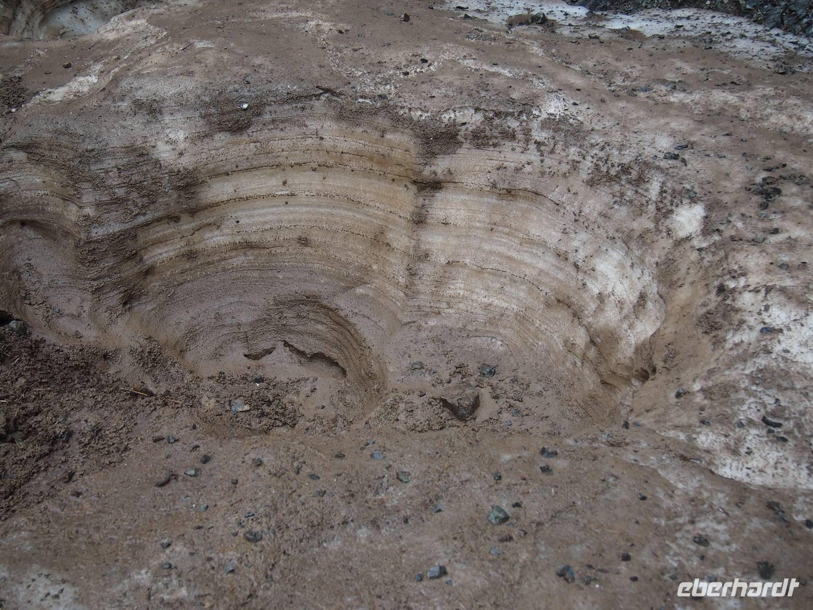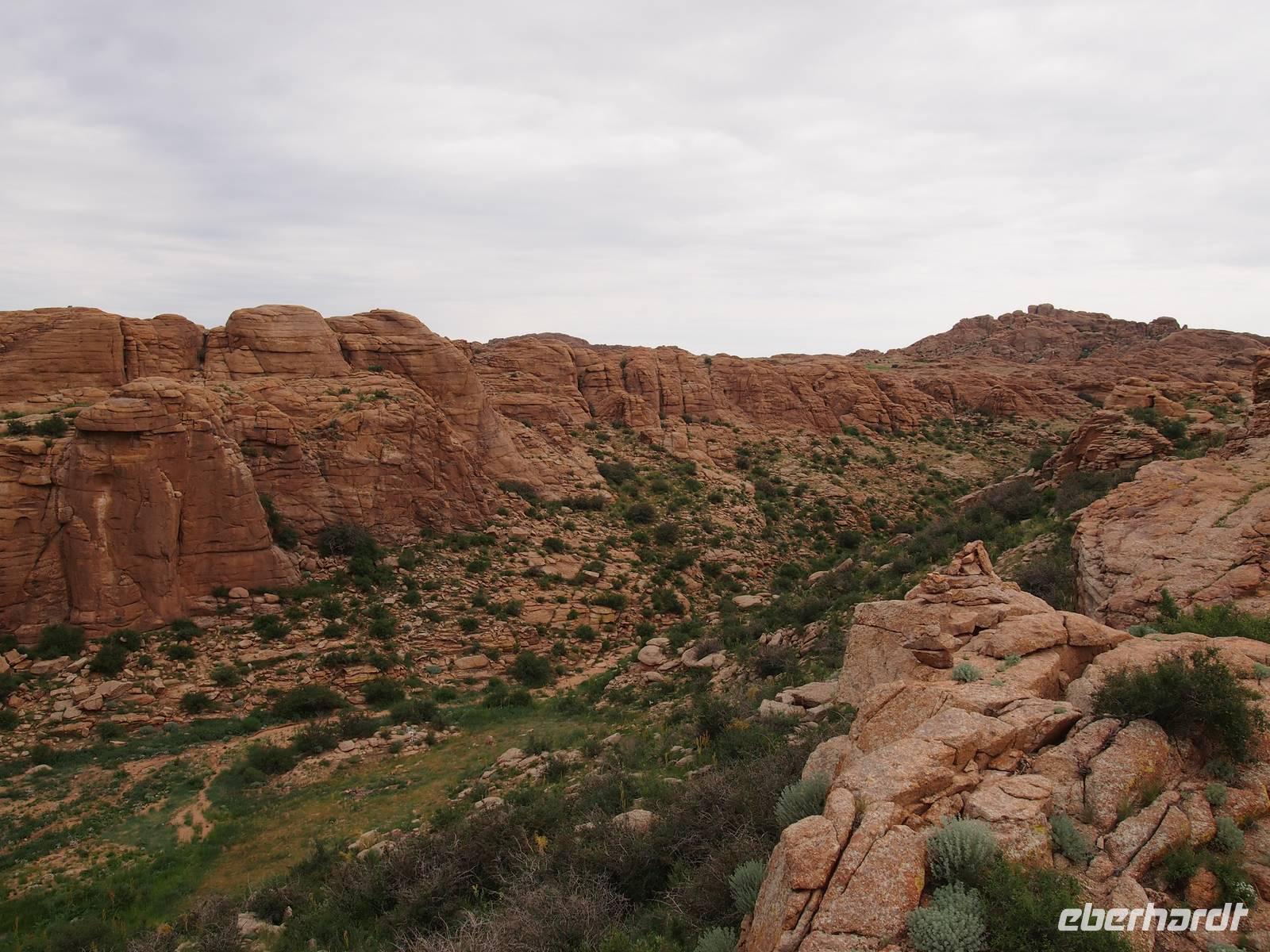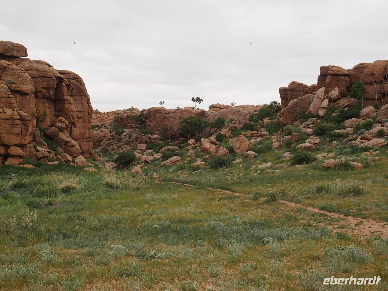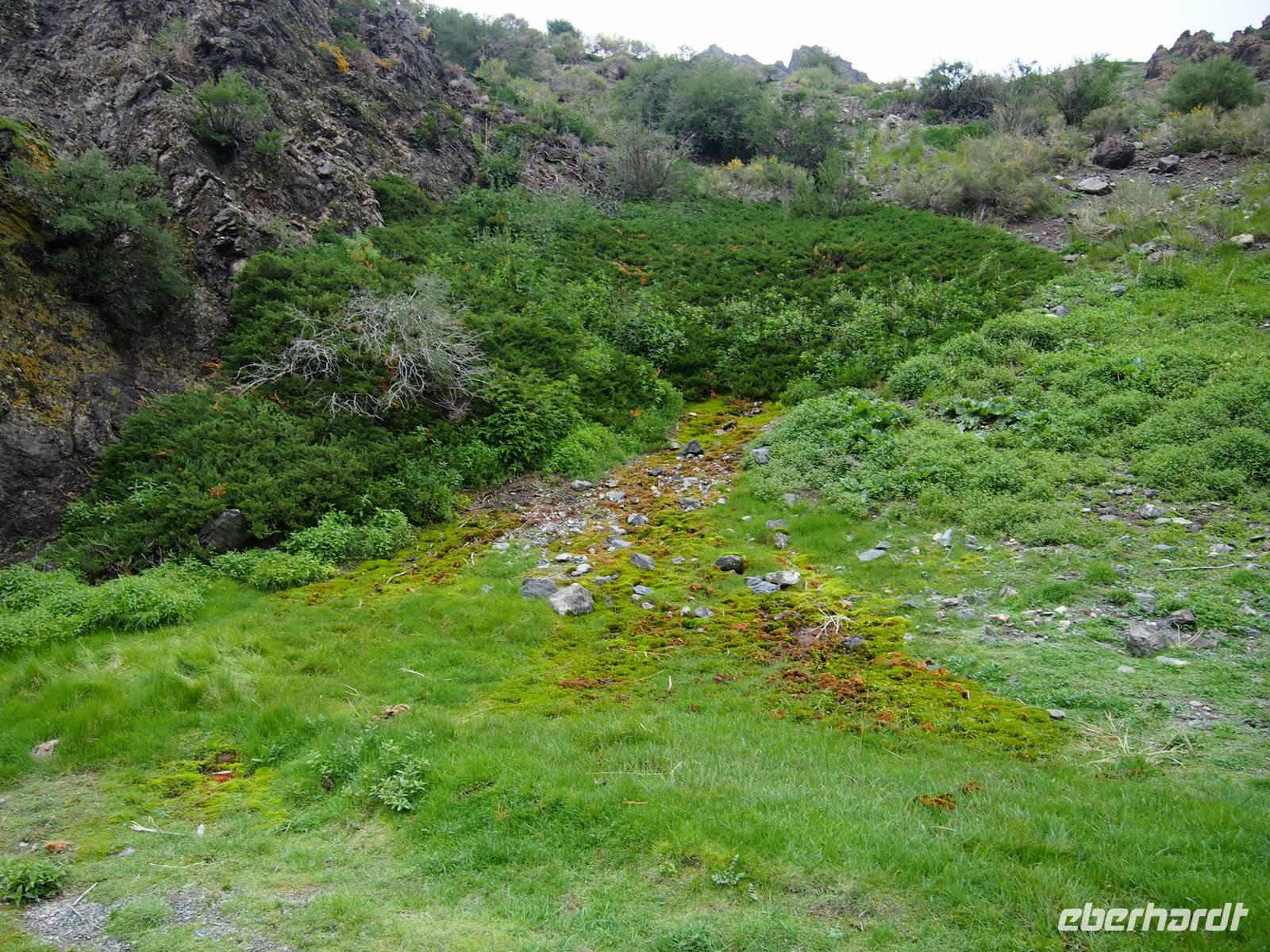 Heute konnten wir mal „ausschlafen", eine halbe Stunde länger als sonst. Nach dem Frühstück fuhren wir mit den Jeeps zur "Geierschlucht". Der Weg dorthin führte uns vorbei an ganz vielen Mäusen, die aussahen wie größere Hamster. Wir hatten redlich Spaß daran die kleinen Tiere zu beobachten, wie sie sich gegenseitig jagten und rumtollten. Das Wetter spielte auch so gut es ging mit, zu mindestens blieben wir trocken. Dadurch dass sich die Wolken in den Bergen festhingen, hatte die Schlucht einen ganz eigenen mystischen Charme. Anfangs war der Weg recht einfach und breit, aber je weiter man in die Schlucht kam, umso beschwerlicher wurde er. Der schwierigste Teil bestand aus einer etwa 500 Meter langen Gletschereisschicht, die wir nur mit gegenseitiger Hilfe bewältigen konnten. Auf der anderen Seite angekommen, führte der Weg uns weiter durch die atemberaubende Schlucht. Irgendwann wurde der Weg etwas breiter und man stieß auf eine wunderbare Flora und Fauna. Die Farben, das Nasse und die tiefhängenden Wolken machten diese Wanderung zu einem einmaligen und packenden Erlebnis. Für den Rückweg nahmen wir uns etwas Erde mit, um das Eis heil überwinden zu können. Einige Gäste brachen die Wanderung schon eher ab und entschieden sich für einen anderen Weg, auf dem man ebenfalls die Möglichkeit hatte verschiedene Schluchten zu durchwandern. Dabei hatten sie sogar das Glück, einen Uhu beobachten zu können. Geschafft und zufrieden besuchten wir das dazugehörige Museum des Nationalparks, bevor wir zum Mittagessen zum Camp zurück gefahren sind. Nach dem Essen besuchten wir heute auch noch eine Nomadenfamilie. Wir hörten gespannt zu und stellten der Hausherrin unsere Fragen. Bewirtet wurden wir mit getrocknetem Quark und selbstgemachten Joghurt. Natürlich war die Nomadenfrau auch neugierig auf uns und stellte einige Fragen. Ungewöhnlich war, dass die Familie drei Jurten besitzt, eine Schlafjurte, eine Jurte für die Küche und eine Gastjurte. Insgesamt besitzt die Familie außerdem noch 250 Schafe und Ziegen und drei Pferde. Die Frau braucht etwas über eine Stunde am Tag, um ihre insgesamt 68 Ziegen zu melken. Das war für uns absolut unvorstellbar. Nach diesem interessanten Besuch ging es zurück zum Camp. Einige Gäste nutzen die Freizeit bis zum Abendbrot und schrieben Postkarten oder erklommen noch den ein oder anderen Berg in der näheren Umgebung. Nach dem Essen gingen wir wieder zeitig zu Bett.