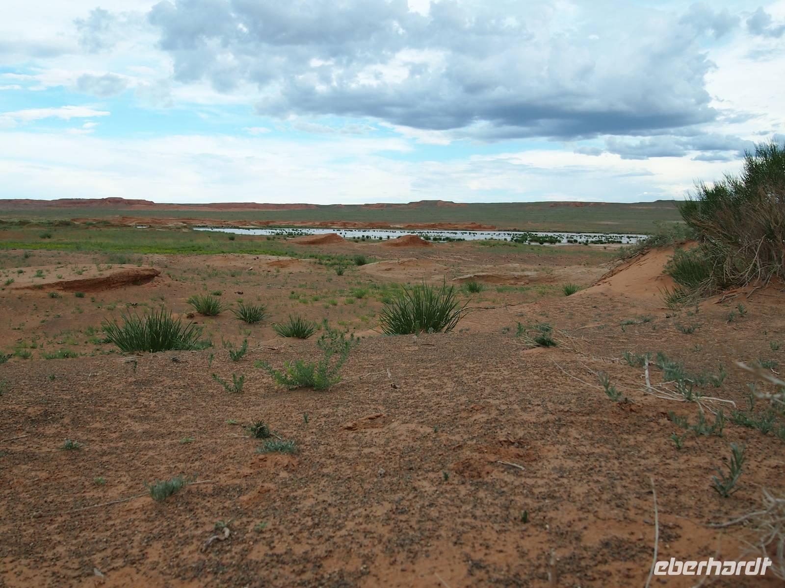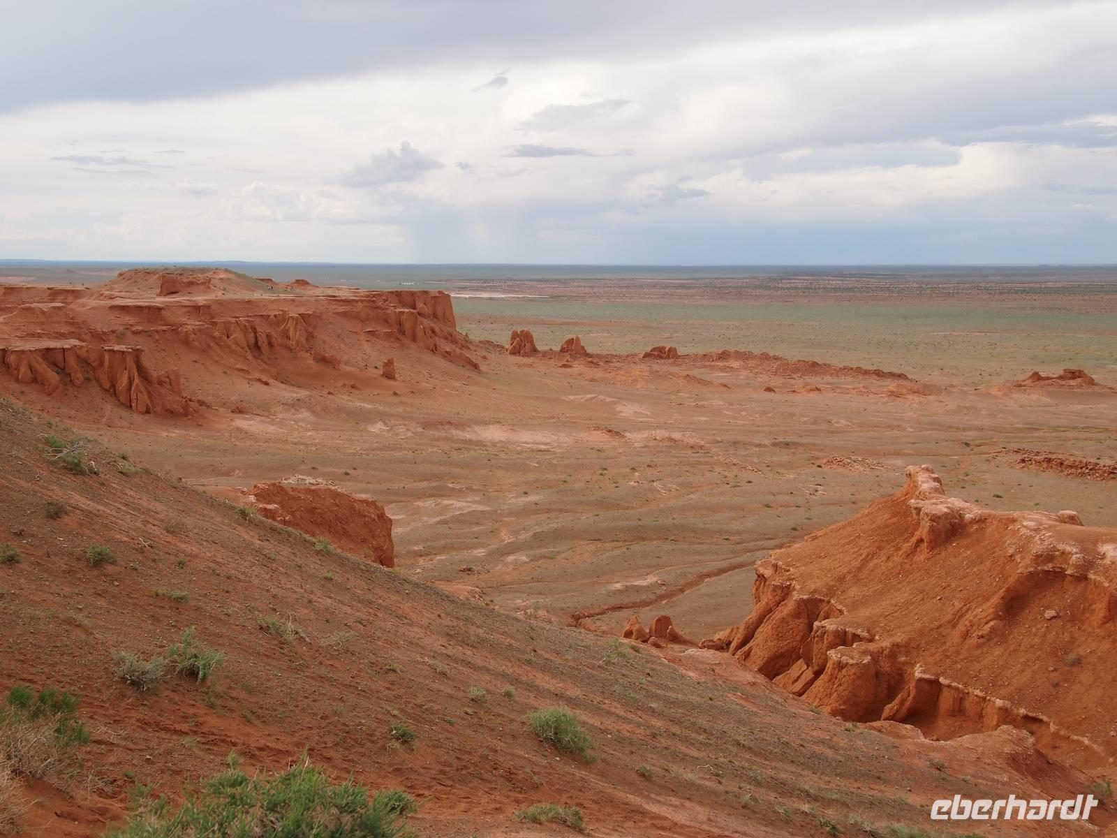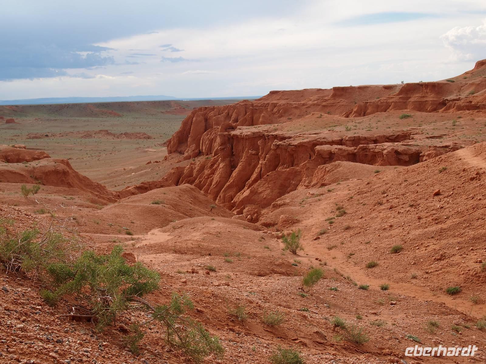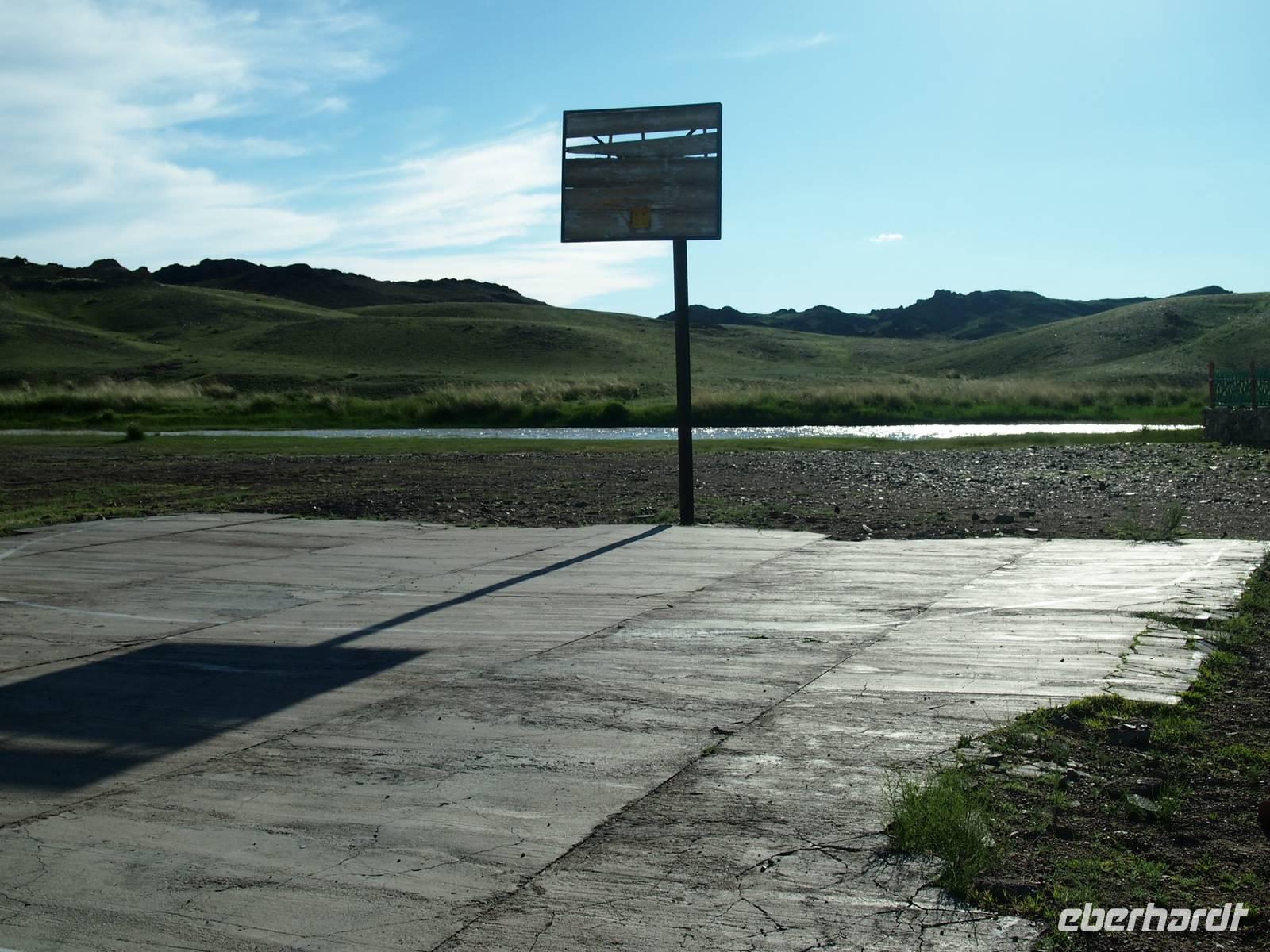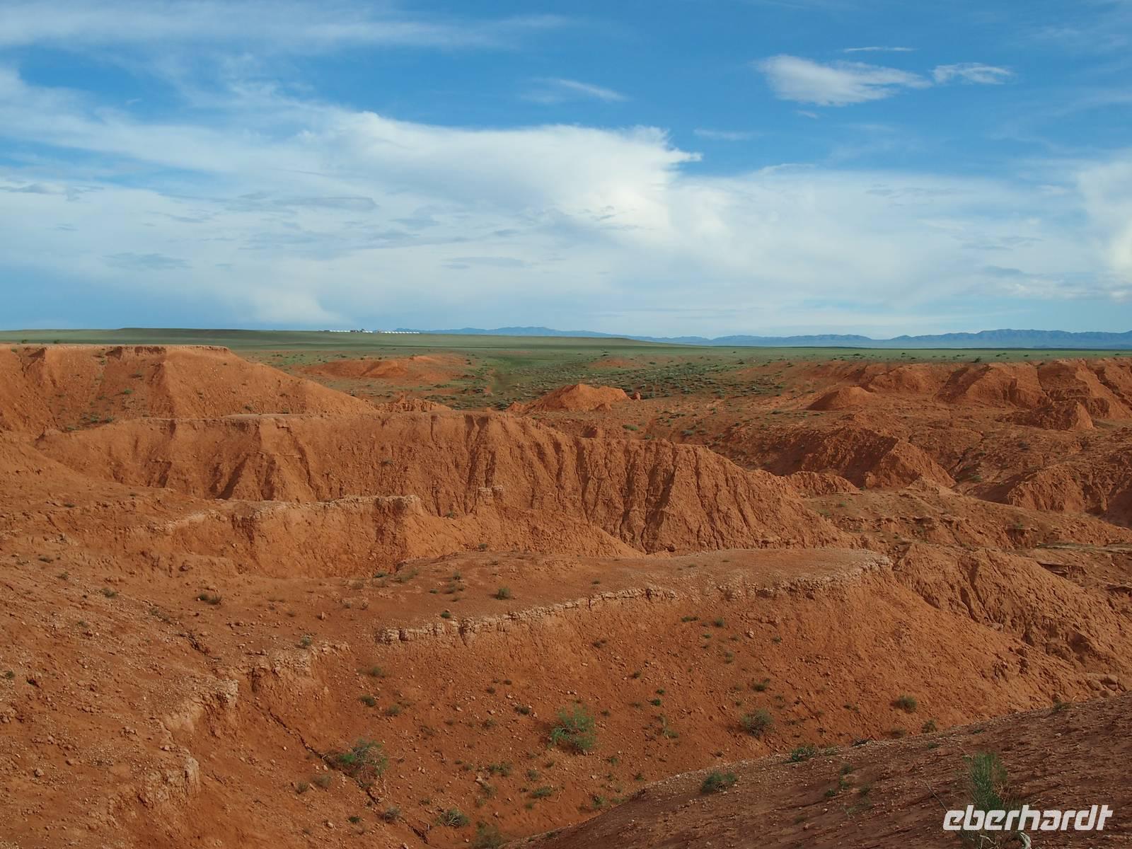 Bevor wir uns auf den Weg zu den Dinosaurierfundstellen machten, guckten wir noch einen kurzen Film über die Fundstelle an. welche nicht weit von unserem Camp entfernt lag. Man hatte einen wunderschönen Blick in den Canyon, der aus rotem Lehm bestand. Hier wurden neben Dinosaurierknochen auch Eier vom Tyrannosaurus Rex gefunden. In der Ferne konnten wir schon den Sauxalwald erahnen. Wir machten uns mit unseren Kameras und Ferngläsern auf den Weg, die Gegend zu erkunden. Im Anschluss fuhren wir zu dem Sauxalwald, wo wir individuell die Gegend erkundeten. Es war total spannend, wie sich die kleinen knochigen Bäume der Landschaft angepasst haben und was für lange Wurzeln sie schlagen können. Nach dem hervorragenden Ausflug ging es zurück zum Camp zum Abendessen. Nach dem Essen spielten einige noch gegen unsere mongolischen Fahrer bis zur Dämmerung Basketball. Am heutigen Abend konnte man ausgezeichnet die Milchstraße und einen sternenklaren Himmel beobachten. Was für ein beeindruckendes Land!