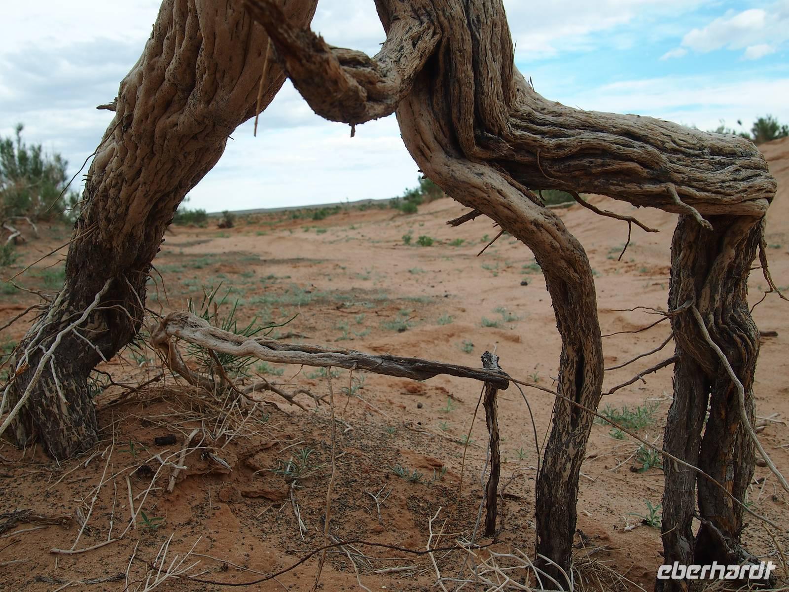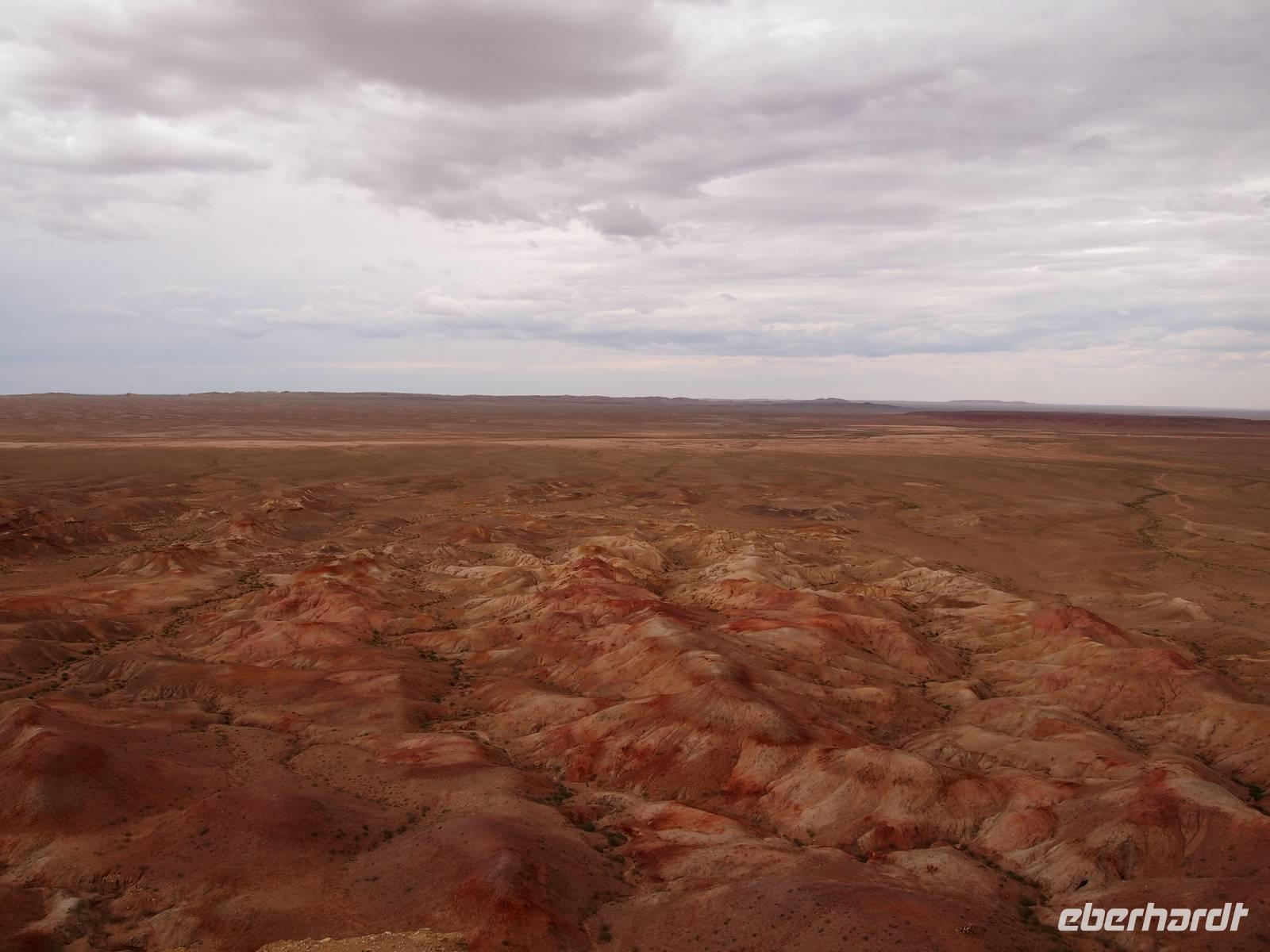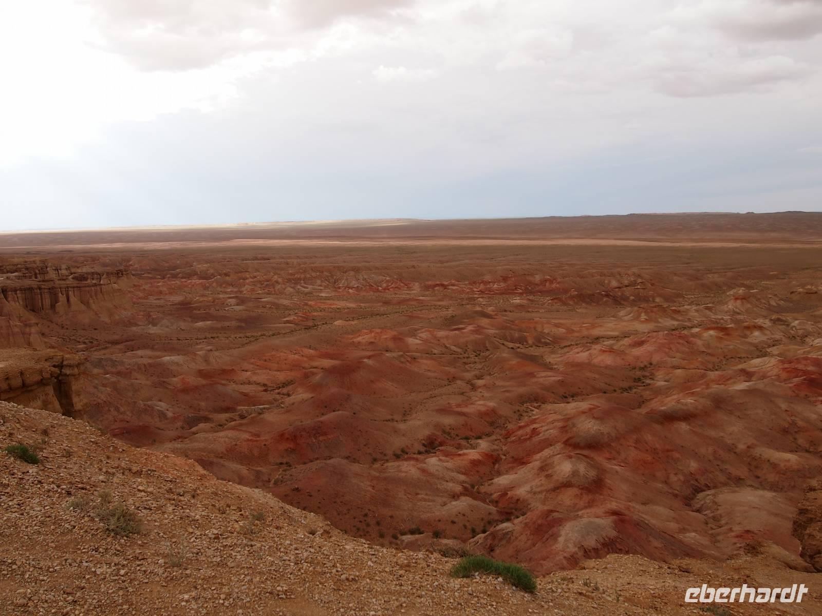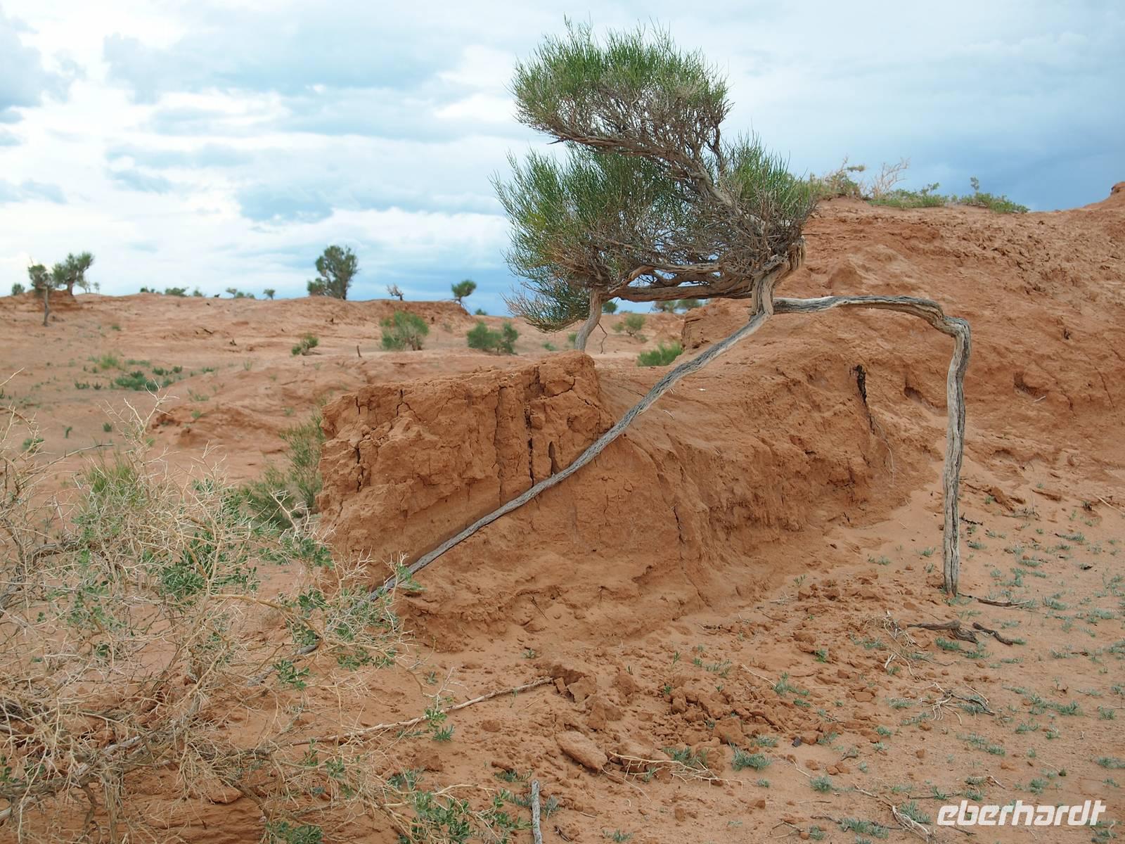 Bevor wir uns auf den Weg zu den Dinosaurierfundstellen machten, guckten wir noch einen kurzen Film über die Fundstelle an. welche nicht weit von unserem Camp entfernt lag. Man hatte einen wunderschönen Blick in den Canyon, der aus rotem Lehm bestand. Hier wurden neben Dinosaurierknochen auch Eier vom Tyrannosaurus Rex gefunden. In der Ferne konnten wir schon den Sauxalwald erahnen. Wir machten uns mit unseren Kameras und Ferngläsern auf den Weg, die Gegend zu erkunden. Im Anschluss fuhren wir zu dem Sauxalwald, wo wir individuell die Gegend erkundeten. Es war total spannend, wie sich die kleinen knochigen Bäume der Landschaft angepasst haben und was für lange Wurzeln sie schlagen können. Nach dem hervorragenden Ausflug ging es zurück zum Camp zum Abendessen. Nach dem Essen spielten einige noch gegen unsere mongolischen Fahrer bis zur Dämmerung Basketball. Am heutigen Abend konnte man ausgezeichnet die Milchstraße und einen sternenklaren Himmel beobachten. Was für ein beeindruckendes Land!