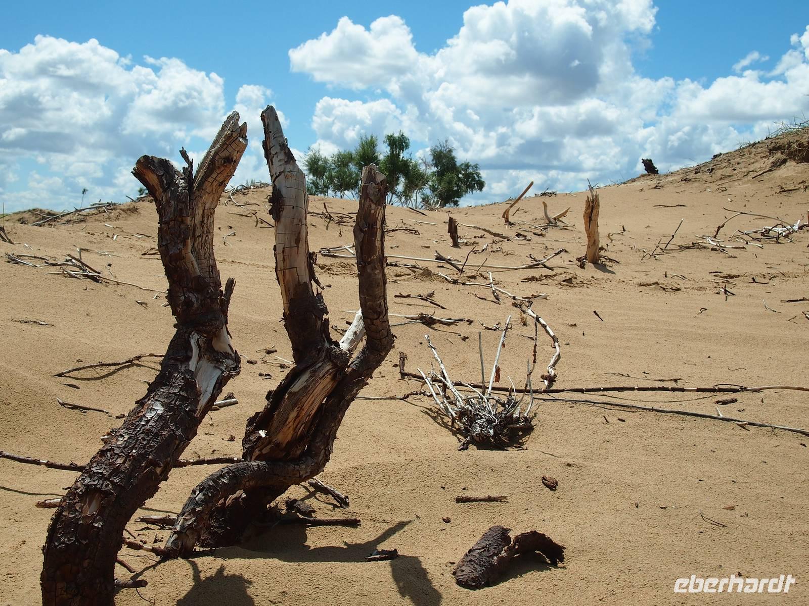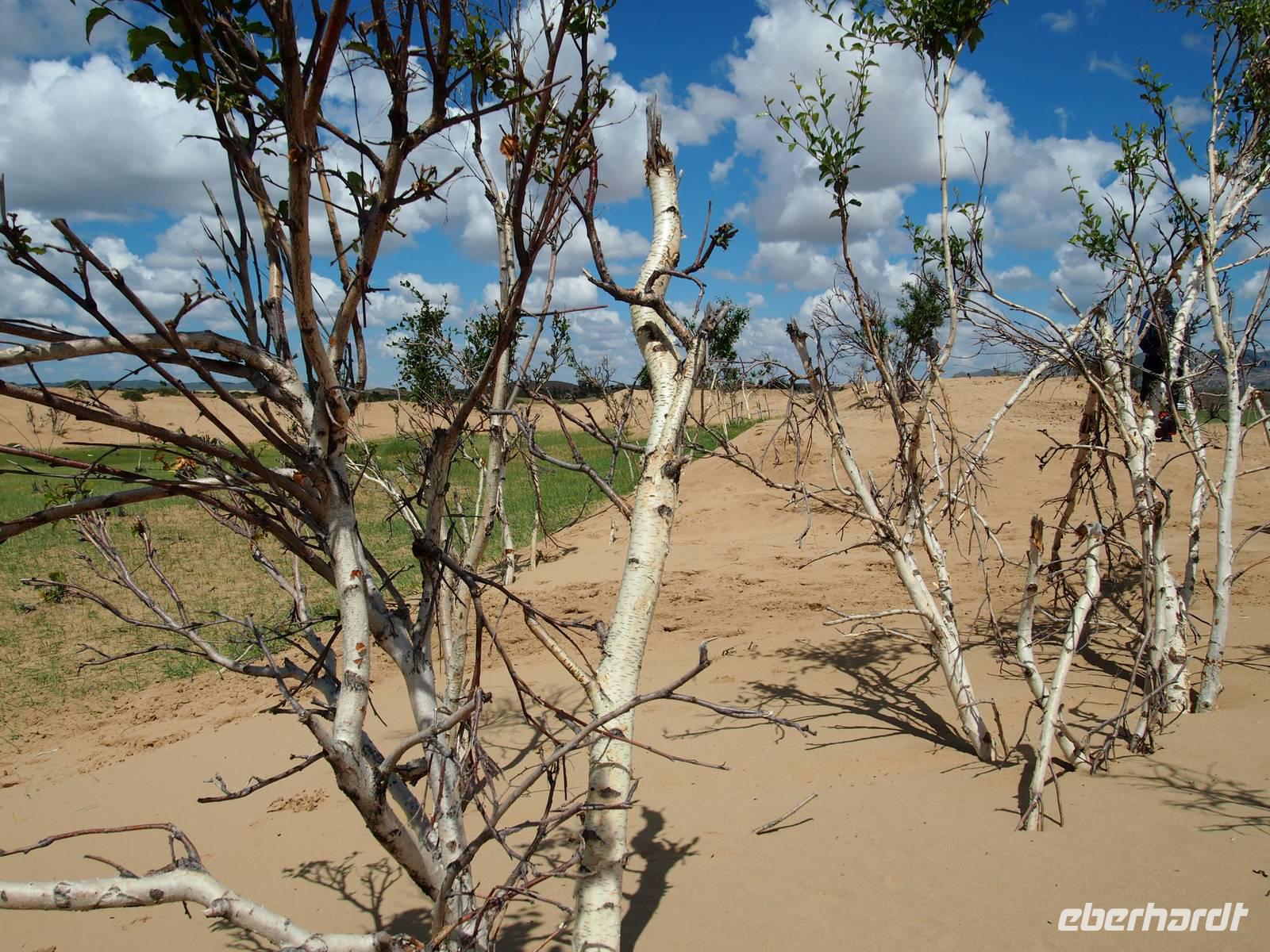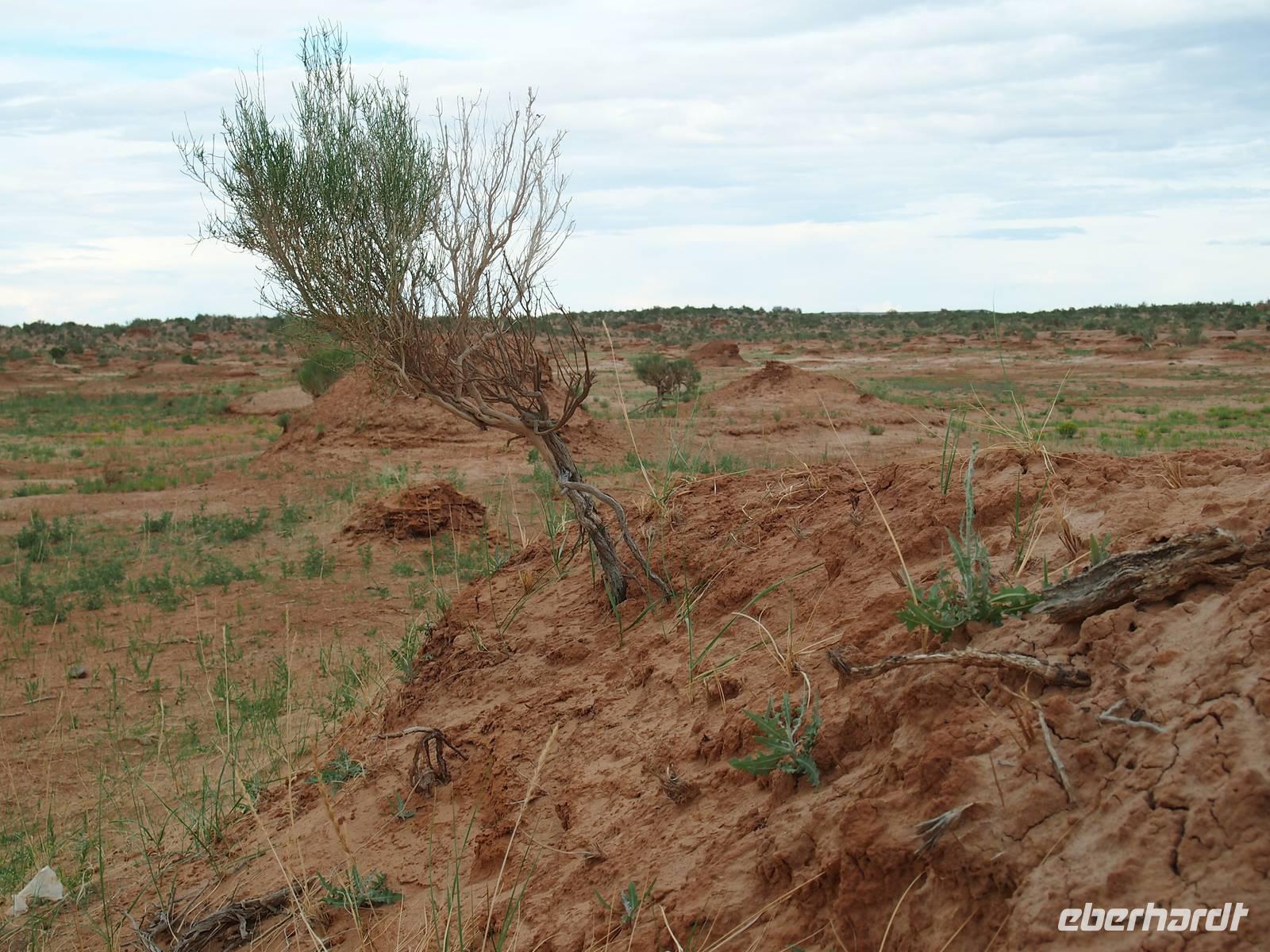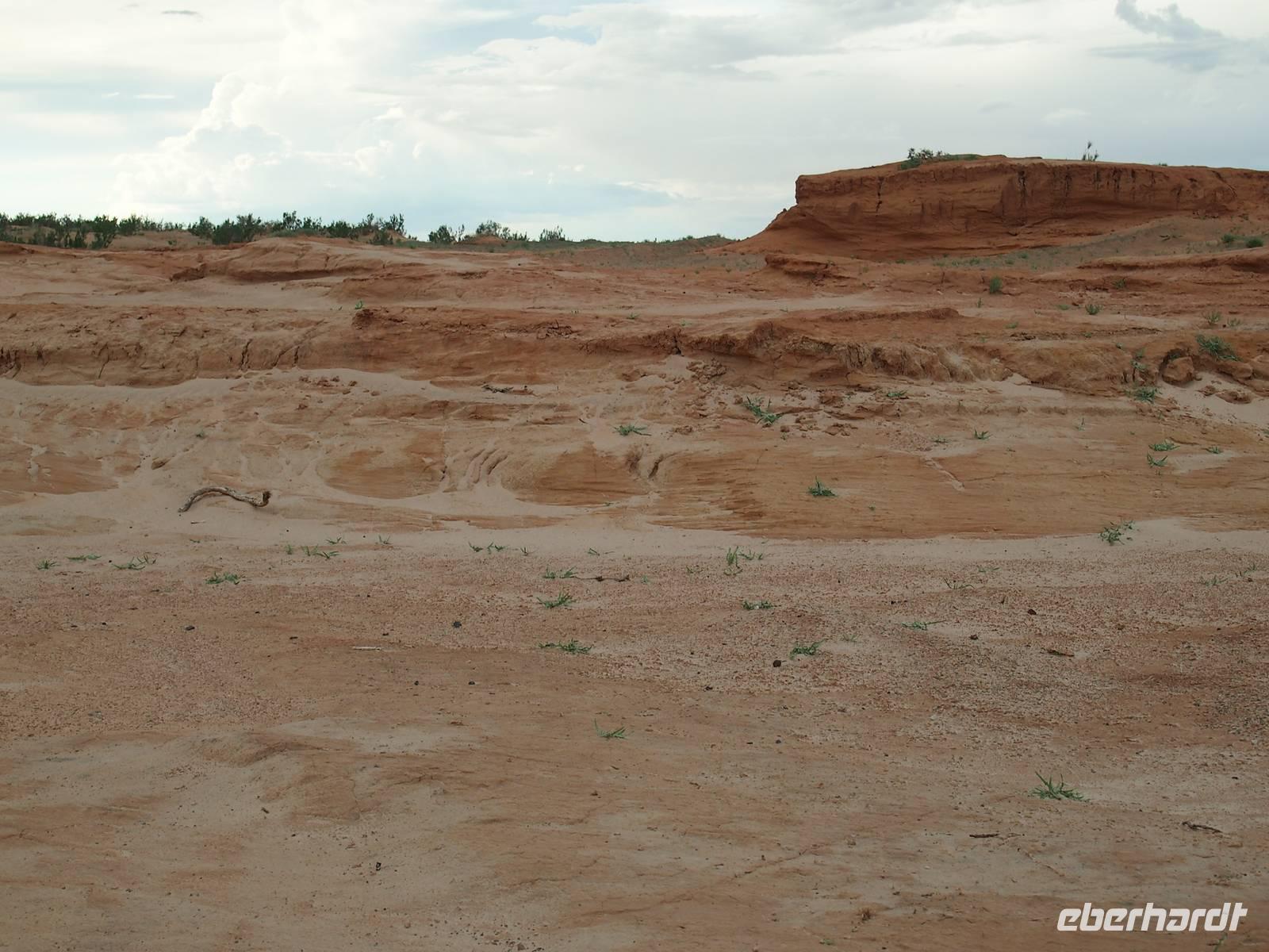 Bevor wir uns auf den Weg zu den Dinosaurierfundstellen machten, guckten wir noch einen kurzen Film über die Fundstelle an. welche nicht weit von unserem Camp entfernt lag. Man hatte einen wunderschönen Blick in den Canyon, der aus rotem Lehm bestand. Hier wurden neben Dinosaurierknochen auch Eier vom Tyrannosaurus Rex gefunden. In der Ferne konnten wir schon den Sauxalwald erahnen. Wir machten uns mit unseren Kameras und Ferngläsern auf den Weg, die Gegend zu erkunden. Im Anschluss fuhren wir zu dem Sauxalwald, wo wir individuell die Gegend erkundeten. Es war total spannend, wie sich die kleinen knochigen Bäume der Landschaft angepasst haben und was für lange Wurzeln sie schlagen können. Nach dem hervorragenden Ausflug ging es zurück zum Camp zum Abendessen. Nach dem Essen spielten einige noch gegen unsere mongolischen Fahrer bis zur Dämmerung Basketball. Am heutigen Abend konnte man ausgezeichnet die Milchstraße und einen sternenklaren Himmel beobachten. Was für ein beeindruckendes Land!