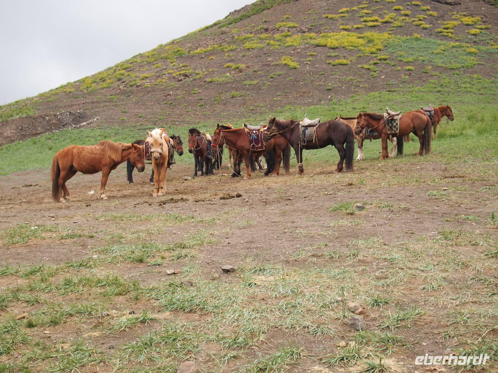 Die Landschaft war so idyllisch und könnte sich auf jeder Postkarte wiederfinden. In dem Areal haben sich mehrere Nomaden angesiedelt, die neben Yaks auch noch Rinder und zahlreiche Pferde halten. Unser Timing passte wiedermal perfekt und so konnten wir die Tiere aus nächster Nähe beobachten.