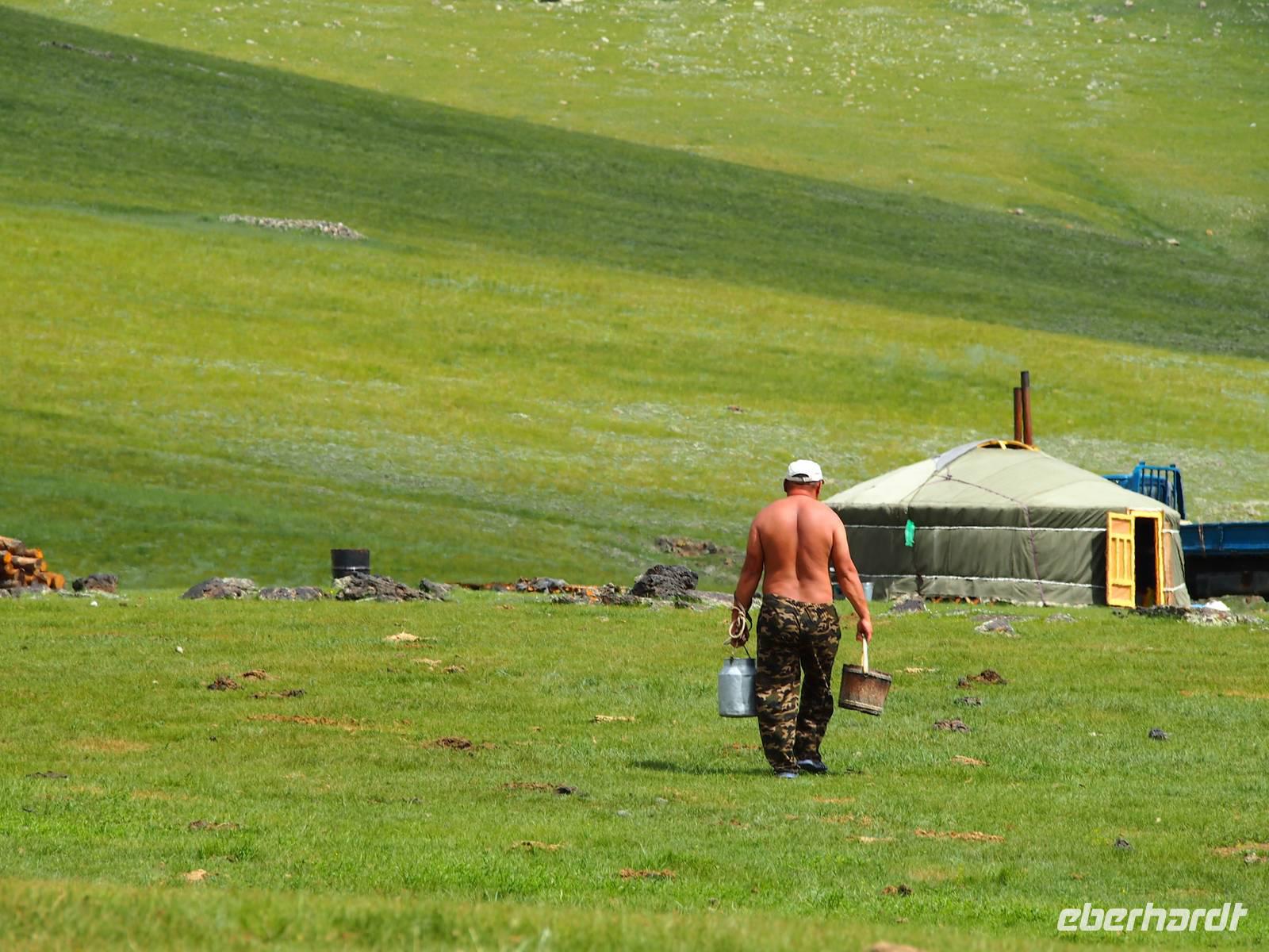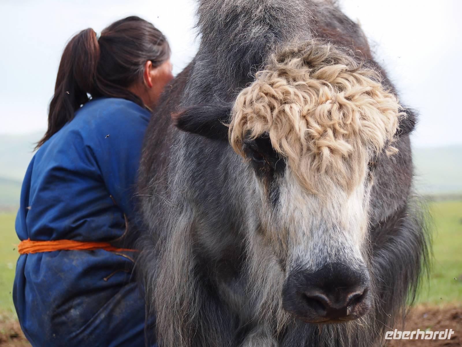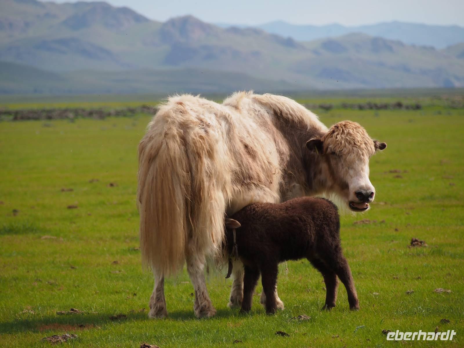 Heute ging es früh zeitig wieder weiter Richtung Norden. Unser erstes Ziel war ein wunderschöner Wasserfall. Auf dem Weg dahin hielten wir wieder bei Nomaden an, die gerade Yaks gemolken haben, wobei wir in aller Ruhe zusehen durften.