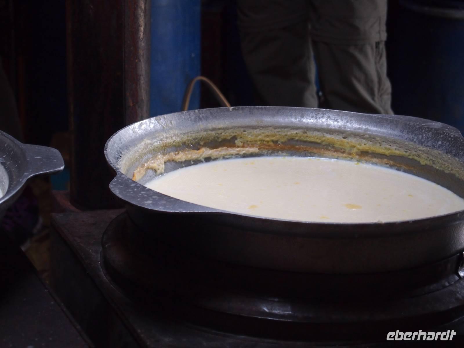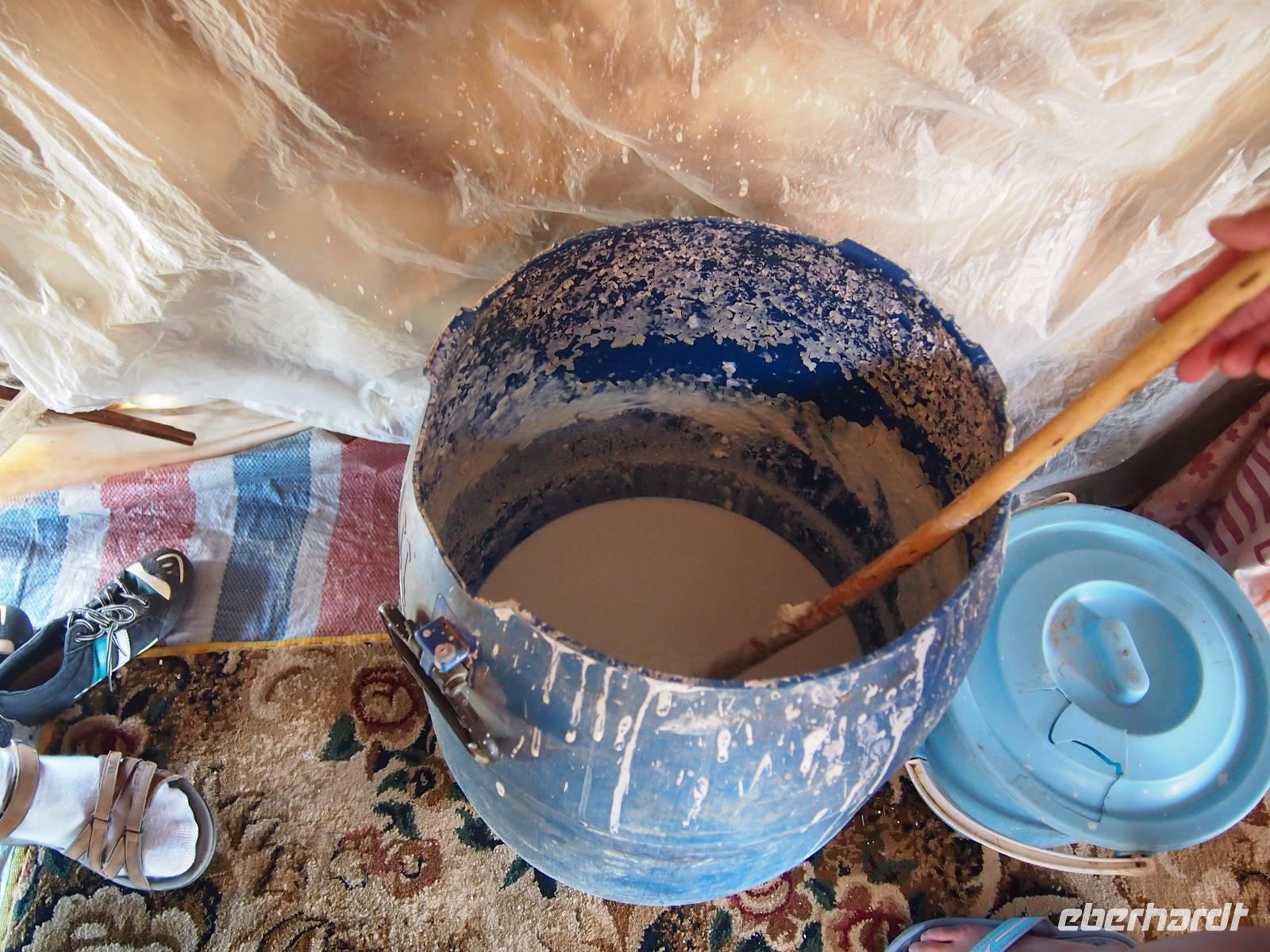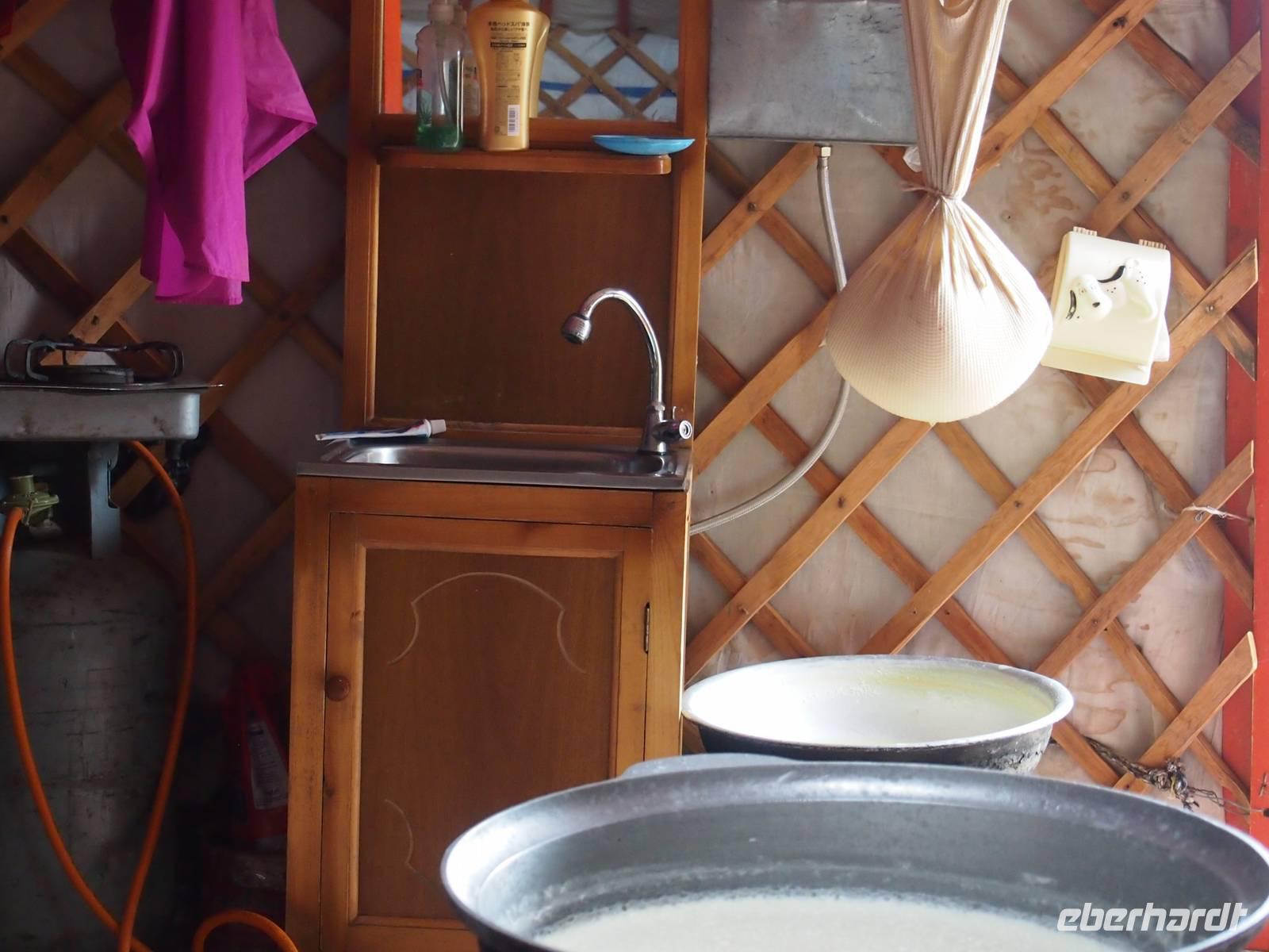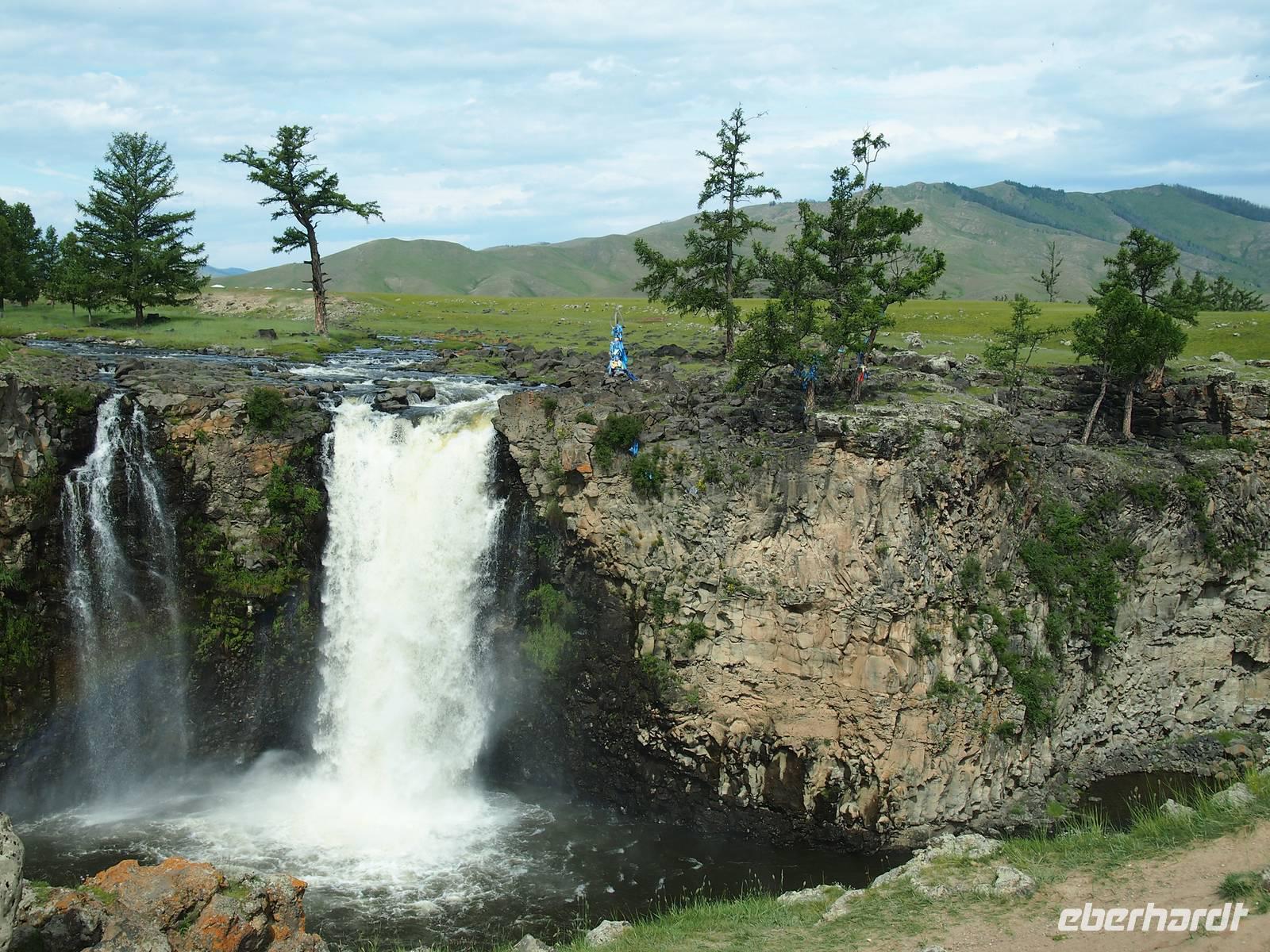 Heute ging es früh zeitig wieder weiter Richtung Norden. Unser erstes Ziel war ein wunderschöner Wasserfall. Auf dem Weg dahin hielten wir wieder bei Nomaden an, die gerade Yaks gemolken haben, wobei wir in aller Ruhe zusehen durften.