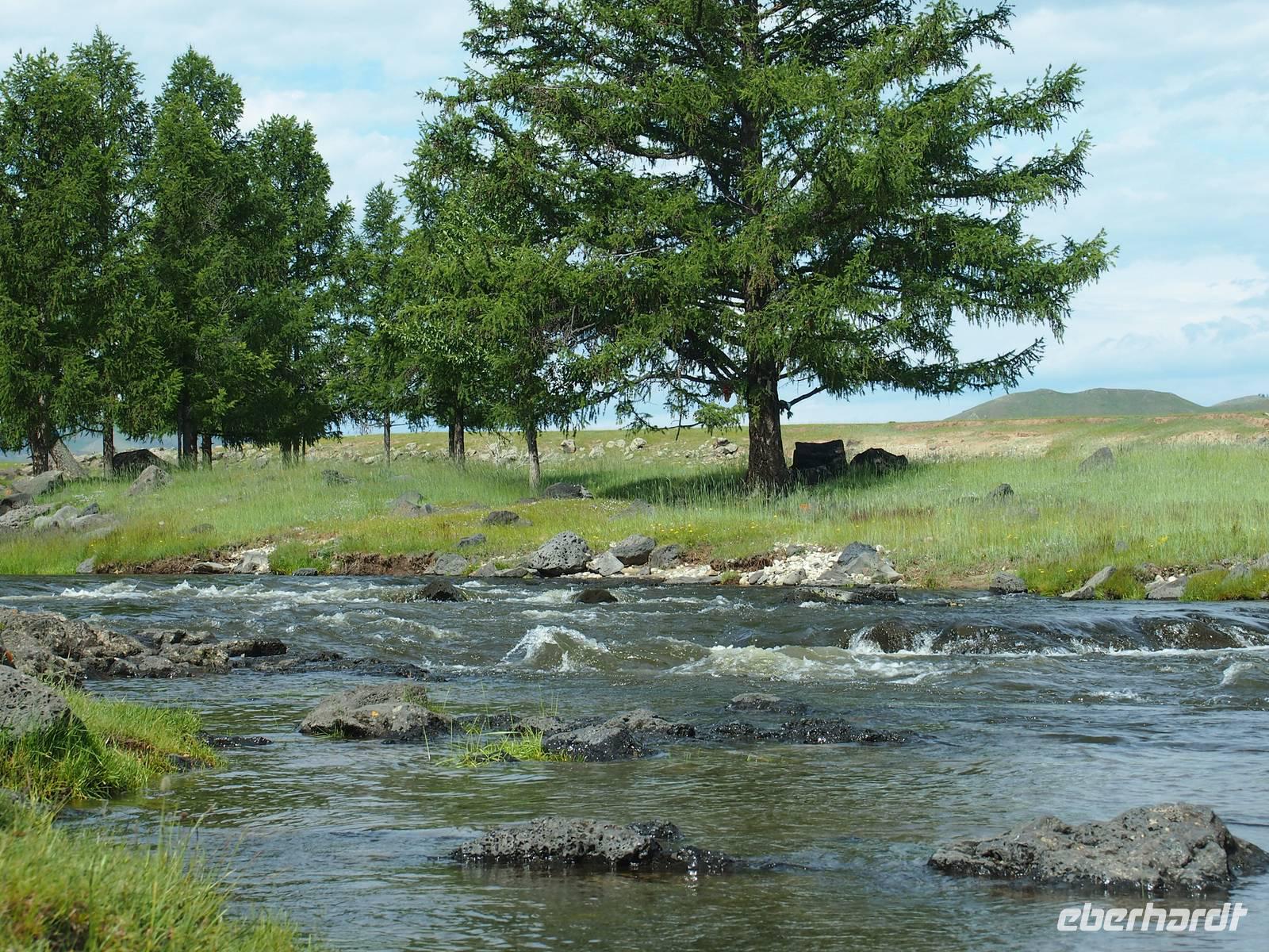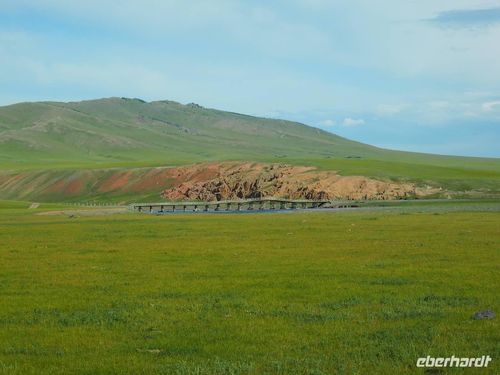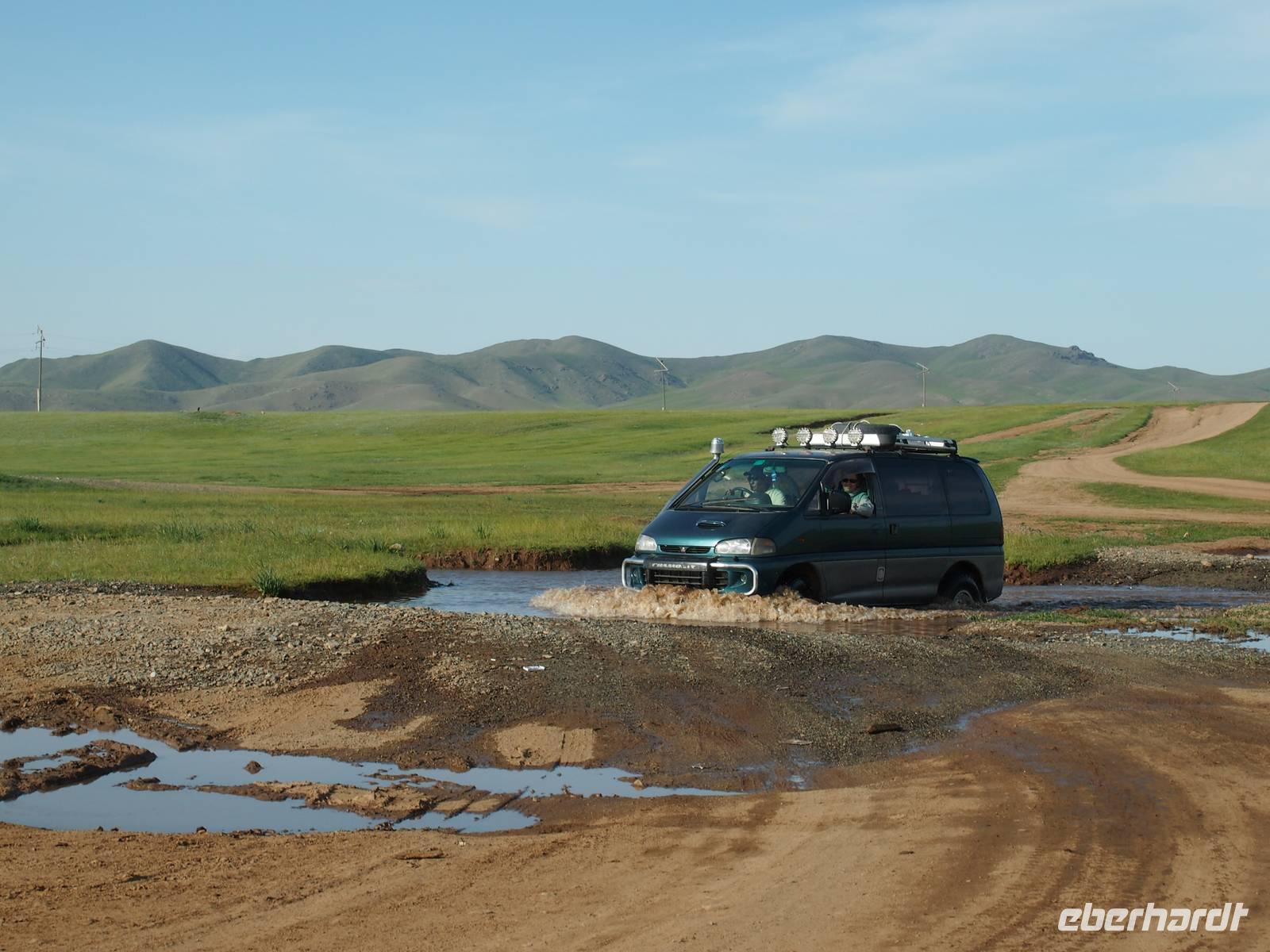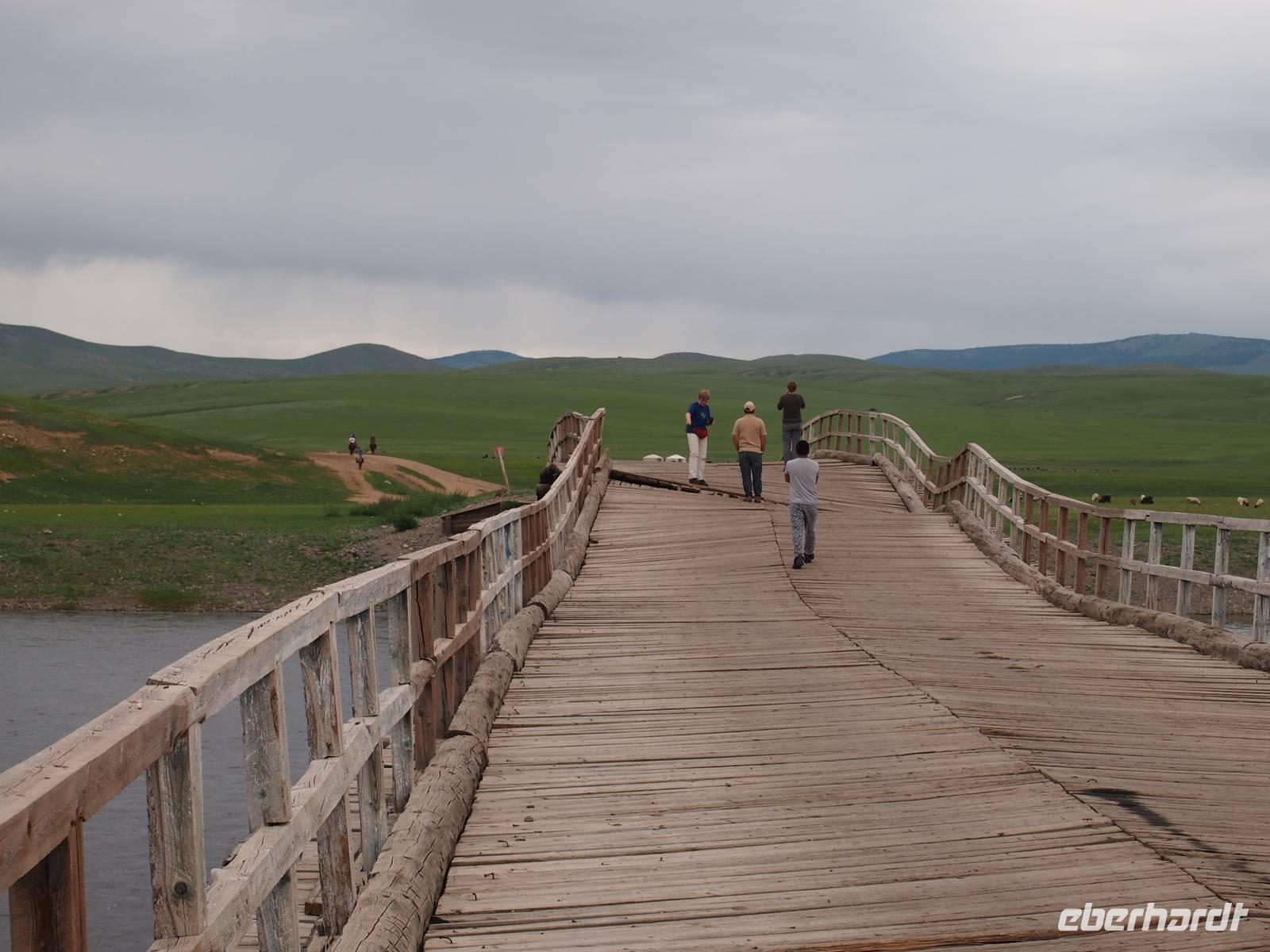 Die Fahrt war heute sehr lang aber führte uns gleichzeitig durch eine traumhafte Landschaft, vorbei an Waldwiesen, die man heute in Deutschland wohl nur noch selten findet. Unser Abenteuer führte uns außerdem durch den ein oder anderen Fluss, über fragwürdige Holzbücken und an unzähligen Tierherden vorbei. Am Nachmittag erreichten wir unser neues Camp. Nach kurzer Erkundungstour begutachteten wir den Ursprung der heißen Quellen, bevor einige von uns diese anschließend im Camp genossen. Nach so einer Fahrt war dies genau das richtige für uns. Abends aßen wir das Nationalgericht Khorgo Khorg, was es nur zu besonderen Anlässen gibt. Da wir auch einige fußballbegeisterte Gäste auf unserer Reise hatten, ließ unsere Reiseleiterin es nicht nehmen, für uns die Liveübertragung im Nachbarcamp zu organisieren.