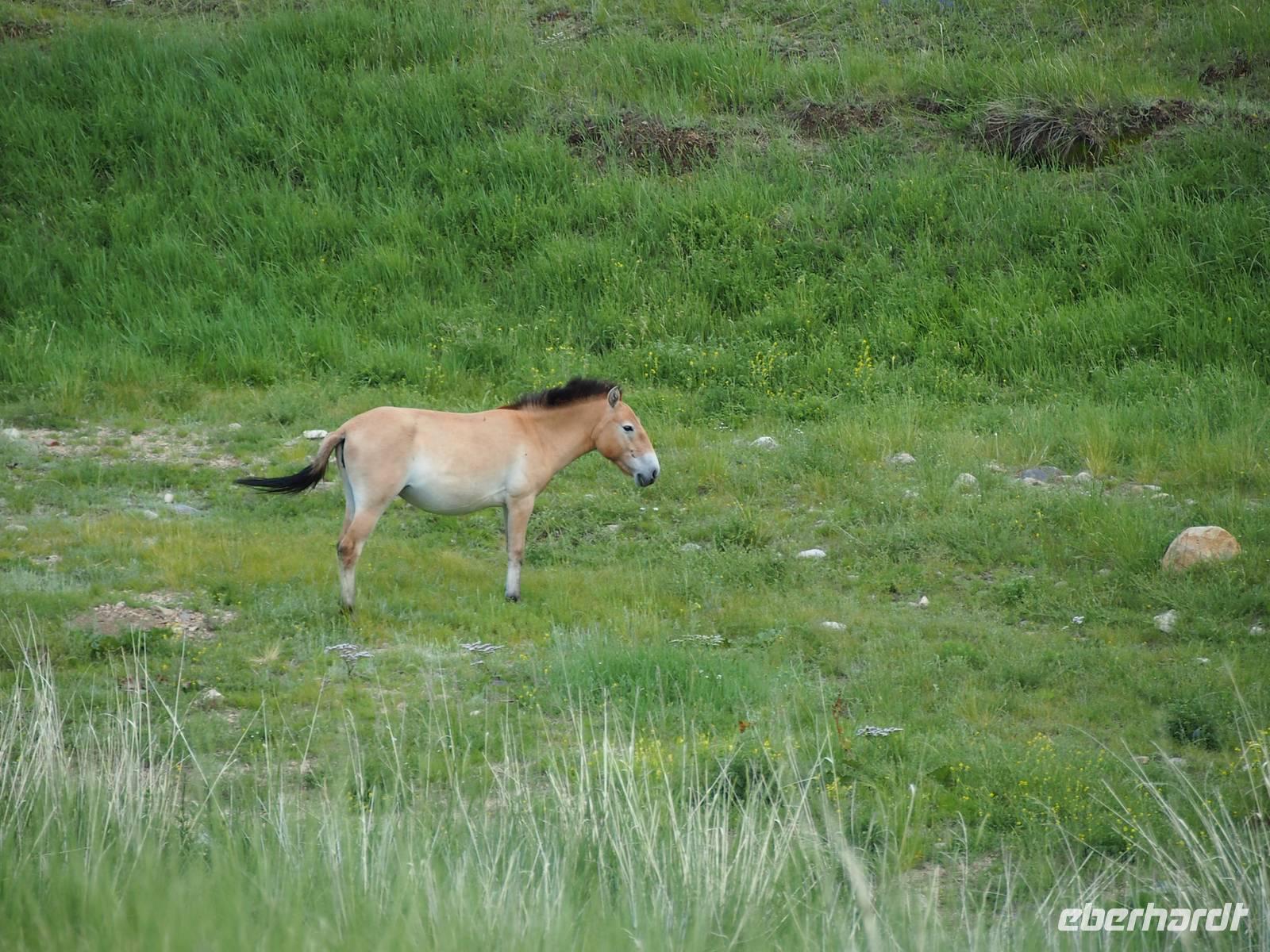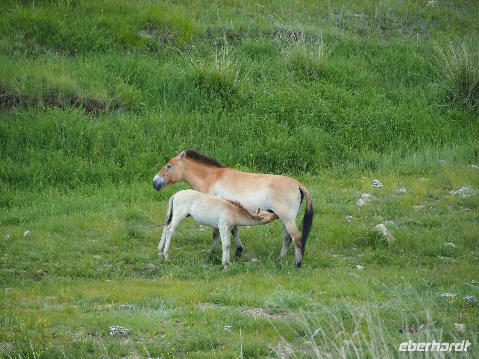 Am heutigen Tag lag wieder eine lange Fahrt und gleichzeitig die letzte Übernachtung in einer Ger vor uns. Nach dem Frühstück besuchten wir von einem Fahrer Verwandte Nomaden, die es sich nicht nehmen ließen neben den üblichen Leckereien auch noch eine Suppe extra für uns zu kochen, aus frischem Hammelfleisch und Nudeln. Der Besuch war sehr interessant und so erkundeten wir alles sehr genau. Die Nomaden besitzen neben Pferden auch noch drei Kamele, die wir aber leider nicht zu Gesicht bekamen. Anschließend spazierten wir noch auf einer etwas kleineren Sanddüne, die nur unweit der Familie entfernt lag. Unser weiterer Weg führte uns heute zum nächsten Highlight der Reise, dem Hustai Nationalpark, wo wir Przewalski-Pferde in freier Wildbahn bestaunen konnten. Das Glück war wieder mal auf unserer Seite und wir sahen nach kurzer Zeit etwa 10 - 12 Pferde, sogar mit Fohlen. Der Tag wurde noch mit einem schönen Regenbogen abgerundet, bevor es zum letzten Camp ging. Nachdem wir die Jurten bezogen hatten, trafen wir uns zum Abendessen. Nach dem Esen brachte uns Tsegi noch ein mongolisches Lied bei und da gerade Stromausfall war, lernten wir das Lied bei Kerzenschein. Das gab dem letzten Abend noch eine ganz besondere Atmosphäre.