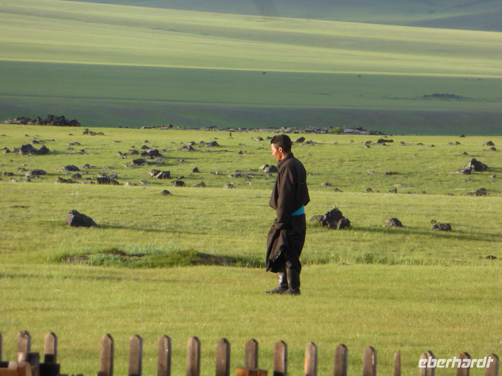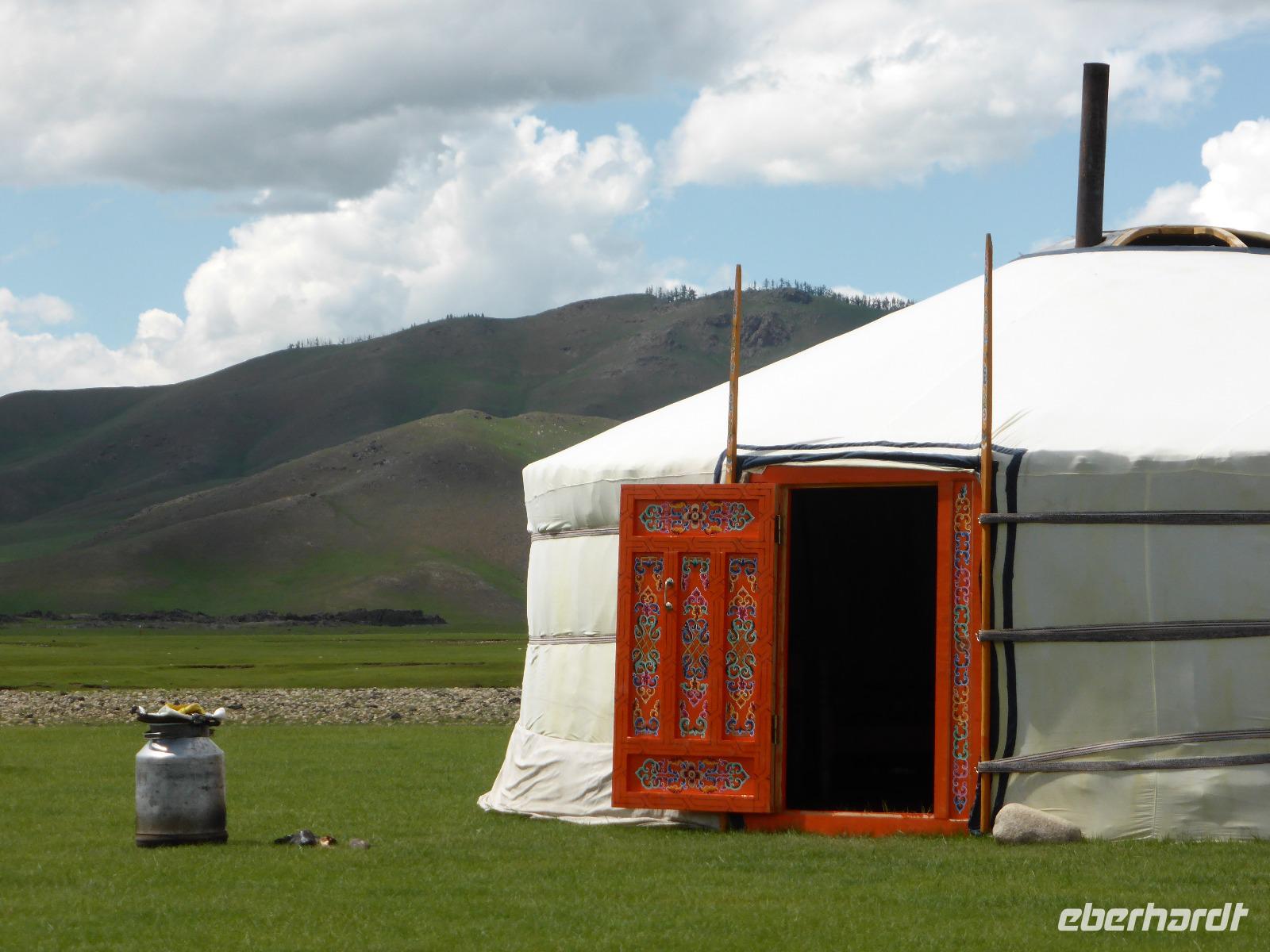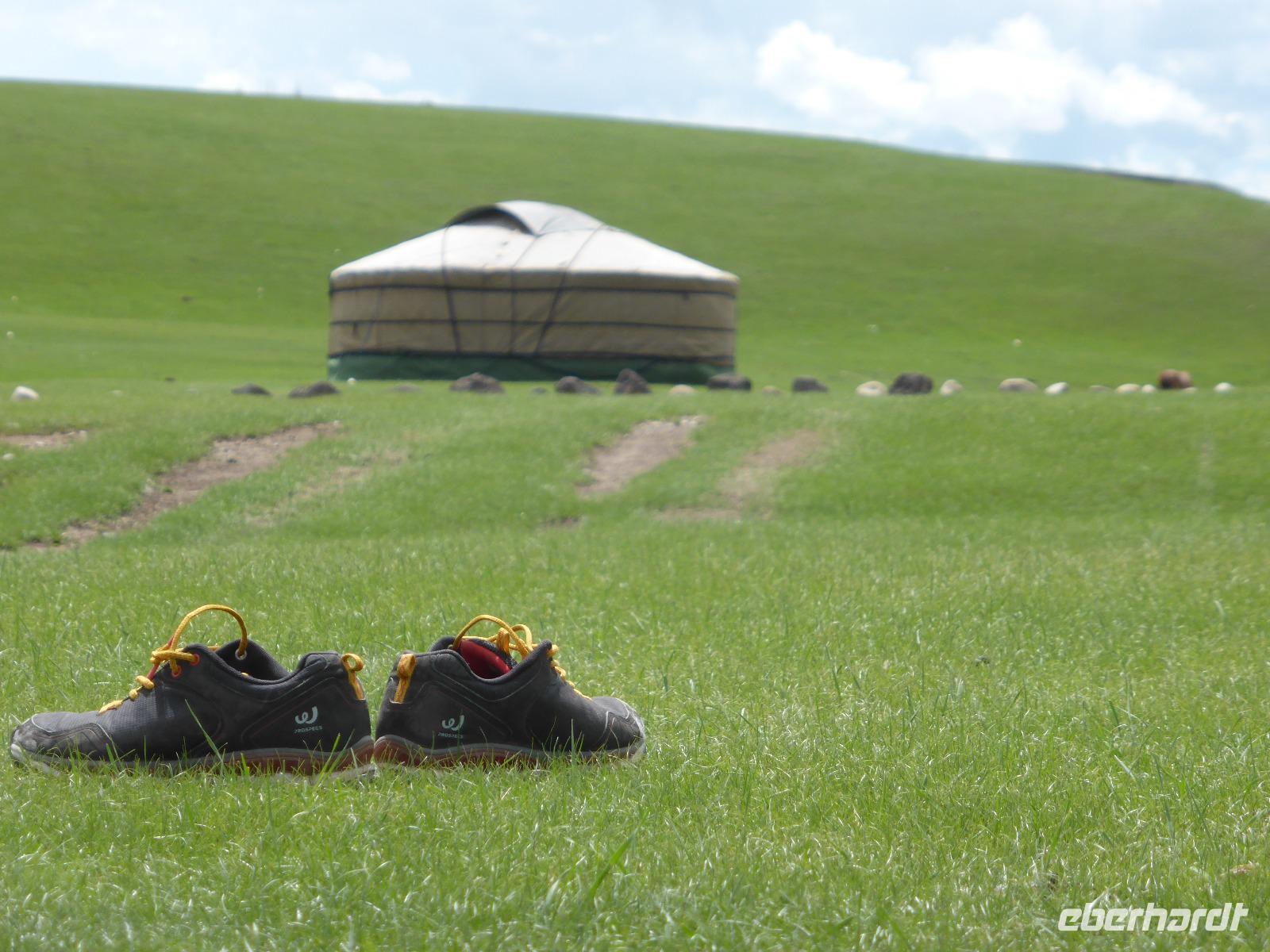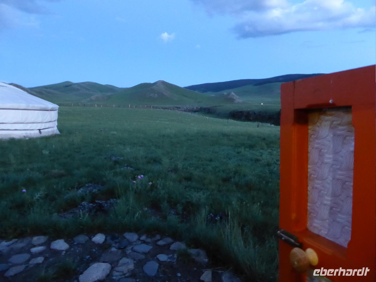 Wenn man morgens die Tür der Jurte öffnet, sieht man Weite. Die Weite der Mongolei. Jedenfalls ein Stück davon.