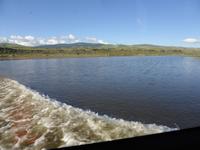 Wir fahren entlang des Flusses, umgeben sind wir von üppigen, gesunden Wiesen. Durch den Regen der letzten Tage ist der Fluss breit geworden und über die Ufer getreten. Jetzt am Morgen halten sich viele Tiere nah am Fluss auf, stillen ihren Durst. Kraniche erheben sich von den Wiesen in die Lüfte.