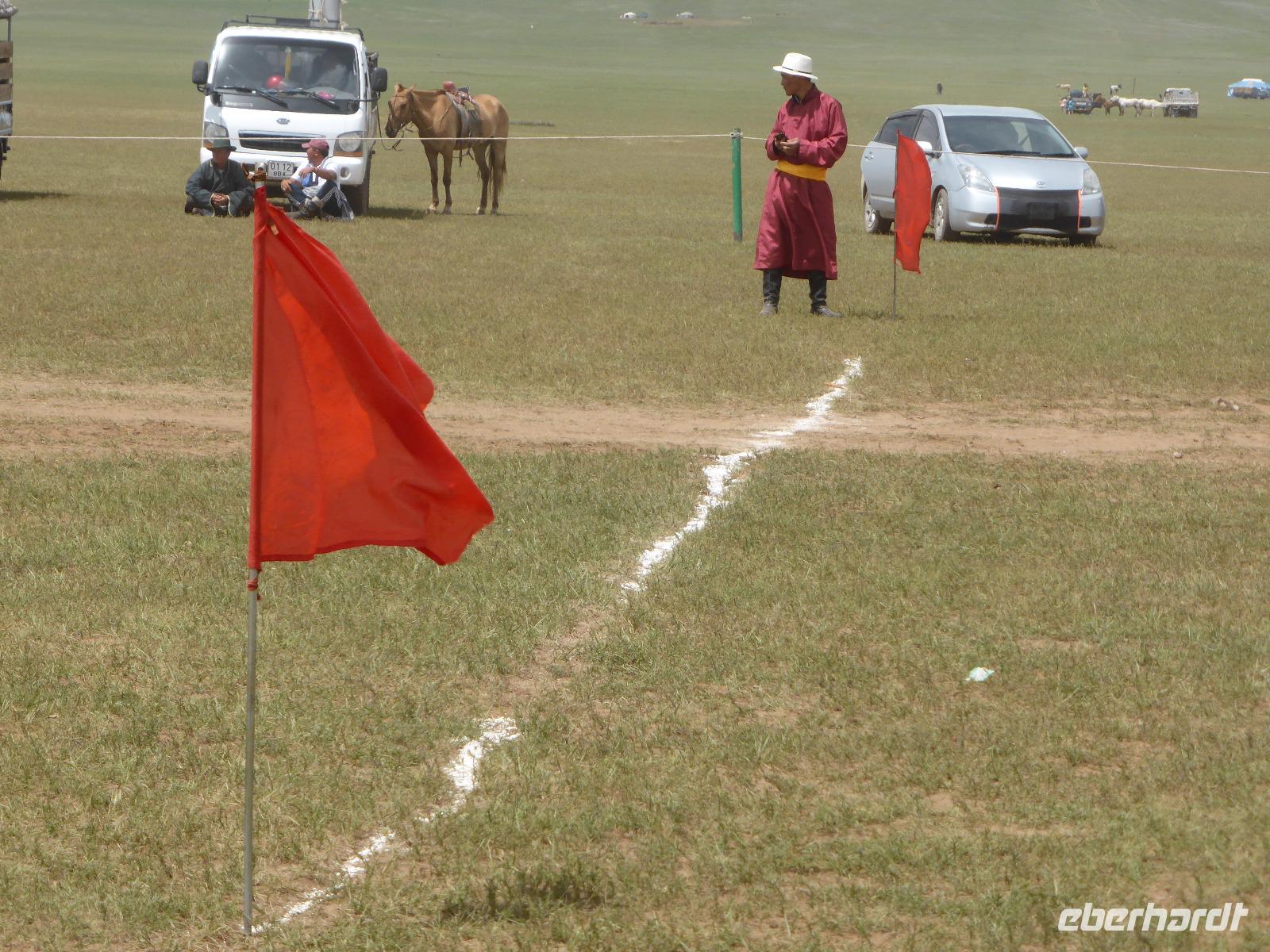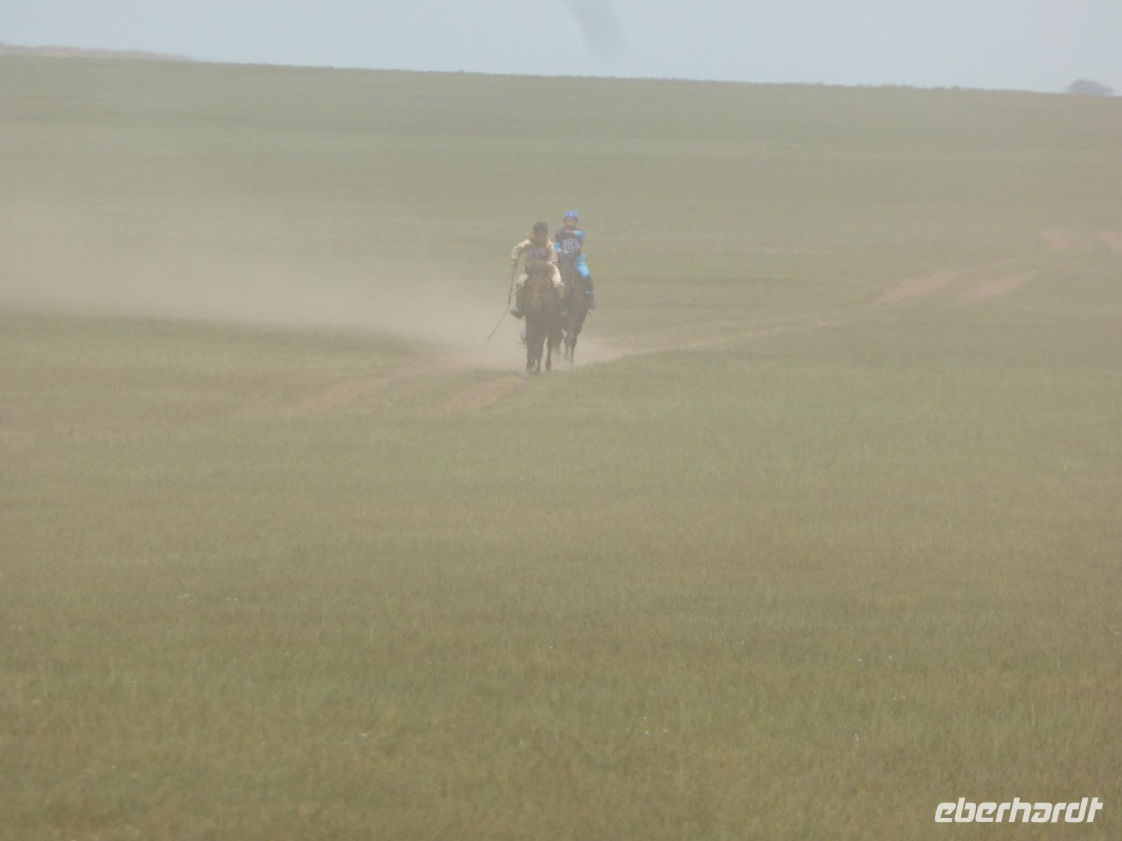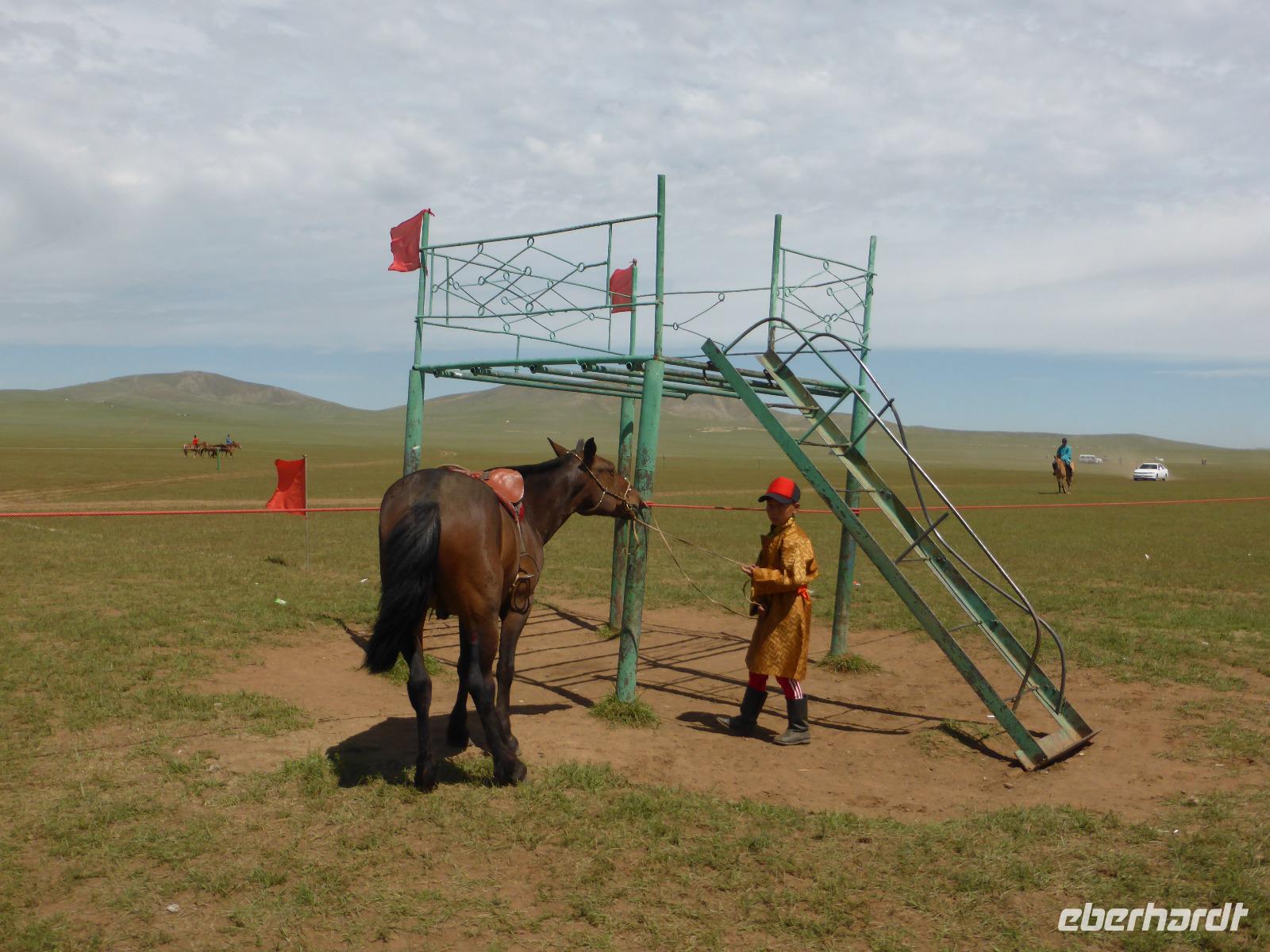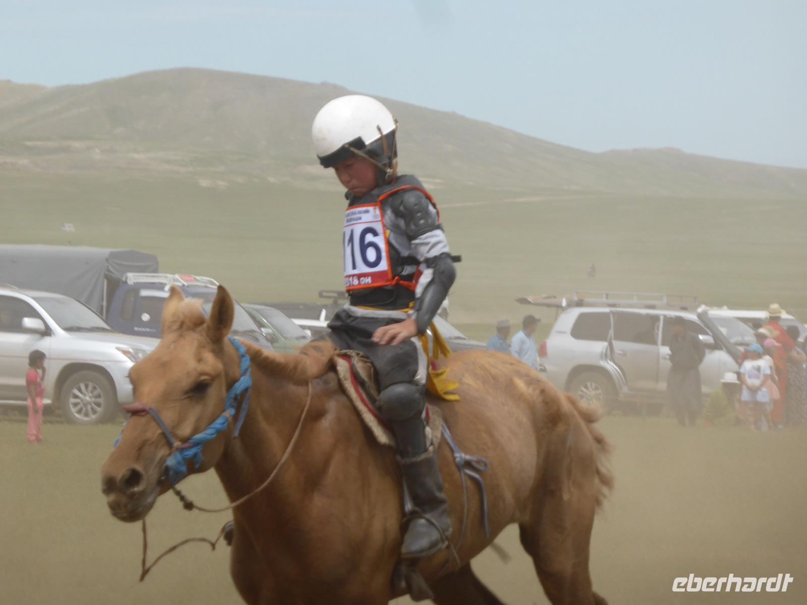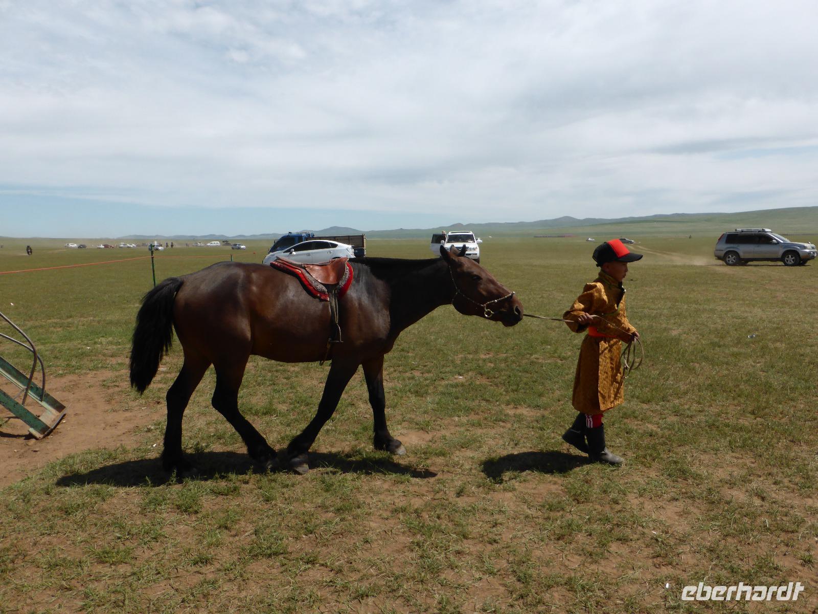 Noch fahren wir durch die Steppe,ein wenig gedankenversunken. Das Ziel heißt heute Ulan Bator. Gedankenversunken beginnen wir die Fahrt. Unsere Aufmerksamkeit wird geweckt durch Aktivitäten jenseits der Straße. Unsere Fahrer erkennen mit geübtem Blick, dass es da drüben wahrscheinlich ein Pferderennen gibt. Gut möglich, zwei Tage vor dem großen Naadam-Fest in der Hauptstadt. Das sollten wir uns nicht entgehen lassen. Wenn auch heute nicht fester Programmpunkt, biegen wir kurzentschlossen ein auf das Gelände. Mischen uns unter das Volk. Was gibt es da alles zu beobachten!? Volksfestcharakter. Die Menschen haben ihre Trachten oder die Sonntagskleider angezogen. Man hat sich fein gemacht. Die Damen immer mit Handtasche. Nicht selten hochhackige Schuhe. Rituale, von denen die mongolische Reiseleiterin erzählt hatte, fallen uns nun auf. Die Männer reichen sich gegenseitig ihre Tabakdose zum Beschnuppern und Testen bei der Begrüßung. Eine Wertschätzung des Anderen. Gefüllte Teigtaschen werden gebacken. Diese zu essen bei solch einem Fest, ist auch Tradition. Plötzlich kommt Bewegung in die Menge. Immer mehr Autos, mit Fähnchen geschmückt, fahren auf den Festplatz und mehr und mehr füllt er sich mit Menschen. Alle halten Ausschau, ob sich die Pferde nähern, eine staubwolke sie ankündigt. Dann ist es soweit. Die Euphorie der Zuschauer steigt. Jetzt der Zieleinlauf. Die Jungen kämpfen bis zuletzt. Weit ist das Feld auseinandergezogen. Meist holen die Väter ihre Sprösslinge ab, sind stolz auf sie.