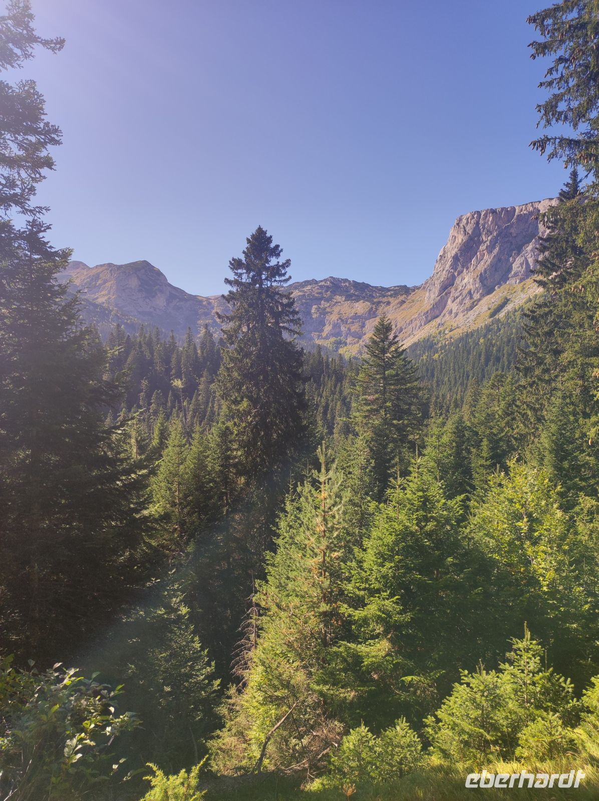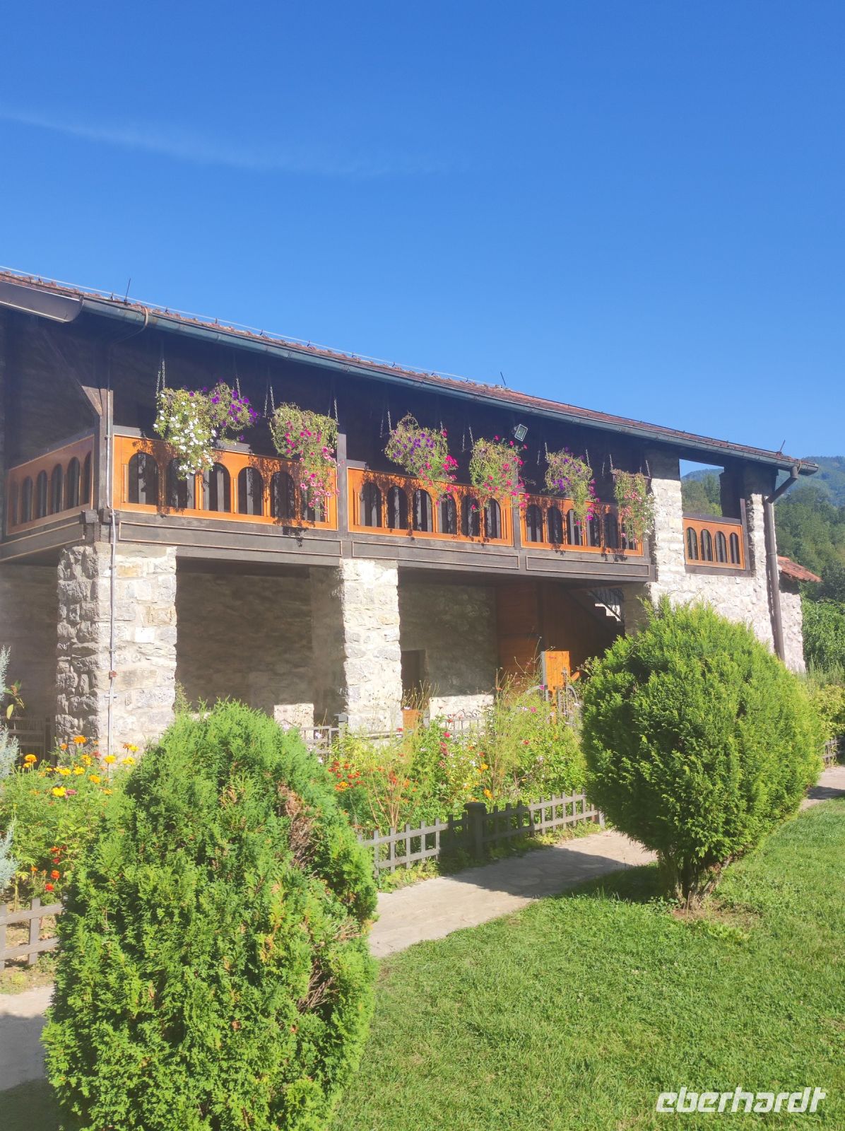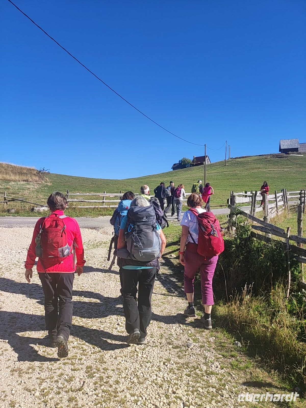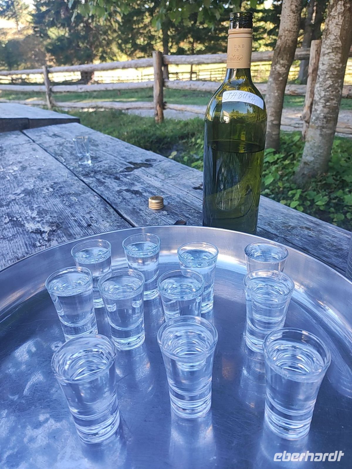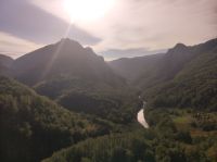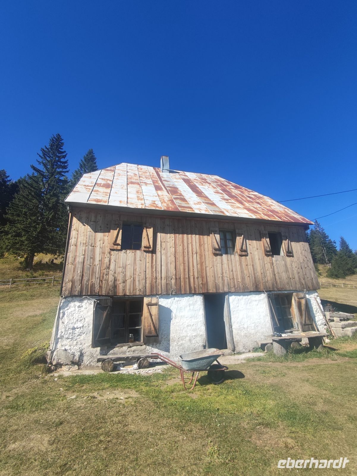 Endlich geht es auf zur 1. Wanderung! Mit dem Bus fuhren wir zum etwa 10 Minuten entfernten Durmitor Nationalpark, unser 1. Ziel war der „Crno Jezero“ oder auch „Schwarzer See“ genannt. Wir wanderten um den See und genossen den herrlichen Blick auf den See und das Gebirgsmassiv im Hintergrund, weiter ging es dann durch einen dichten Wald zum „Zmijinje Jezero“ dem Schlangensee. Gegen Mittag erreichten wir das kleine Dorf „Bosaca“ unsere örtliche Wanderführerin organisierte uns ein typisches Essen (Ein leckerer und sättigender Getreide-Kartoffelbrei mit Ziegenkäse und Fladenbrot). Gegessen haben wir im Garten einer hier lebenden Familie, dazu gab es nationales Bier, Wasser und zum Abschluss einen Rakjia. Von hier aus wanderten wir dann Richtung Zabljak und unser Busfahrer holte uns auf halber Strecke ab und fuhr uns zurück zum Hotel.