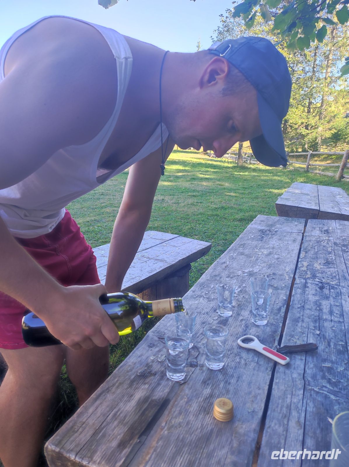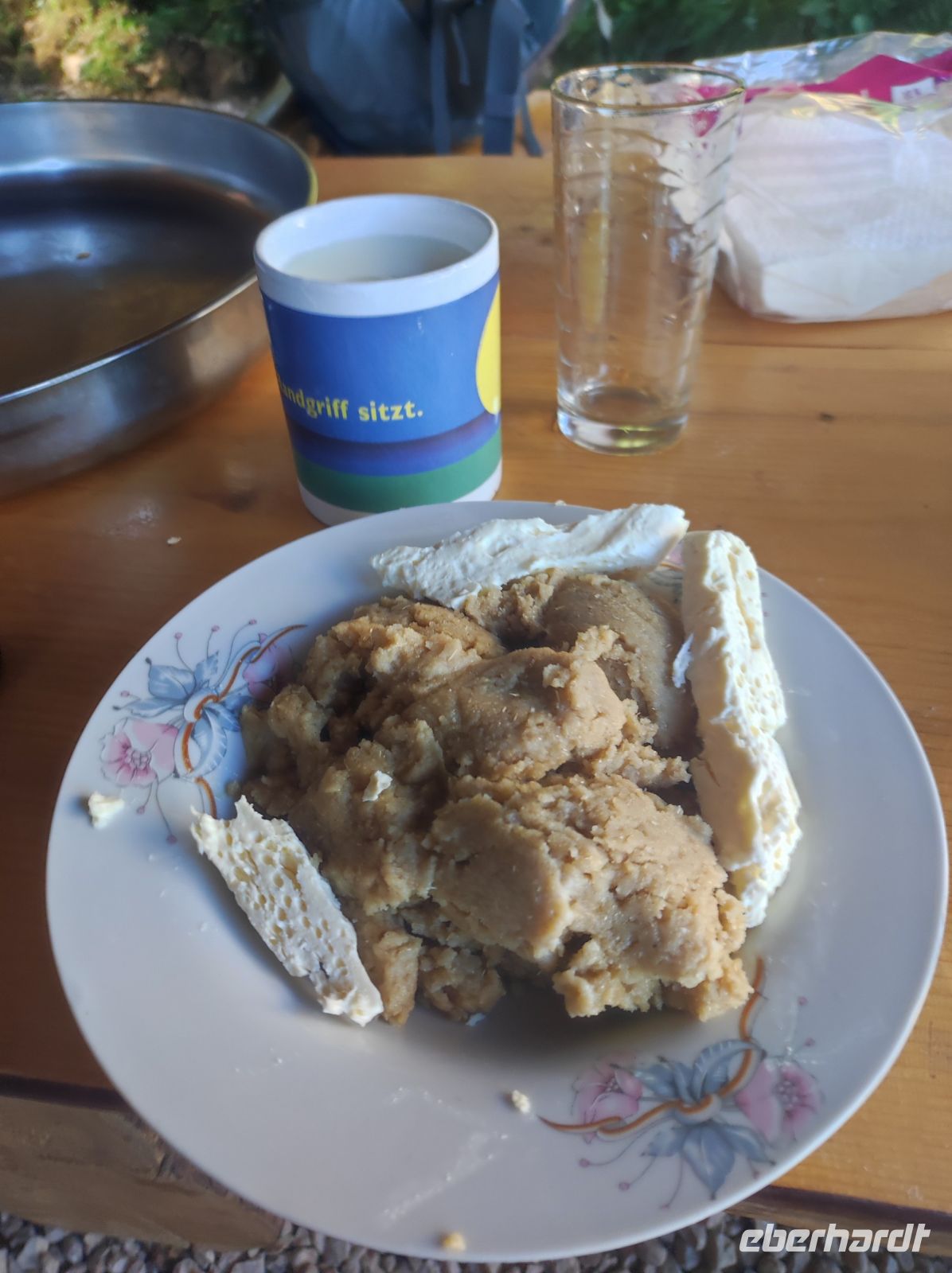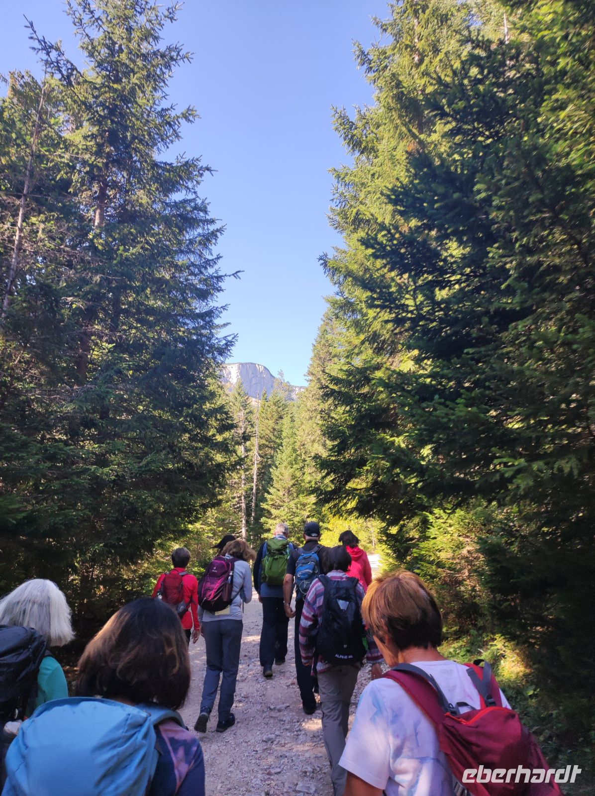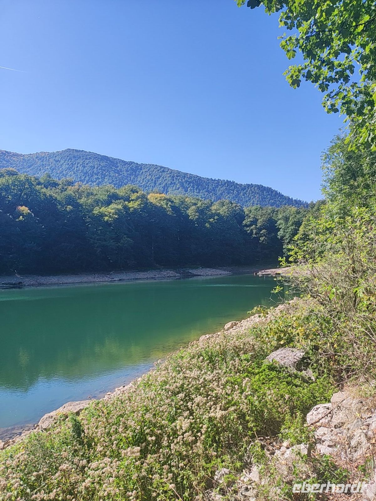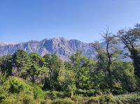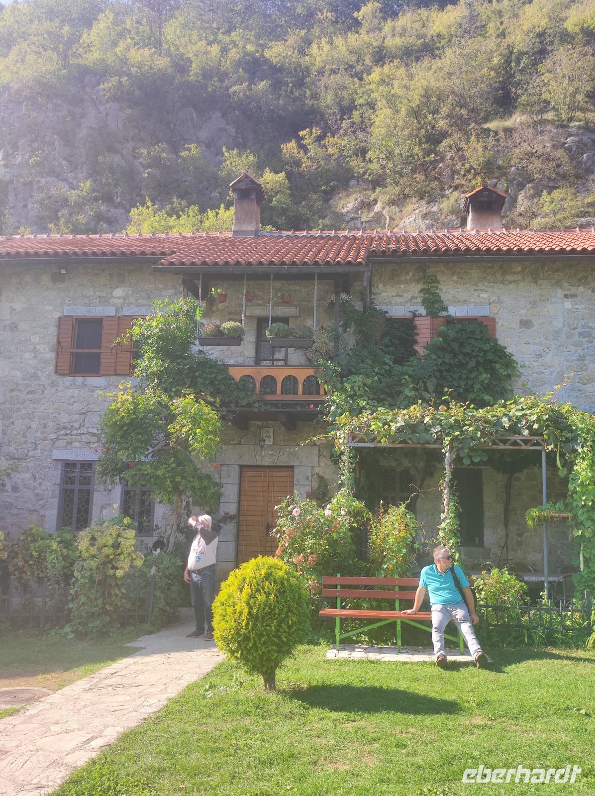 Endlich geht es auf zur 1. Wanderung! Mit dem Bus fuhren wir zum etwa 10 Minuten entfernten Durmitor Nationalpark, unser 1. Ziel war der „Crno Jezero“ oder auch „Schwarzer See“ genannt. Wir wanderten um den See und genossen den herrlichen Blick auf den See und das Gebirgsmassiv im Hintergrund, weiter ging es dann durch einen dichten Wald zum „Zmijinje Jezero“ dem Schlangensee. Gegen Mittag erreichten wir das kleine Dorf „Bosaca“ unsere örtliche Wanderführerin organisierte uns ein typisches Essen (Ein leckerer und sättigender Getreide-Kartoffelbrei mit Ziegenkäse und Fladenbrot). Gegessen haben wir im Garten einer hier lebenden Familie, dazu gab es nationales Bier, Wasser und zum Abschluss einen Rakjia. Von hier aus wanderten wir dann Richtung Zabljak und unser Busfahrer holte uns auf halber Strecke ab und fuhr uns zurück zum Hotel.
