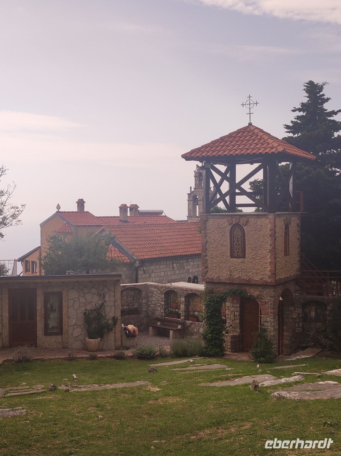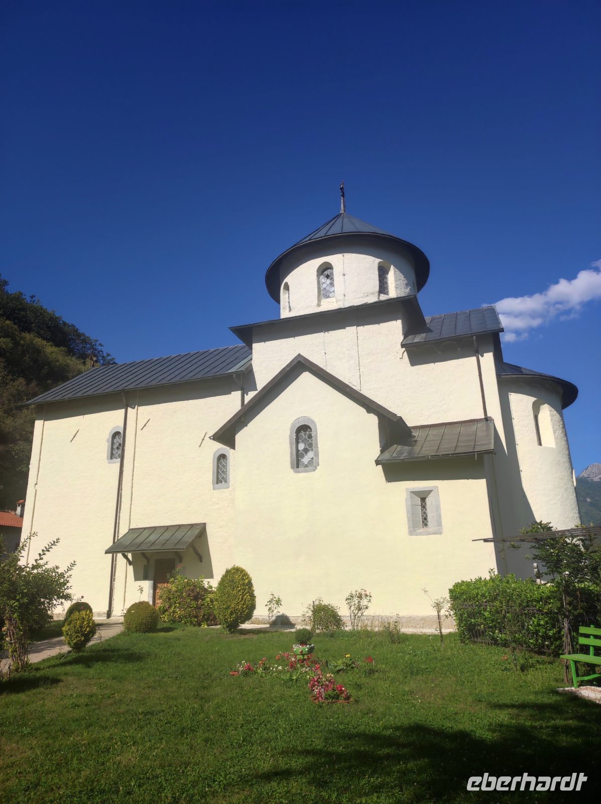 Nach dem Frühstück fuhren wir zum Startpunkt unserer heutigen Wanderung, wir liefen von der Festungsruine Kosmac über die ehemaligen Handelswege von Österreich-Ungarn. Wir liefen an einer Klippe entlang und nach einigen Kilometern und Höhenmetern erreichten wir ein abgelegenes Frauenkloster, hier machten wir unsere erste Rast. Die Nonnen versorgten uns mit Tee und Kaffee, ihre selbst hergestellten Naturkosmetik Produkte stellten Sie uns auch vor. Von Magensaft aus Hibiskus über Kopfschmerz Tabletten aus lokalen Pflanzen, war alles dabei. Weiter ging es dann runter Richtung der Halbinsel Sveti Stefan, etwa auf halber Strecke machten wir noch ein mal Stopp am Frauenkloster Rustovo. Dieses Kloster wurde von der russischen Zarenfamilie Romanow finanziert und ist deutlich größer und hat schön verzierte Türme. In einem Café mit herrlichem Blick auf die Halbinsel Sveti Stefan machten wir unsere letzte Rast, bevor uns der Busfahrer abholte und zurück in das Hotel brachte.