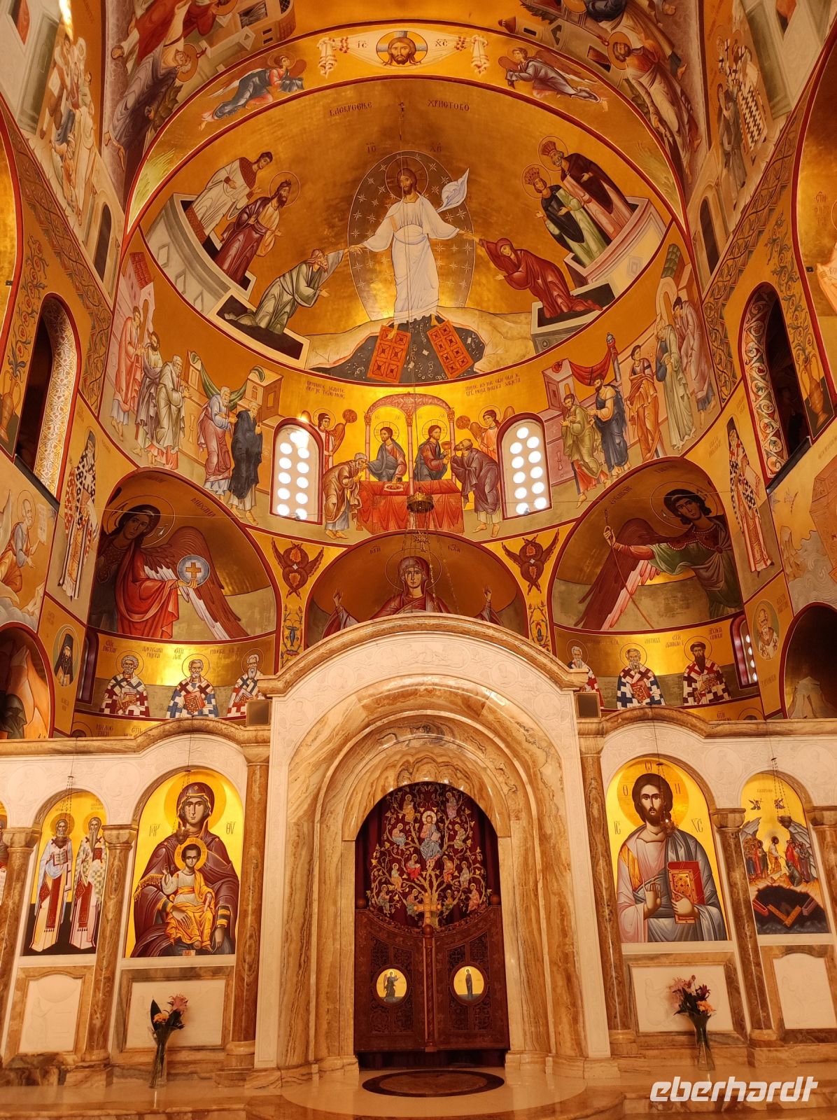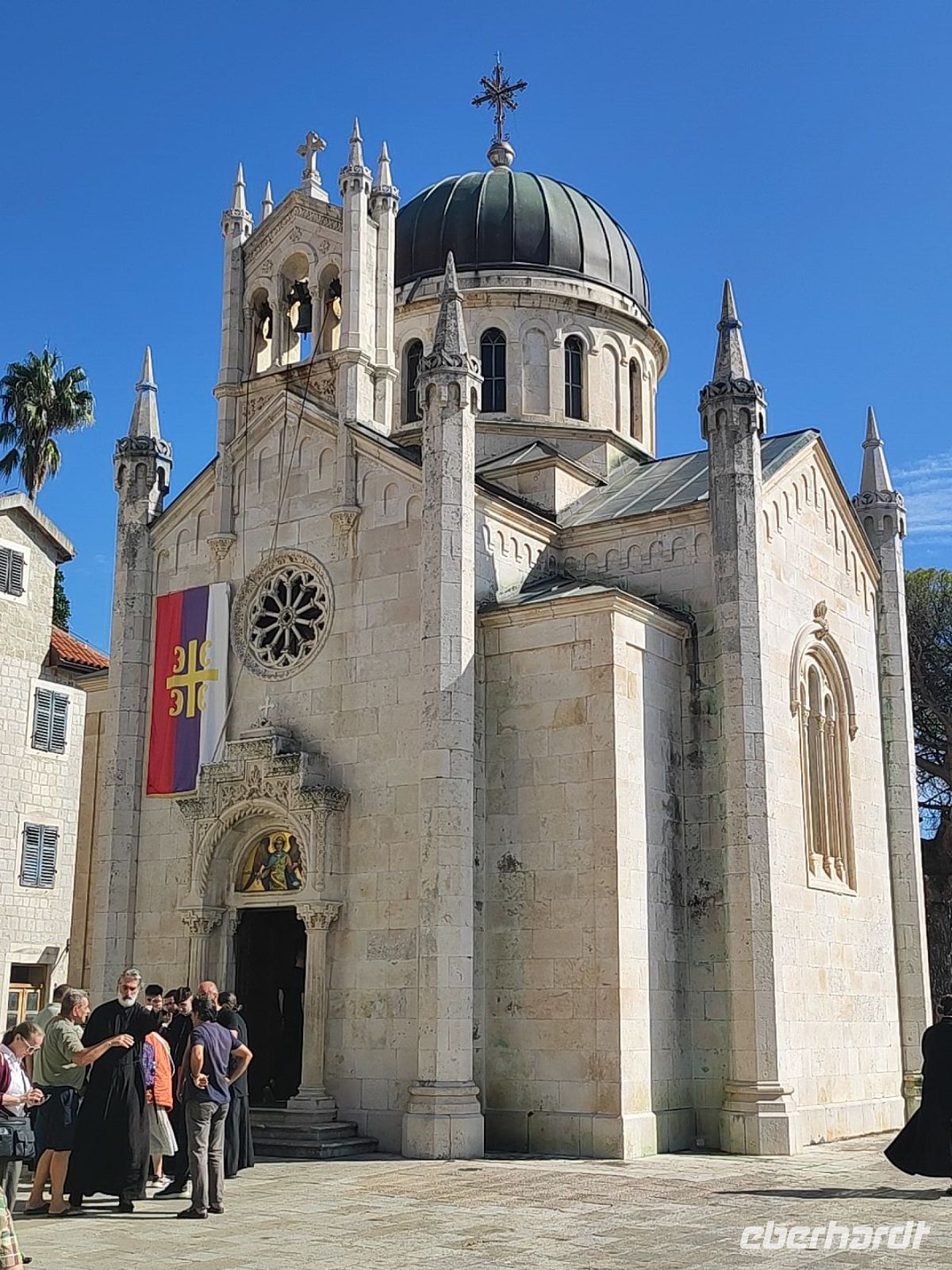 Heute ging es schon wieder Richtung Süden, aber zuerst machten wir halt an der Tara-Schlucht, welche die tiefste Schlucht Europas ist. An der imposanten Ðurdevica-Tara-Brücke machten wir einen Fotostopp und einige Gäste und ich entschlossen uns spontan, mit der Zipline (Seilrutsche) über die Schlucht zu „fliegen“. Diese Ziplines gibt es überall auf der Welt und sind ein regelrechter Adrenalin kick. Weiter ging es dann zum Biogradska Gora National Park, hier wanderten wir um den Gletschersee herum. Der See ist leider schon etwas ausgetrocknet, aber der Weg um den See ist als Lernpfad gestaltet und bietet viele Informationen über die Flora und Fauna der Region. Nach einer kleinen Kaffeepause in einem Restaurant am See ging es dann weiter zum serbisch-orthodoxen Klosterkomplex Moraca. Um das Kloster herum ist in ein schöner Garten angelegt und die alten Fresken im Kloster sind sehr interessant. Auf unserer Fahrt nach Budva machten wir eine kleine Orientierungsfahrt in der Hauptstadt Podgorica und besuchten die „Christi Auferstehungs-Kathedrale“, welche mit ihren zahlreichen detaillierten Wandermalereien eine der prächtigsten Kathedralen, die ich jemals besucht habe. Am späten Nachmittag erreichten wir dann das Urlaubsparadies Budva.