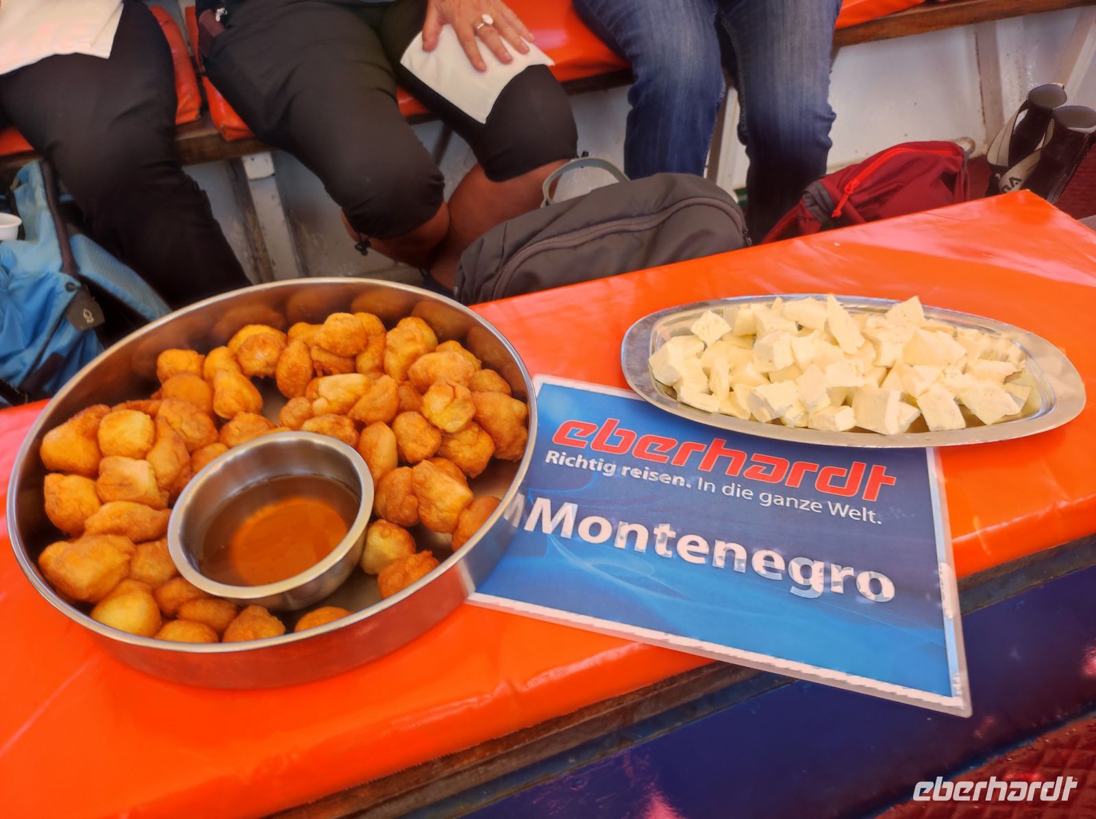 Unsere heutige Wanderung startete in dem kleinem Örtchen Rijeka Crnojevica, unser Ziel war eine Höhle im Felsmassiv. Unser Weg war recht abenteuerlich über Stock und Stein und einigen kleinen kletter Passagen, es ging entlang des Flusses Rijeka Crnojevica vorbei an der Quelle bis zum Höhleneingang. In dem kleinem Ort Rijeka Crnojevica machten wir dann eine kleine Pause, bevor wir weiter zur Anlegestelle unseres Schiffes liefen. Mit dem Schiff ging es den Fluss hinunter bis zum Skutarisee und über den See bis zu dem Dorf Varipazar. Auf der Fahrt genossen wir den grandiosen Ausblick auf die am Ufer befindlichen Hügel- und Bergketten, auf der Fahrt servierte wir den Gästen süßes Gebäck mit Honig und Ziegenkäse – und natürlich Rakija :). Das Hotel erreichten wir gegen 16.30 Uhr, nach dem Abendessen verabredeten wir uns zu einem gemeinsamen Abendspaziergang in die Altstadt von Budva und Mirha erzählte uns ein wenig über die Stadtgeschichte.