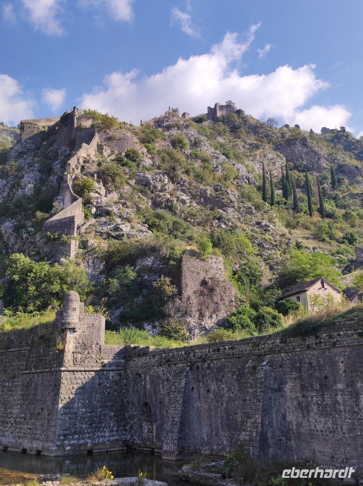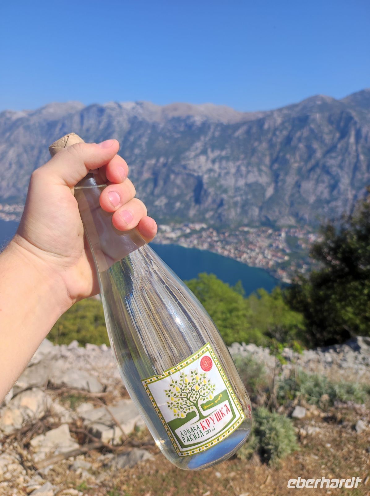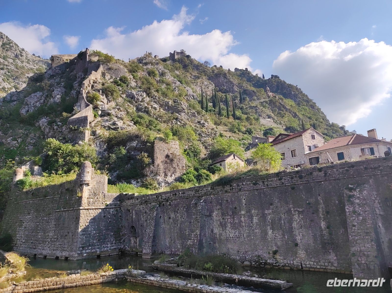 Und schon ist unsere letzte Wanderung... Wir starteten in der Hafenstadt Kotor und nach einem kurzen Fotostopp ging es hoch hinauf, auf dem serpentinenartigen Franz-Josef Weg liefen wir hoch bis zur Festungsruine von Vrmac. Immer wieder hatten wir herrliche Ausblicke auf die Bucht von Kotor und die Stadt, oben angekommen erkundeten einige die Festung Vrmac. Noch immer waren Überreste von Geschütztürmen aus dem 2. Weltkrieg auf dem Dach der Festung zu finden. Nach der Verschnaufspause ging es weiter zu einem schönen Aussichtspunkt, hier gab es noch mal einen Gipfel-Rakjia zur Belohnung, bevor es wieder zurück zur Festung ging, wo uns Milan abholte. Aber bevor wir zurück nach Budva fuhren, hatte jeder Zeit die Altstadt von Kotor auf eigene Faust zu besichtigen, viele verwöhnten sich mit einem Eis nach der harten Wanderung.