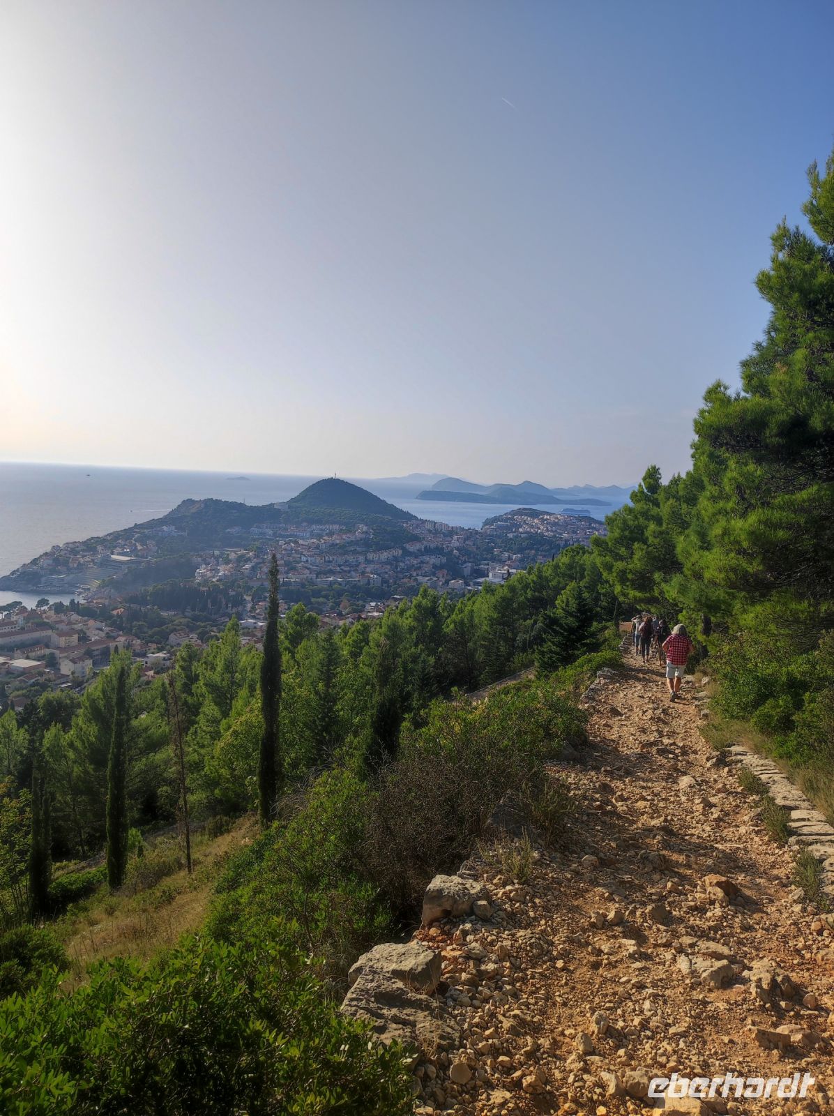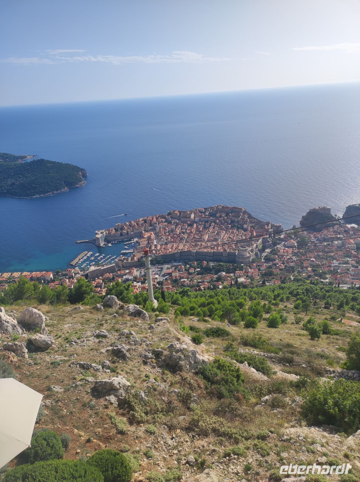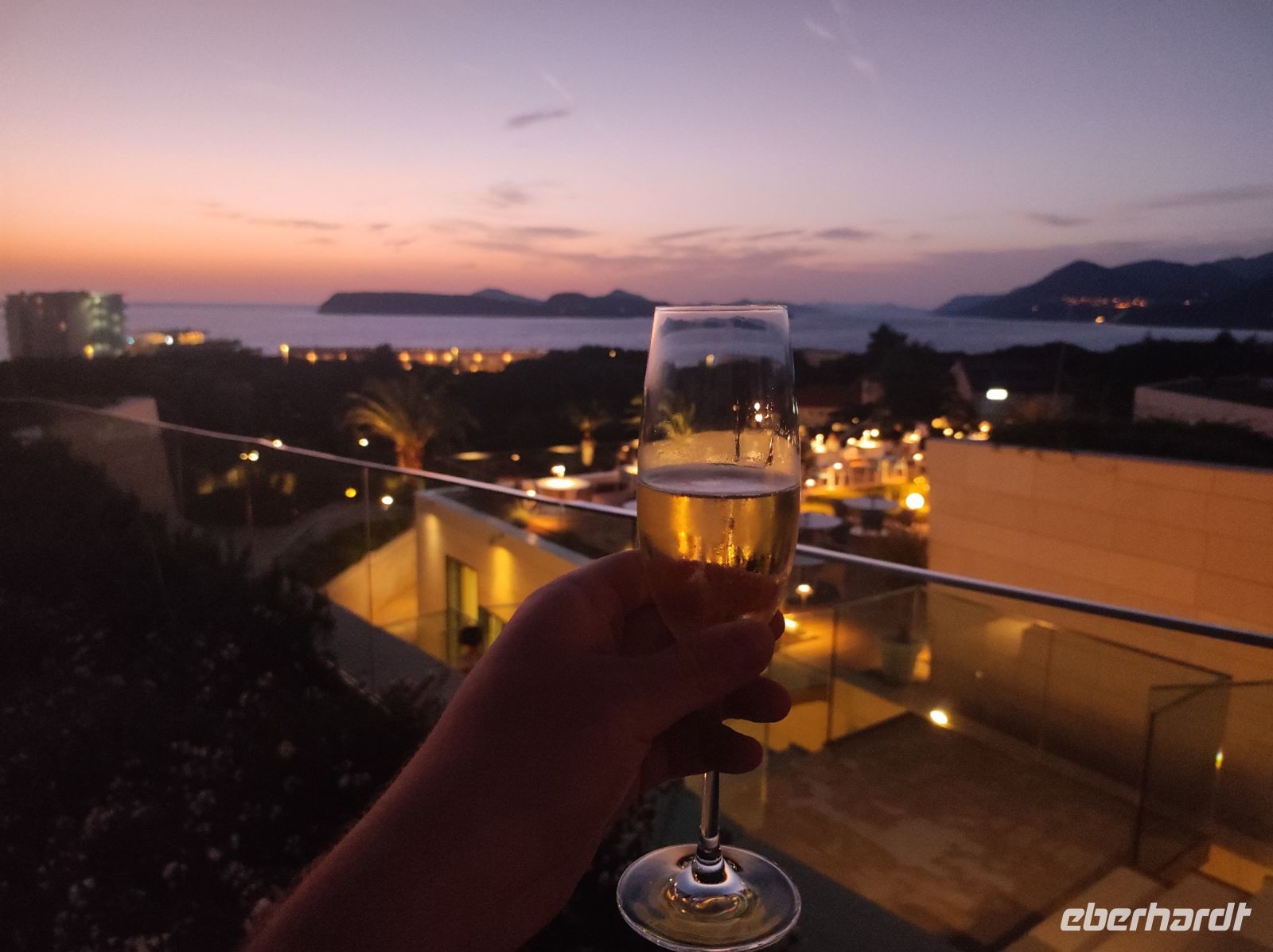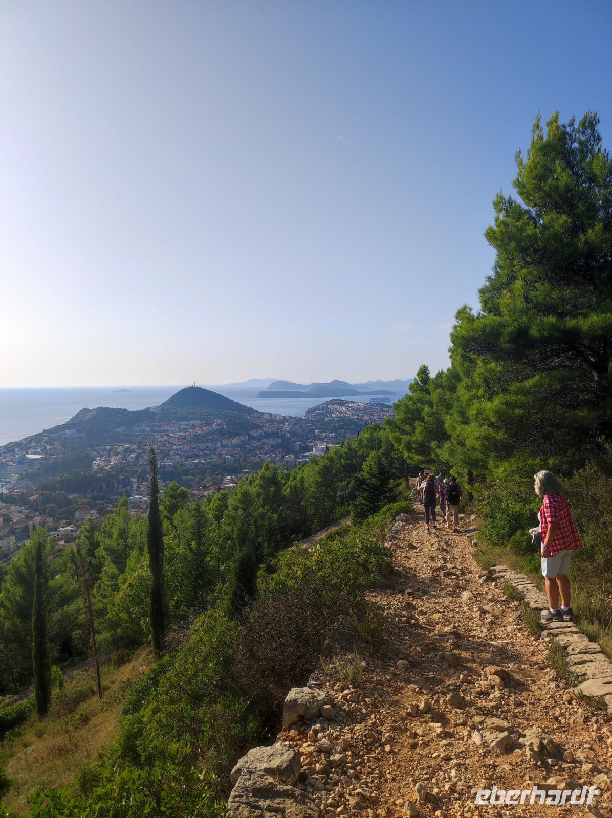 Nachdem alle ausgecheckt haben, fuhren wir Richtung Dubrovnik, aber bevor wir die Grenze passierten, machten wir noch mal Stopp in der Stadt Herceg-Novi. Nach einer kleinen Stadtführung und Kaffeepause verabschiedeten wir unsere Wanderreiseleiterin Mirha und fuhren zusammen mit unserem Busfahrer über die Grenze nach Dubrovnik. Wir erreichten unser Hotel gegen 13 Uhr, aber da wir alle noch lange nicht genug vom Wandern hatten organisierte ich noch mal eine kleine Wanderung. Wir fuhren alle gemeinsam vom Hotel aus mit dem Linienbus an das Altstadttor, spazierten gemütlich durch die Altstadt von Dubrovnik und fuhren dann mit der Seilbahn hoch auf den Hausberg der Stadt. Nach einem Fotostopp und den leider letzten Gipfelschnaps der Reise wanderten wir wieder gemeinsam in die Stadt und fuhren mit dem Linienbus zurück in das Hotel. Bevor wir alle zum Abendessen gingen trafen wir uns an der Bar, hier gab es für jeden ein Glas Sekt und wir stoßen gemeinsam auf die schönen Erlebnisse der Reise an. Das Abendessen in diesem riesigen Hotel war einfach fantastisch, man konnte gar nicht alles probieren, so viel Auswahl gab es. Am Abend fuhren einige Gäste zusammen mit mir noch mal in die Altstadt und wir erkundeten die historischen Gebäude innerhalb der hohen Stadtmauer von Dubrovnik.