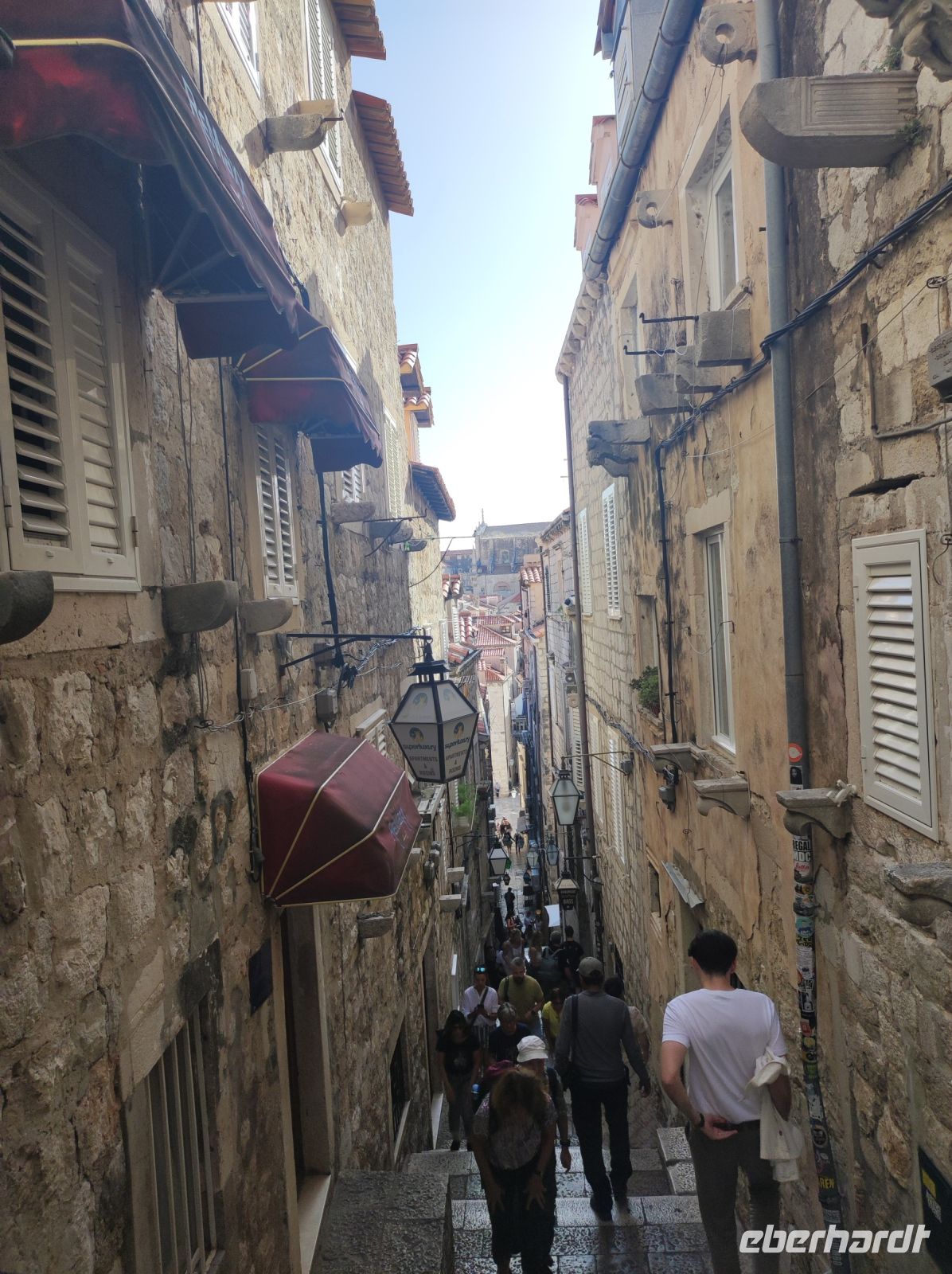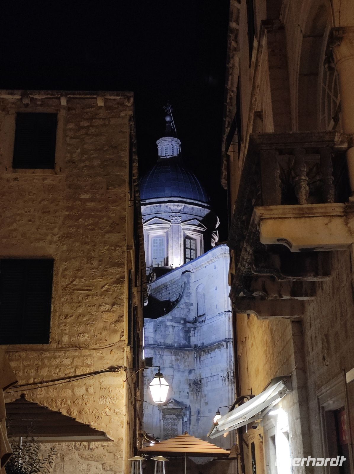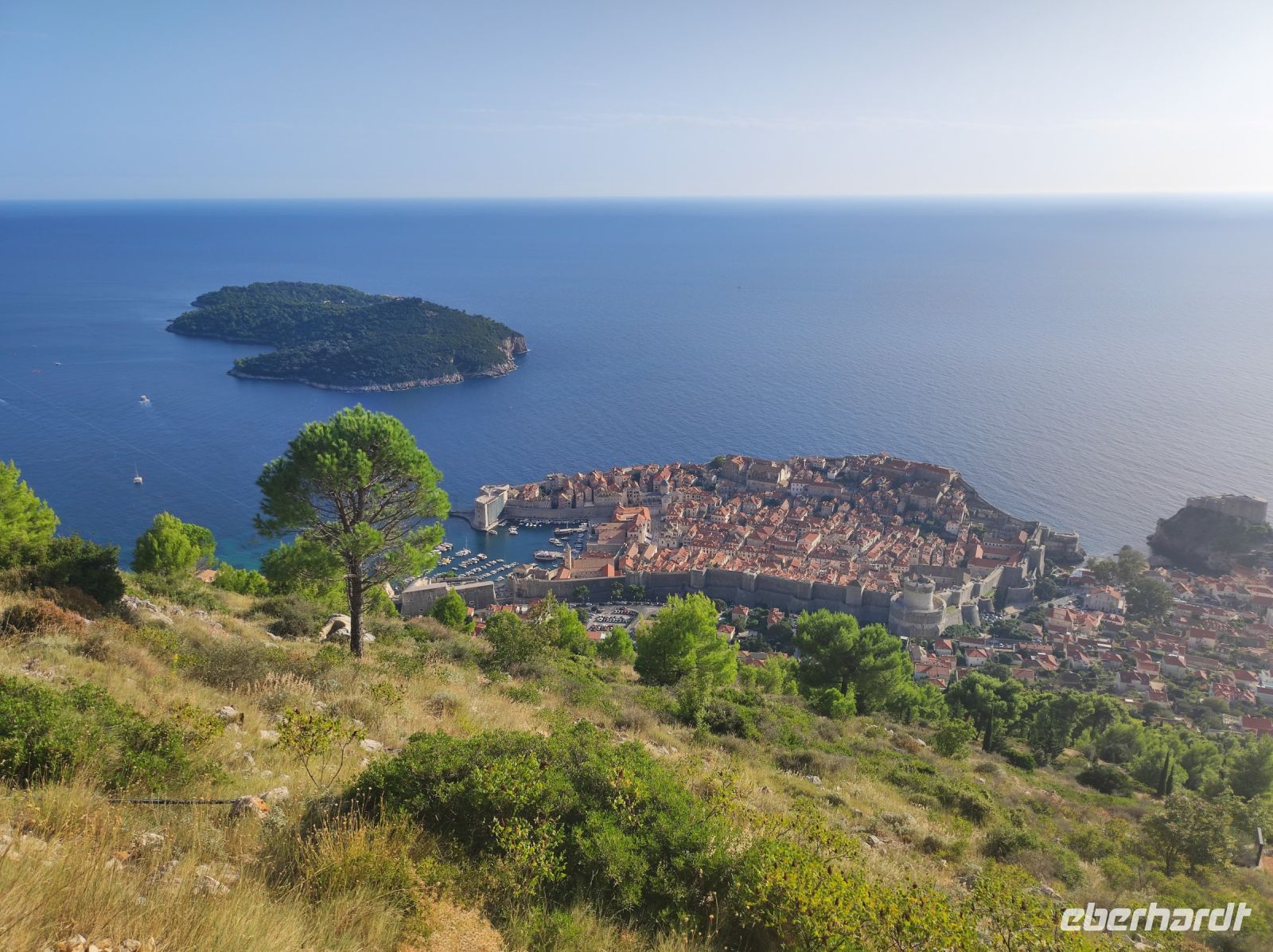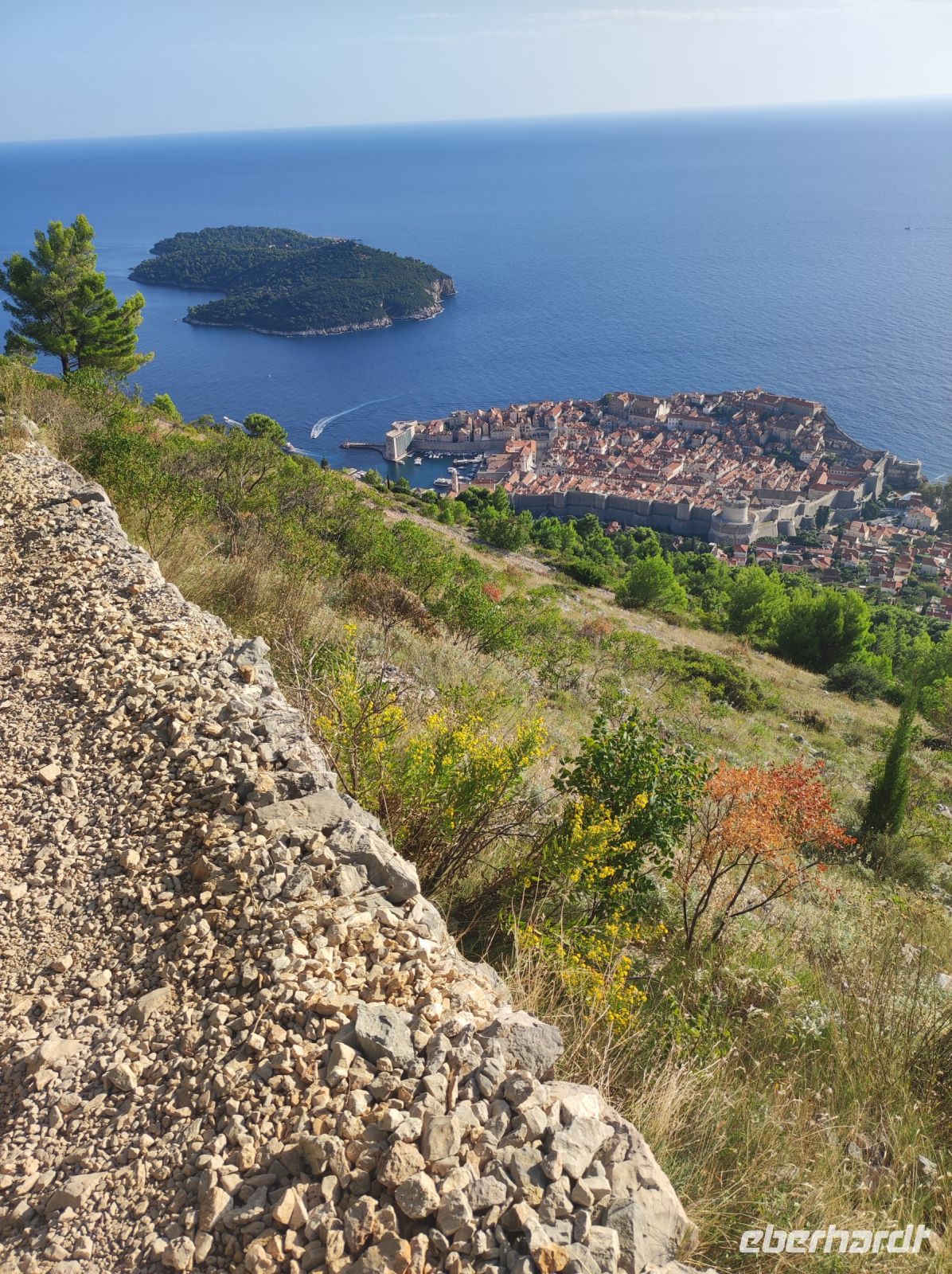 Nachdem alle ausgecheckt haben, fuhren wir Richtung Dubrovnik, aber bevor wir die Grenze passierten, machten wir noch mal Stopp in der Stadt Herceg-Novi. Nach einer kleinen Stadtführung und Kaffeepause verabschiedeten wir unsere Wanderreiseleiterin Mirha und fuhren zusammen mit unserem Busfahrer über die Grenze nach Dubrovnik. Wir erreichten unser Hotel gegen 13 Uhr, aber da wir alle noch lange nicht genug vom Wandern hatten organisierte ich noch mal eine kleine Wanderung. Wir fuhren alle gemeinsam vom Hotel aus mit dem Linienbus an das Altstadttor, spazierten gemütlich durch die Altstadt von Dubrovnik und fuhren dann mit der Seilbahn hoch auf den Hausberg der Stadt. Nach einem Fotostopp und den leider letzten Gipfelschnaps der Reise wanderten wir wieder gemeinsam in die Stadt und fuhren mit dem Linienbus zurück in das Hotel. Bevor wir alle zum Abendessen gingen trafen wir uns an der Bar, hier gab es für jeden ein Glas Sekt und wir stoßen gemeinsam auf die schönen Erlebnisse der Reise an. Das Abendessen in diesem riesigen Hotel war einfach fantastisch, man konnte gar nicht alles probieren, so viel Auswahl gab es. Am Abend fuhren einige Gäste zusammen mit mir noch mal in die Altstadt und wir erkundeten die historischen Gebäude innerhalb der hohen Stadtmauer von Dubrovnik.