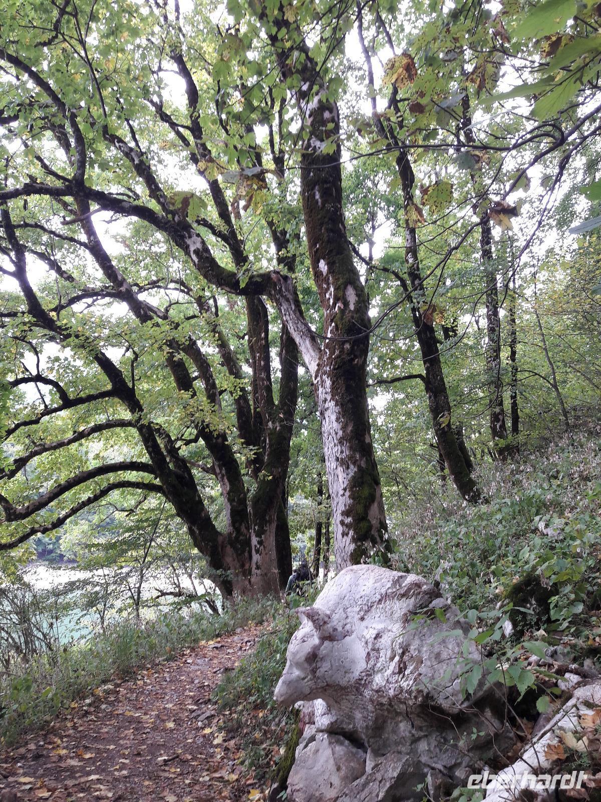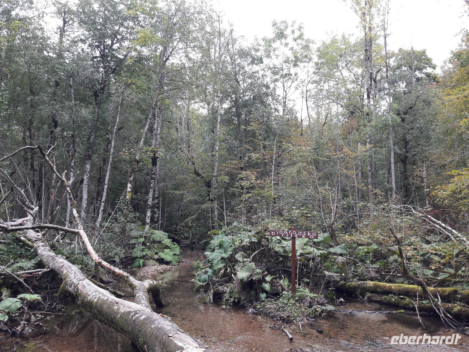 Wir genießen diese Fahrt, die so herrliche Einblicke in die Bergwelt für uns bereithält. Eine kleine Strecke führt uns auch über den Skutarisee, den größten See des Balkans. Nachdem wir Podgorica, die heutige Hauptstadt Montenegros passiert haben, erreichen wir Kolasin. Die Stadt, eine Gründung der Türken (17. Jahrhundert), ist heute ein sehr beliebter Wintersportort und Zentrum des Nationalparks „Biogradska gora" (es gibt noch vier weitere). Zuerst einmal lassen wir Kolasin schnell hinter uns - denn wir wollen wieder einen Stopp einlegen, dieses Mal im „Paradies". Wer kann da schon nein sagen - zumal es im Paradies auch paradiesische Getränke (Aufwärmer) gibt... Nach unserem kleinen „Seitensprung" fahren wir hinauf zum See Biogradsko. Doch „Oh weh - oh Schreck, das Wasser, das ist weg". Die außergewöhnlichen Temperaturen über den Sommer hinweg haben hier ganze Arbeit geleistet. Was wir sehen können, ist eigentlich nur noch eine Pfütze. Natürlich hätten wir gern gesehen, wie sich im See der einzigartige „ Urwald" widerspiegelt. Aber wir sehen es gelassen, schließlich haben wir doch genügend Phantasie! Noch bevor ich meine Füße in Bewegung setzen kann, ist der Großteil der Gruppe schon auf Umrundungstour. Es ist weiß Gott kein leichter Spaziergang, aber ein wunderschöner, ein unvergesslicher. Pech haben leider die Gäste, die aus gesundheitlichen Gründen die Tour nicht mit unternehmen können und gehofft hatten, sich bei einem kleinen Snack ein wenig erholen zu können. Denn das einzige Restaurant weit und breit hat ausgerechnet an diesem Tag seine Pforten für die nächsten Wochen geschlossen. Ursprünglich hatten wir vor, hier gemütlich zu pausieren und etwas zu schnabulieren - doch das war der berühmte Satz mit „X" und so machen wir uns schleunigst wieder auf den Weg nach Kolasin, wo in etwa die Hälfte der Gäste ein gemütliches, landestypisches Restaurant findet und sich ordentlich stärken kann.