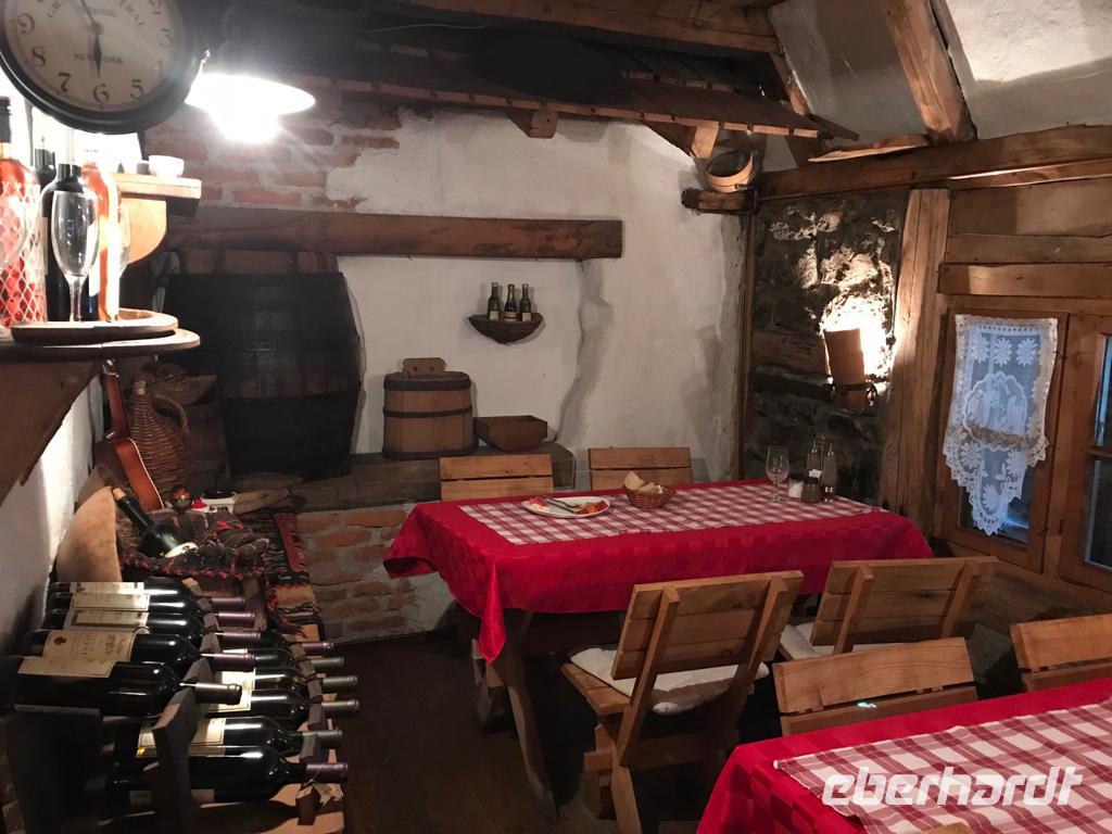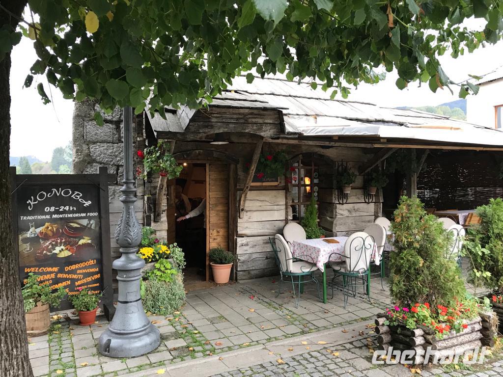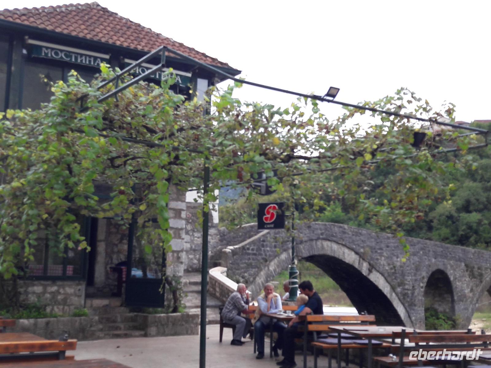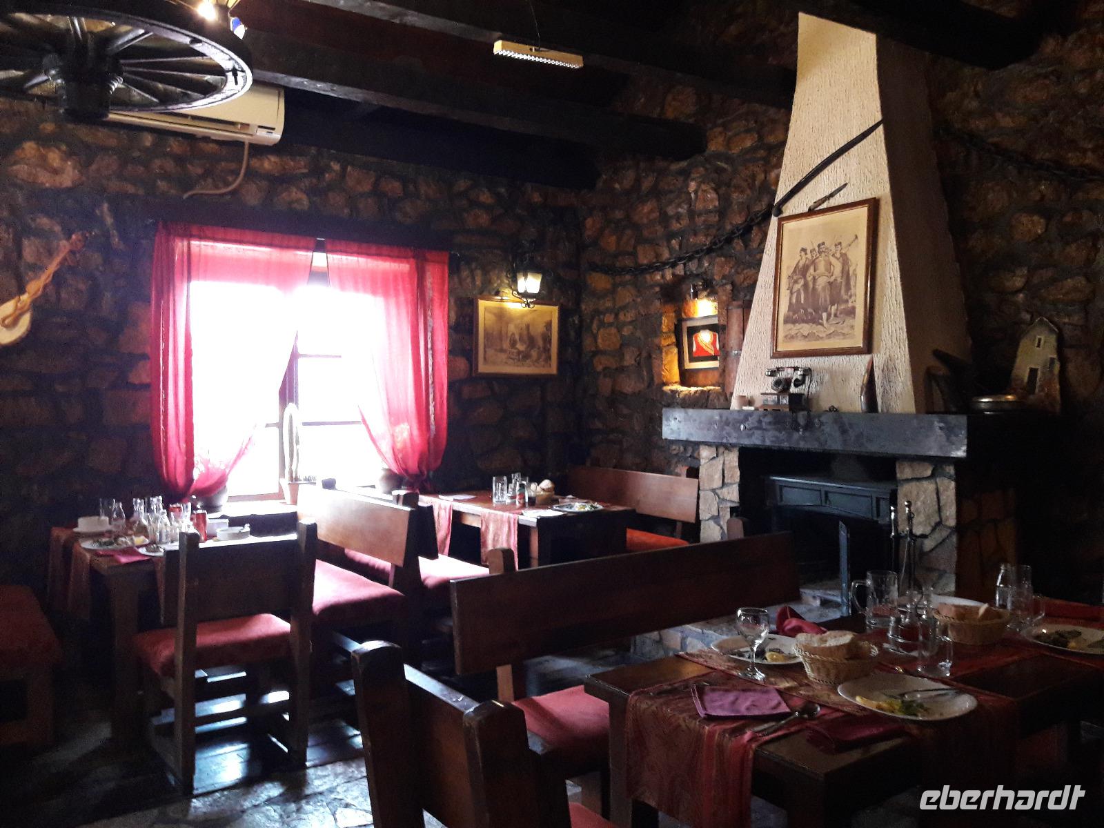 Nachdem wir uns die wunderschönen Fresken angeschaut und uns mit der Geschichte des Klosters vertraut gemacht haben, genießen wir noch einmal den sagenhaften Blick in die Ebene. Aus dem „ Himmel" führt uns die Reise mit den Minibussen wieder zurück auf die Erde, konkret nach Bogetici, wo wir es uns in einen der Restaurants recht gut gehen lassen.