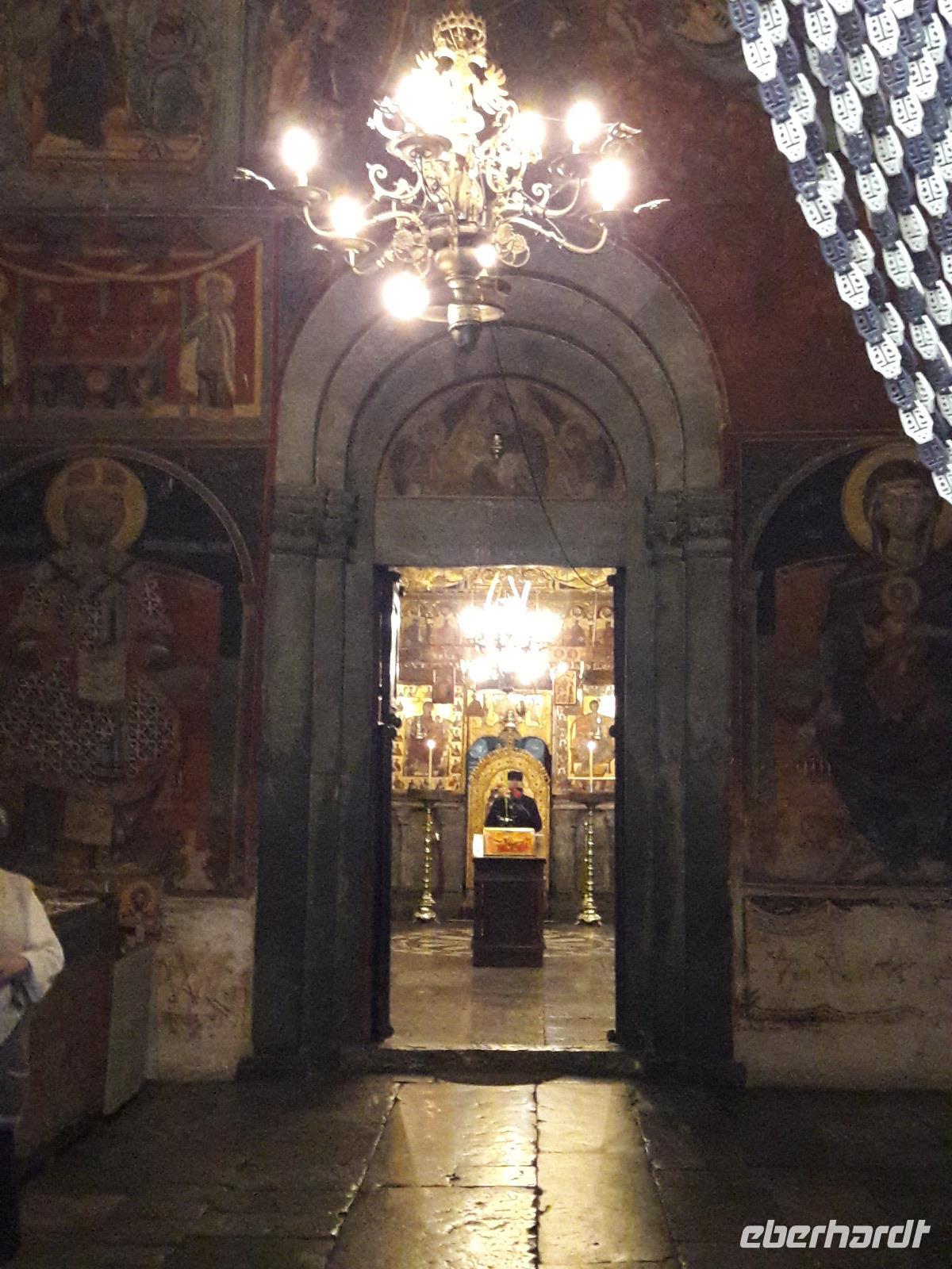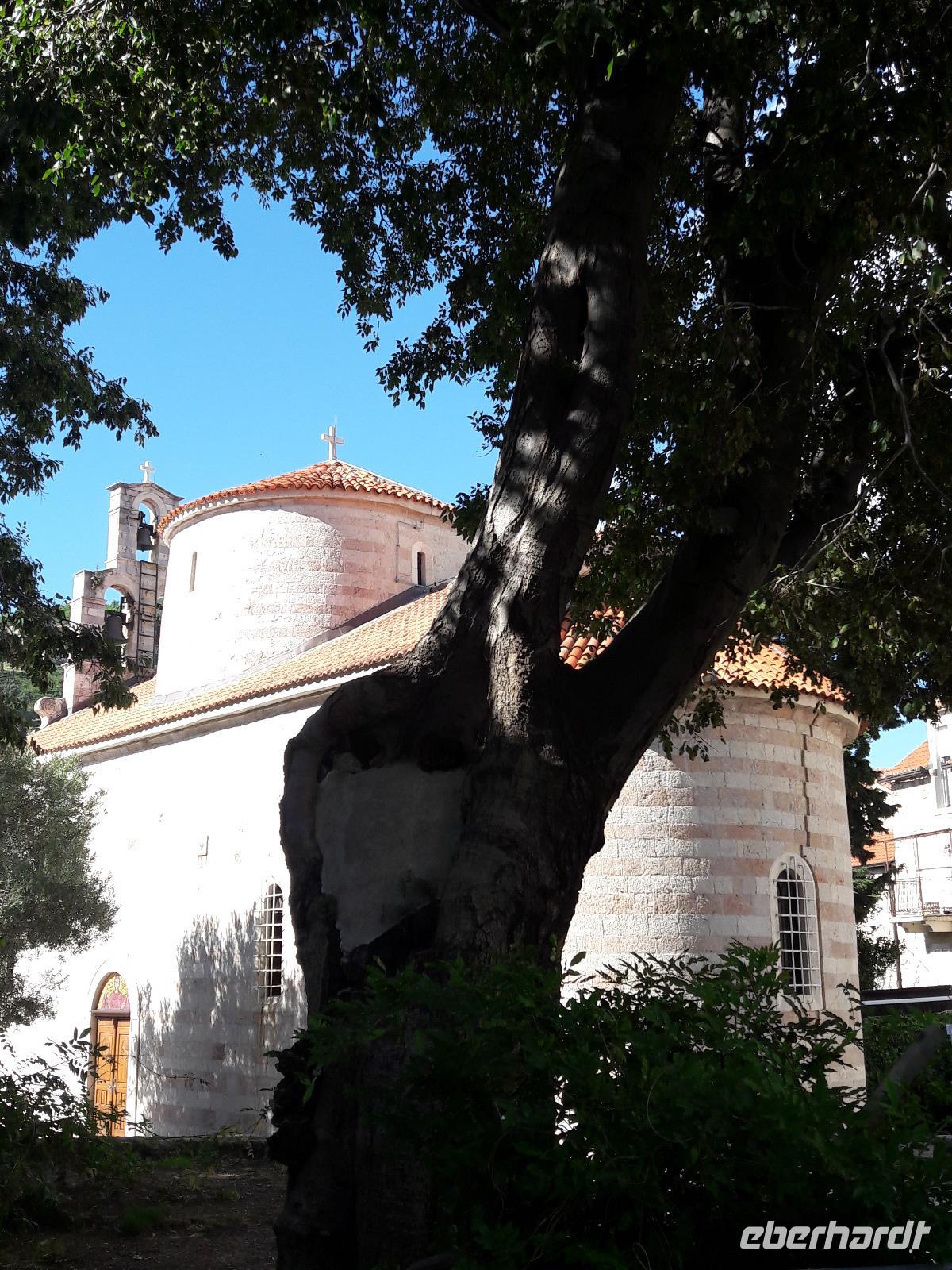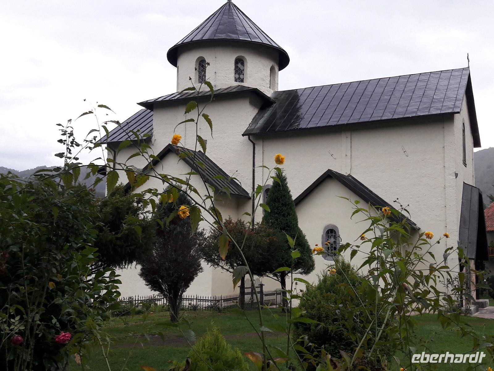Auf dem Weg von Kolasin nach Podgorica machen wir noch einmal Halt und besuchen das reizvoll gelegene, aus dem 13. Jahrhundert stammende, „Kloster Moraca". Es ist ein wahres Kleinod, so hat z. B. der relativ kleine Innenraum - mit wunderschönen Fresken versehen (die Freske „Der Rabe füttert den Propheten Elias in der Wüste ist ein Meisterstück der mittelalterlichen Malerei) - einen sehr wertvollen Ikonastas.