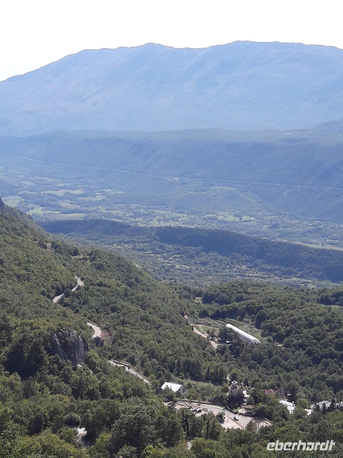 In einer atemberaubenden Fahrt erreichen wir das Kloster und wir stellen fest, der Berg Ostrog (Ostrog bedeutet scharfkantiger Fels) und das Kloster sind eins, es schmiegt sich nicht nur an den Felsen, sondern es ist mit ihm verwachsen.