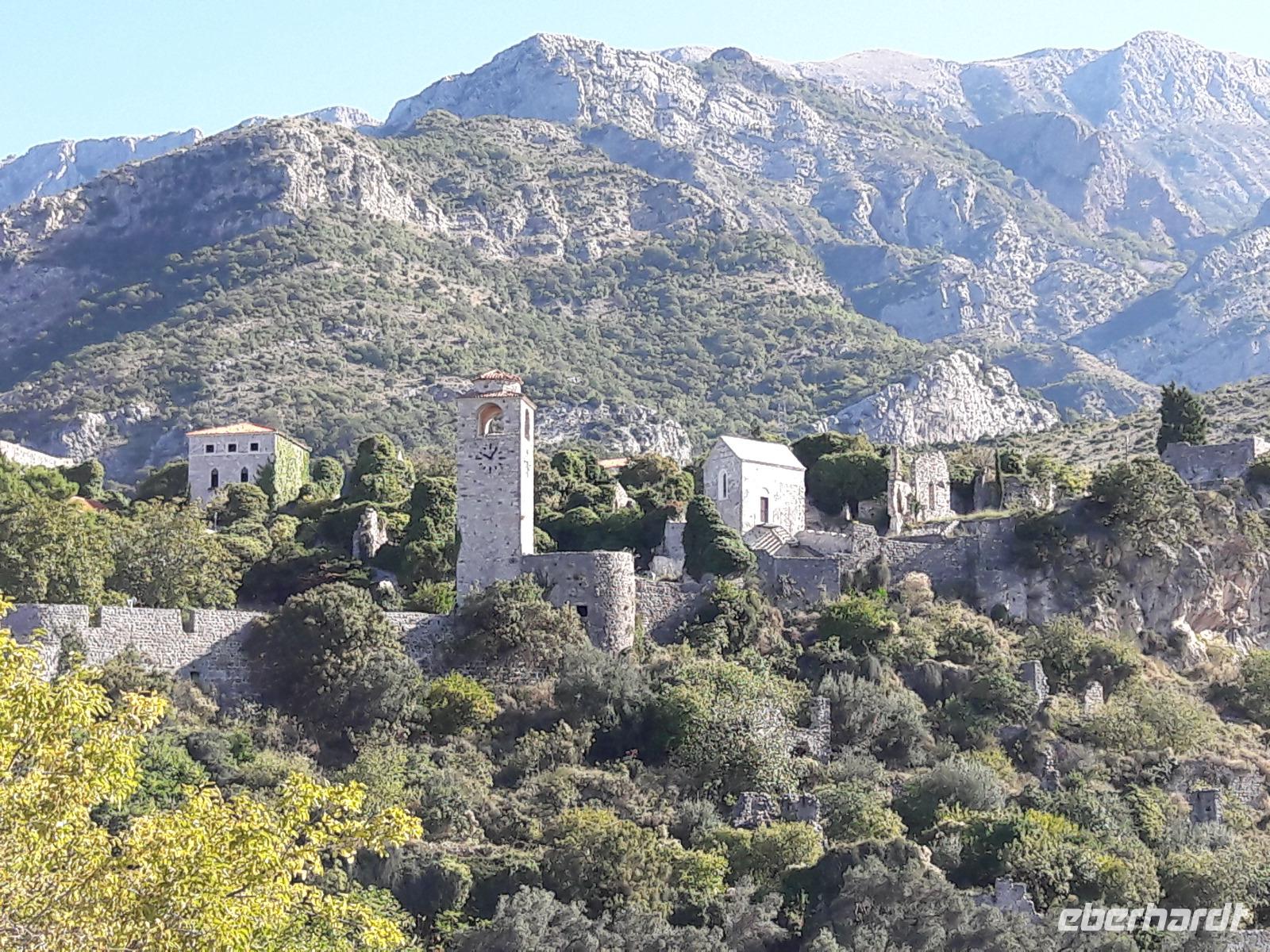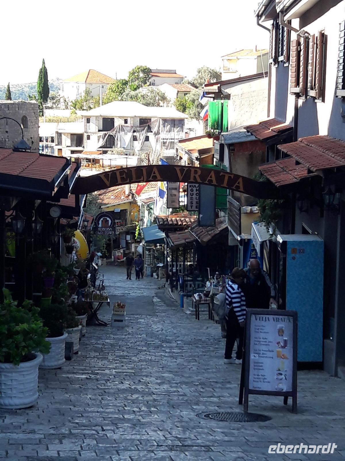 Wir machen uns auf den Weg, heute in Richtung Süden. Nach einer knappen Stunde Fahrt entlang der Küste mit herrlichen Einblicken in die verschiedenen Buchten, erreichen wir unser Ziel und Emas Heimatort, die Stadt Bar. Sie ist die jüngste Stadt Montenegros, mit dem größten Hafen an der montenegrinischen Adriaküste. Die junge Stadt Bar - in den letzten 40 Jahren entstanden - ist, wie so viele Städte gleichen Alters - eine relativ gesichtslose Stadt. Deshalb machen wir uns auch gleich auf nach Stari Bar am Fuße des Berges Rumija, ca. drei Kilometer vom Meer entfernt. Leider fiel auch diese Stadt dem katastrophalen Erdbeben von 1979 zum Opfer, geblieben ist eine, von Mauern umgebene, Ruinenstadt, nicht wieder aufgebaut wie Budva, Kotor oder Ulcinj. Sehr interessant und schön (versetzt sie uns doch in eine etwas andere Welt) ist die kleine, orientalisch wirkende Straße, die uns in die Altstadt führt. Hier möchte man einfach nur schauen, genießen und Angebotenes (z.B. die „chinesische Jujube", die kleine braune Frucht mit Kern - den Datteln ähnelnd) verkosten. Doch bevor wir das machen, lauschen wir Emas geschichtlichen Ausführungen zur Altstadt. Und sie macht es gut. Sie versteht es, uns ein Bild dieser einst sehr schönen Stadt, die lange von den Venezianern und Osmanen besetzt war und die auch öfters vor Piratenüberfällen zittern musste, zu vermitteln. Erst Fürst Nikola I.