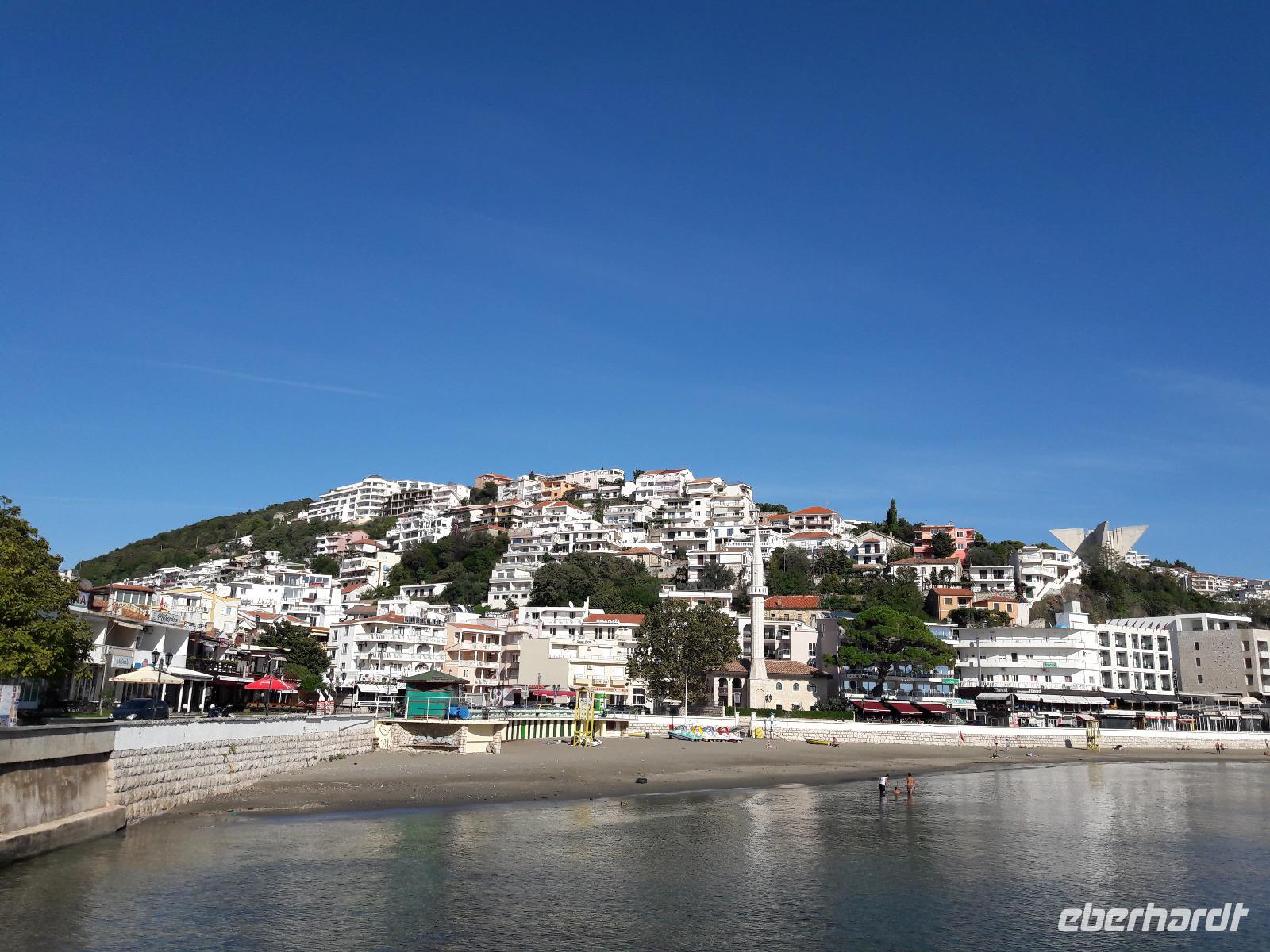 befreite Bar und verleibte sie seinem Fürstentum ein (wurde 1878 auf dem Berliner Kongress bestätigt bzw. anerkannt). Damit hatte er den gewünschten Zugang zum Meer. In Stari Bar wären wir gern noch ein wenig geblieben, aber die Zeit drängt und so begeben wir uns weiter in Richtung Süden. Anlaufpunkt ist die Insel Ada Bojana, entstanden auf den Resten eines untergegangenen Schiffes (so sagt es die Legende). Gegenüber der Insel reiht sich ein Fischrestaurant an das andere und in einem davon werden wir willkommen geheißen. Als Entschädigung für den Hotelwechsel erwartet uns ein wohlschmeckendes Menü. Danach haben wir noch etwas Zeit für einen Spaziergang über die Brücke zur Insel. Aus Zeitgründen - und nur deshalb -verzichten wir auf den Besuch des FKK-Strandes. Die Insel, die vom Fluss Bojana umschlungen wird, ist auf der uns zugewandten Seite montenegrinisch, auf der anderen Seite albanisch. Wo genau die Grenze verläuft, das weiß man nicht. Der Fluß Bojana (deutsch: Buna) ist übrigens zugleich Zufluss und Abfluss des Skutarisees (Hauptzufluss ist allerdings die Moraca). Auf unserer Fahrt nach Ulcinj, sie ist die südlichste Stadt Montenegros, fahren wir parallel zum längsten und schönsten Strand des Landes, ca.12 km lang von Ulcinj bis zur Insel Ada Bojana reichend. Leider bleibt uns ein Blick auf den „Großen Strand" verwehrt, stattdessen fahren wir im Hinterland durch das neue, touristische Viertel - Hotel an Hotel, touristische Siedlung an Siedlung, der Bauboom ist gewaltig und ich bin mir sicher, ein jeder von uns hat sofort nur einen Gedanken... niemals den Urlaub während der Hochsaison hier an der Küste zu verbringen!!!" Nach einer kurzen Busfahrt treffen wir in der ehemaligen Piratenstadt Ulcinj, gelegen am südlichsten Teil der montenegrinischen Adriaküste, ein. Wir spazieren entlang des „Kleinen Strandes" (auch Schwarzer Strand genannt) hinüber zur Altstadt, dem ehemaligen „Piratennest", heute Hotelstadt und in Privatbesitz. Auch Ulcinj (die Stadt wird heute vorrangig von Albanern bewohnt) war Opfer des schweren Erdbebens, ist aber im Gegensatz zu Stari Bar wieder aufgebaut worden. Der Weg in die Altstadt ist ziemlich beschwerlich und nicht für jeden von uns gut begehbar. Doch „Hut ab" vor all denen, die sich über das sehr, sehr holprige Pflaster bis zum Sklavenmarkt hochgearbeitet haben. Man sagt, dass, nachdem die Venezianer die Stadt verlassen hatten, die Türken die Stadt erobert haben. Sie sollen hier u.a. ca. 400 Piraten aus Tunesien und Algerien angesiedelt haben. Diese schufen eine Flotte, welche in der Adria Angst und Schrecken verbreitete. Der Legende nach soll auch der berühmte Schriftsteller Miguel de Cervantes hier ganze fünf Jahre festgehalten worden sein (die Piraten verkauften ihre „Beute" meistens nicht auf dem Markt, sondern forderten Lösegeld). Zum Glück fallen wir nicht in die Hände der Piraten und müssen auf einen „Erlöser" warten, sondern treffen wohlbehalten - pünktlich zum Abendessen - wieder in unserem Hotel ein. Nach dem Abendessen fallen die meisten nur noch todmüde in ihre Betten.