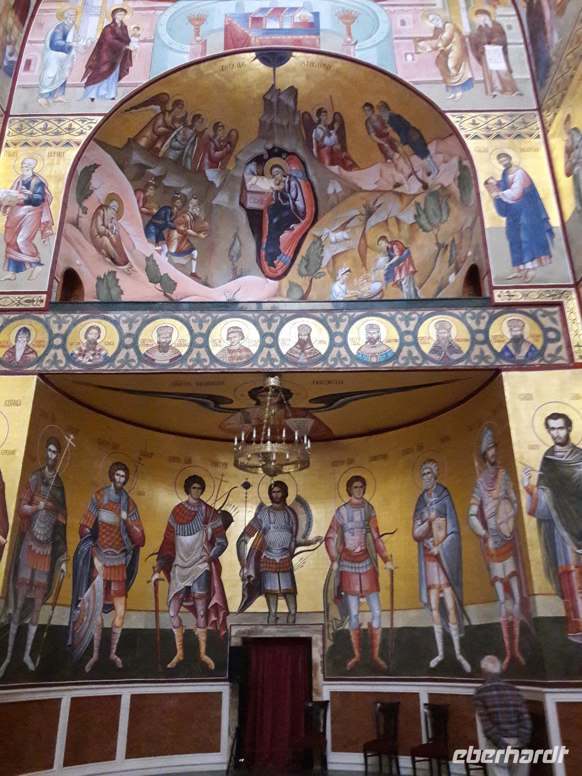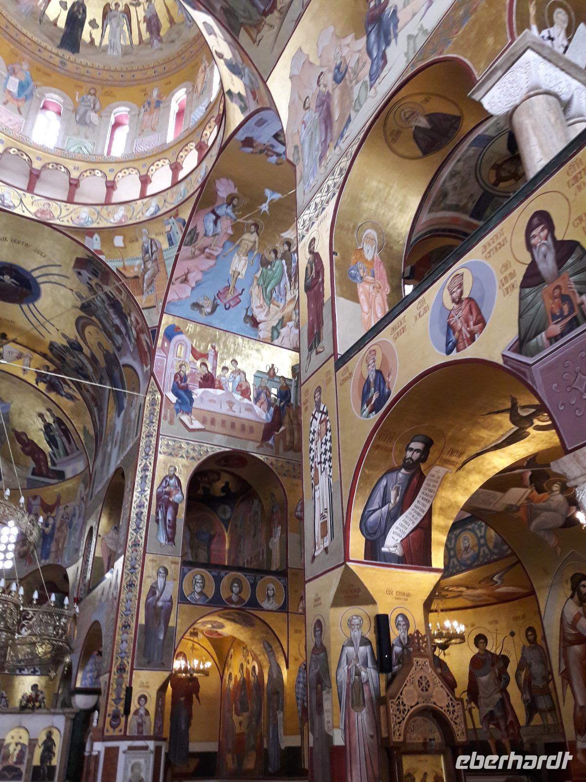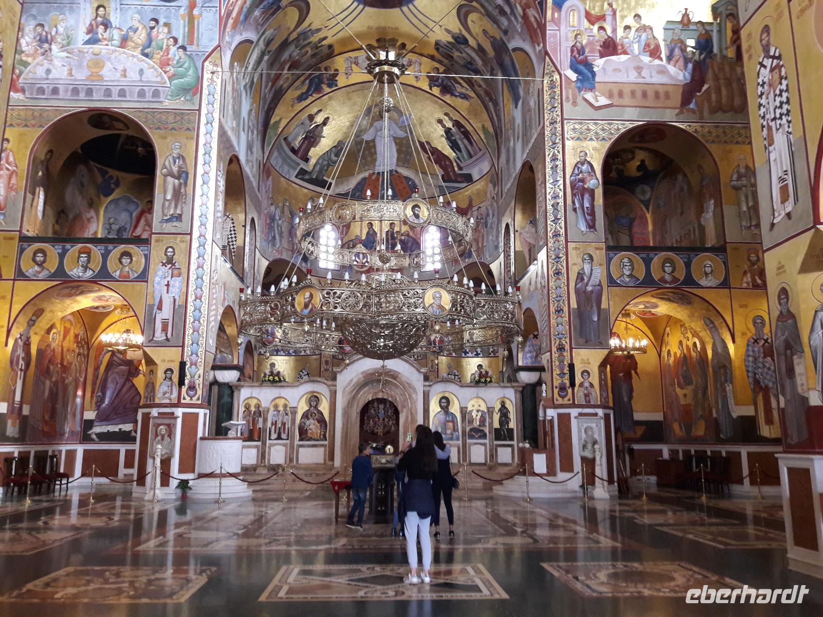 Heute ist sie eine moderne, doch wie ich finde eine relativ gesichtslose Stadt, die kaum noch Sehenswürdigkeiten vorzuweisen hat. Aber sie ist heute das wirtschaftliche, politische und kulturelle Zentrum und ganz wichtig: d e r Arbeitgeber in Montenegro. Wir machen eine kleine Spritztour durch die, an fünf Flüssen liegende Stadt und legen - zu unser aller Überraschung - einen Stopp ein. Wir besichtigen die im Jahr 2013 fertiggestellte serbisch-orthodoxe Auferstehungskathedrale - und es verschlägt uns glatt den Atem bzw. entlockt dem Einen oder Anderen beim Betreten „nur" ein Wort: W O W. Tatsächlich, was wir da zu sehen bekommen, ist völlig unerwartet und an Ausstattung und Prunk kaum zu überbieten.