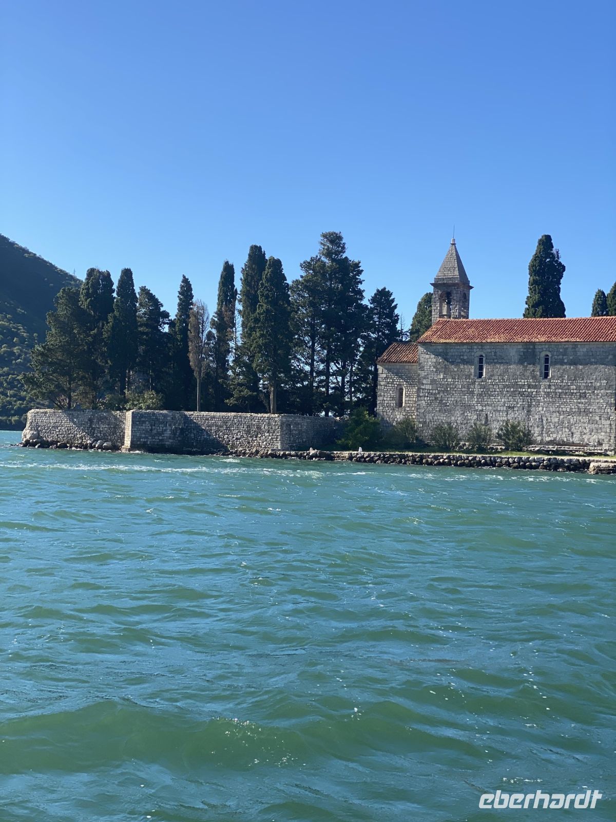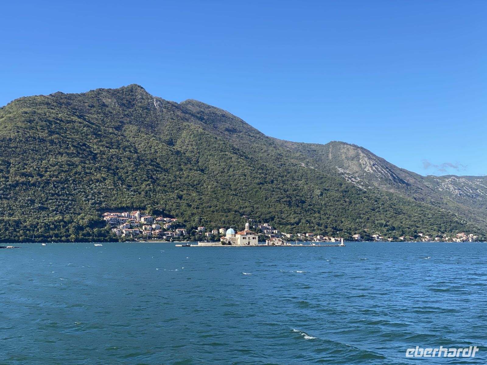 8:15 Uhr starten wir zu einem interessanten Tag und beginnen ihn mit einem Besuch in Perast. Diese Stadt steht komplett unter Denkmalschutz und die Gebäude erinnern an die Zeit der Venezianer. Die Stadt wurde reich durch den Handel und genoss viele Privilegien. Mit dem Fall Venedigs war auch die Blütezeit von Perast vorüber, aber viele Kapitäne und Seeleute nahmen hier ihren Wohnsitz und bauten ansehnliche Häuser. Die Stadt ist auch Ausgangspunkt für Bootstouren und wir unternehmen eine und fahren zu einer künstlichen Insel. Über eine lange Zeit schütteten die Seeleute diese Insel auf, sie warfen Steine ins Wasser und versenkten Schiffe. Endlich reichte der Platz und es wurde 1452 die Kirche Gospa od Skrpjela (Frau vom Felsen) erbaut, im 17. Jahrhundert erweitert und innen reich ausgestaltet. Viele Gläubige stifteten Devotionalien in Gold oder Silber zum Dank für die Heilung von Krankheiten oder die Erfüllung anderer Wünsche.