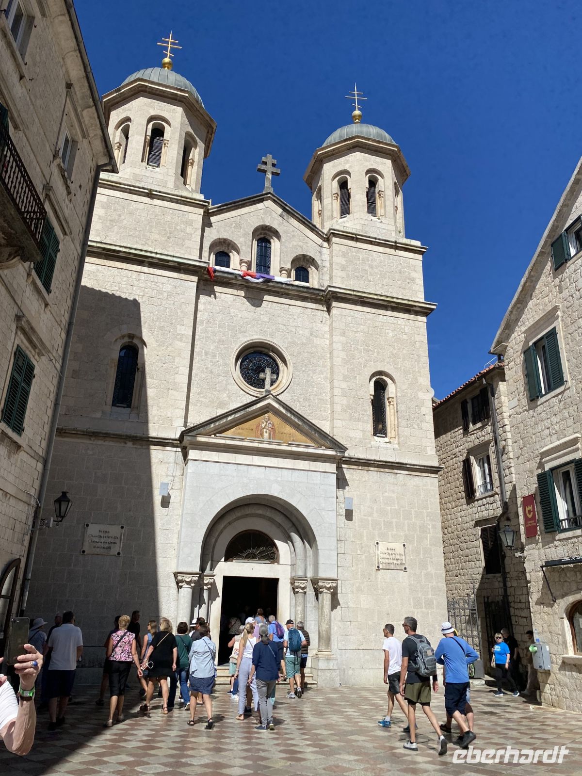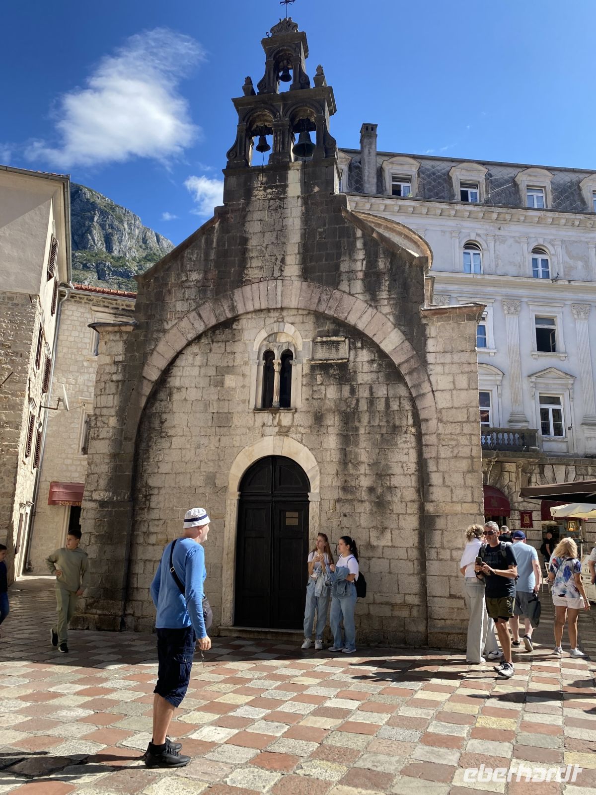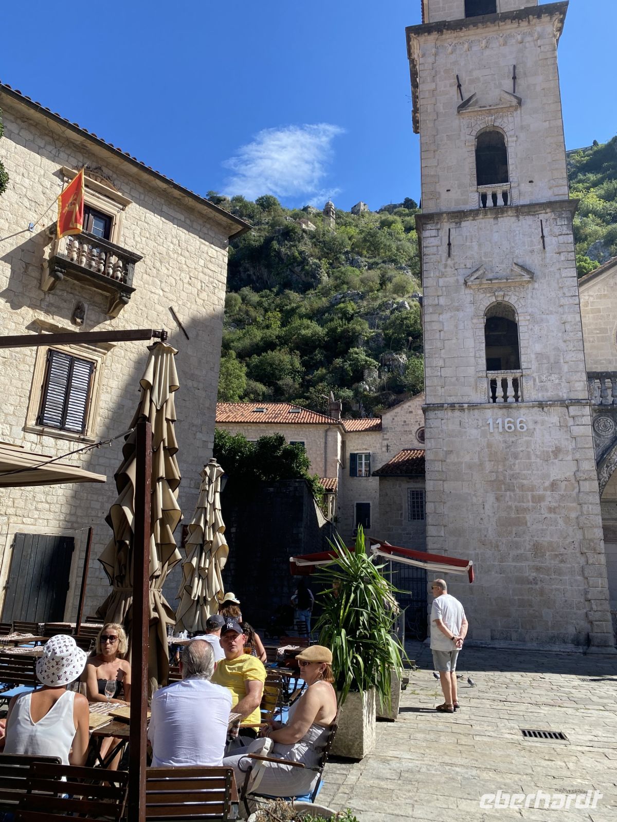 Unser zweiter Zielpunkt ist die Stadt Kotor, Stadt und Bucht gehören seit 1979 zum UNESCO-Welterbe. Und das sehr zu Recht, wie wir beim Stadtrundgang feststellen. Wir betreten die Stadt durch das große Haupttor und stehen auf dem Waffenplatz, sehen den etwas schiefen Uhrturm, den Pranger und die Paläste der Patrizierfamilien. Von der Galerie der St. Trifun-Kirche blicken wir hinab auf das Panorama der Altstadt mit ihren schmalen Gassen und den gemütlichen Plätzen. Eine der ältesten Kirchen ist die kleine St. Lukas -Kirche aus dem 12. Jahrhundert, sie war ursprünglich katholisch, ist jetzt orthodox, lange Zeit teilten sich beide Konfessionen die Kirche in offenbar friedlicher Koexistenz.