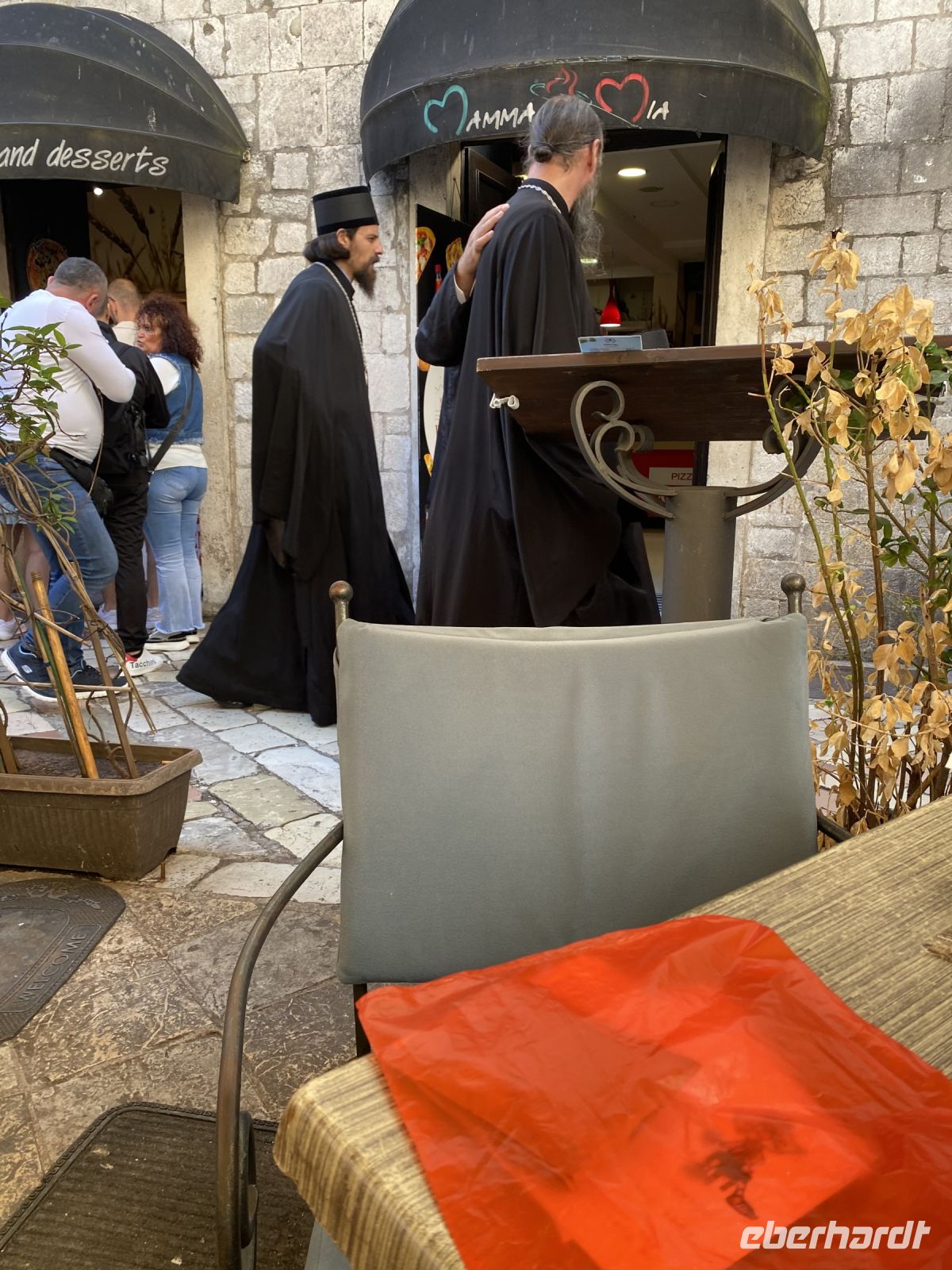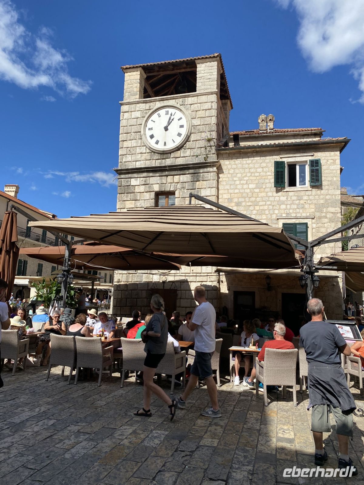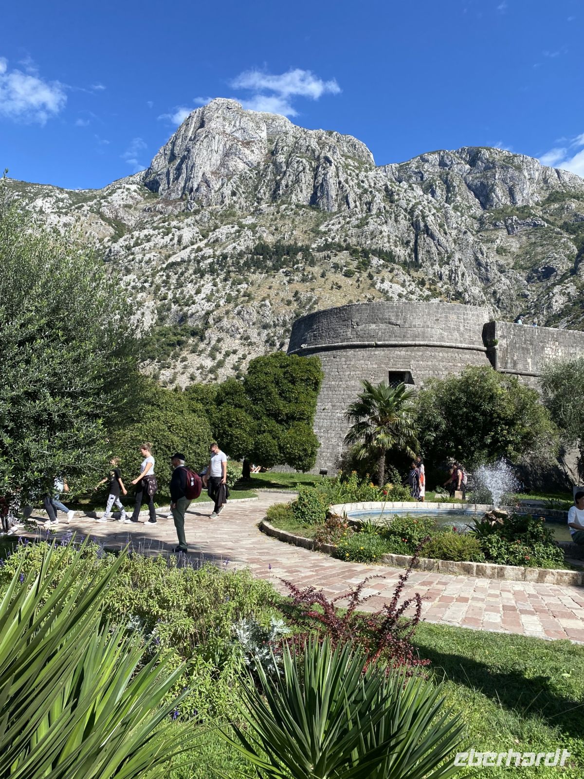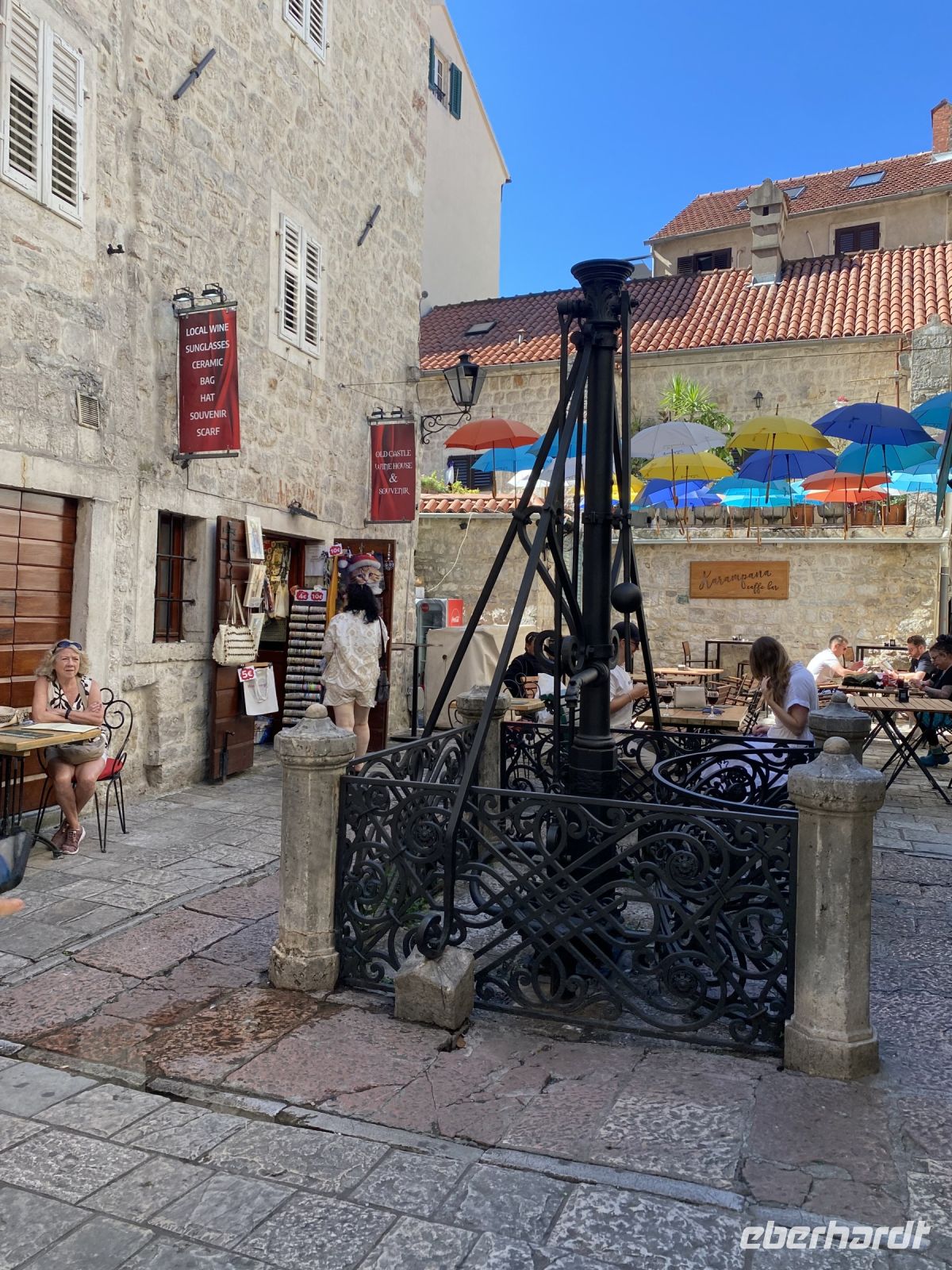 Unser zweiter Zielpunkt ist die Stadt Kotor, Stadt und Bucht gehören seit 1979 zum UNESCO-Welterbe. Und das sehr zu Recht, wie wir beim Stadtrundgang feststellen. Wir betreten die Stadt durch das große Haupttor und stehen auf dem Waffenplatz, sehen den etwas schiefen Uhrturm, den Pranger und die Paläste der Patrizierfamilien. Von der Galerie der St. Trifun-Kirche blicken wir hinab auf das Panorama der Altstadt mit ihren schmalen Gassen und den gemütlichen Plätzen. Eine der ältesten Kirchen ist die kleine St. Lukas -Kirche aus dem 12. Jahrhundert, sie war ursprünglich katholisch, ist jetzt orthodox, lange Zeit teilten sich beide Konfessionen die Kirche in offenbar friedlicher Koexistenz.