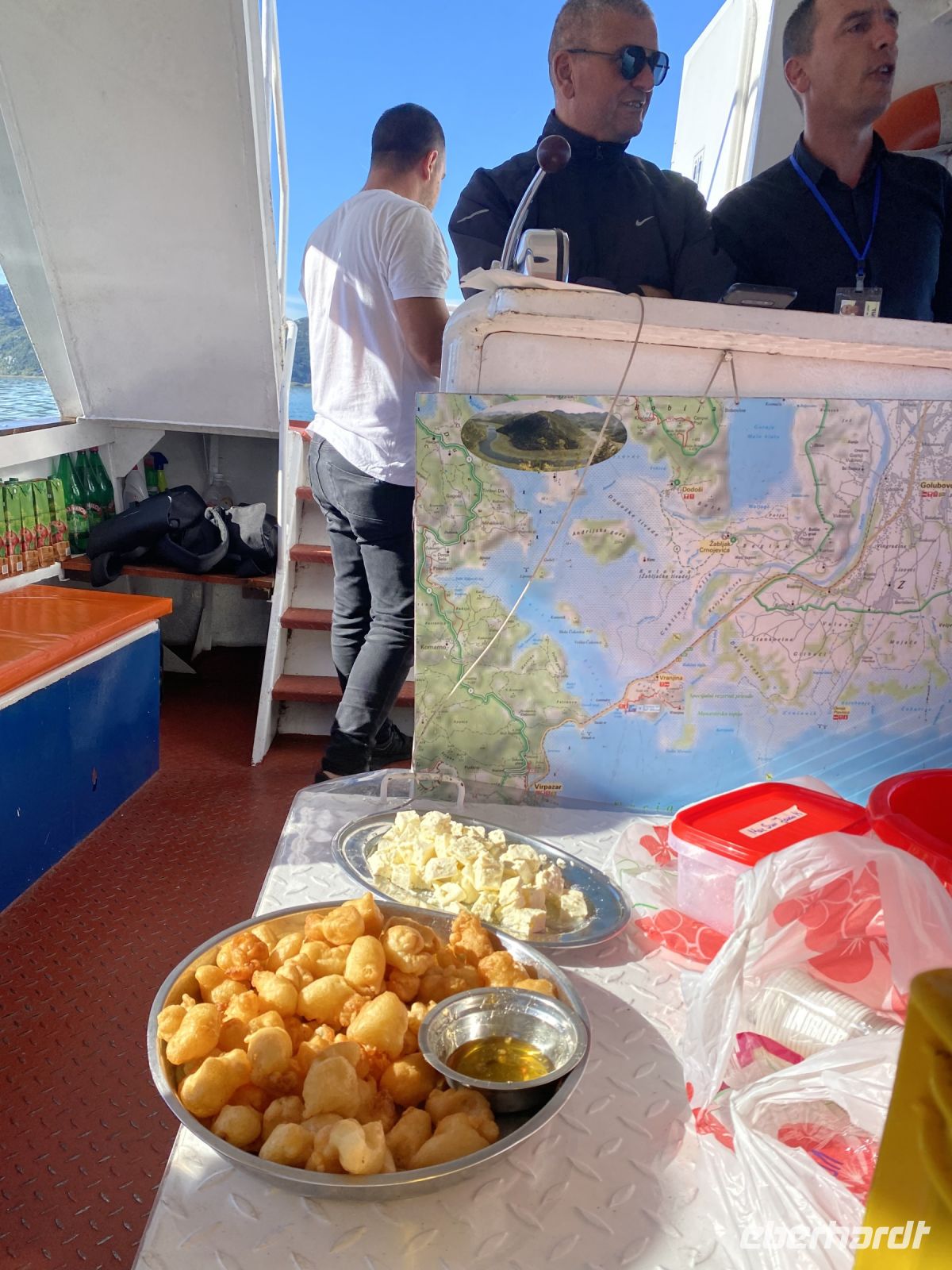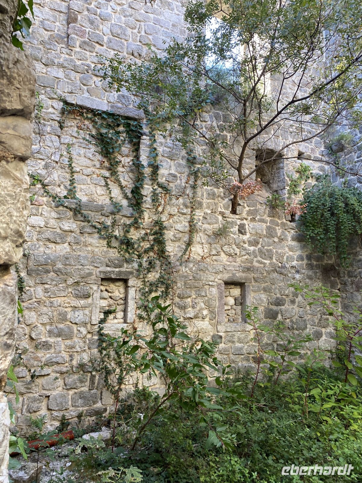 Viele Fische und Wasservögel sind hier beheimatet, wir sehen im wesentlichen Kormorane und Fischreiher. Über weite Strecken bedecken Seerosen die Oberfläche. Während uns der Kapitän mit Kräppelchen mit Honig und Käse sowie mit Wein und Schnaps bewirtet, fahren wir am montenegrinischen Alcatraz vorbei. Auf der Insel Grmozur befand sich ursprünglich eine türkische Festung, die nach dem Abzug der Osmanen als Gefängnis diente. Jetzt steht alles leer und viele Vögel nutzen die Ruine als Brutplatz. Nach knapp 2 Stunden ist unsere Fahrt leider zu Ende und wir haben wieder festen Boden unter den Füßen.