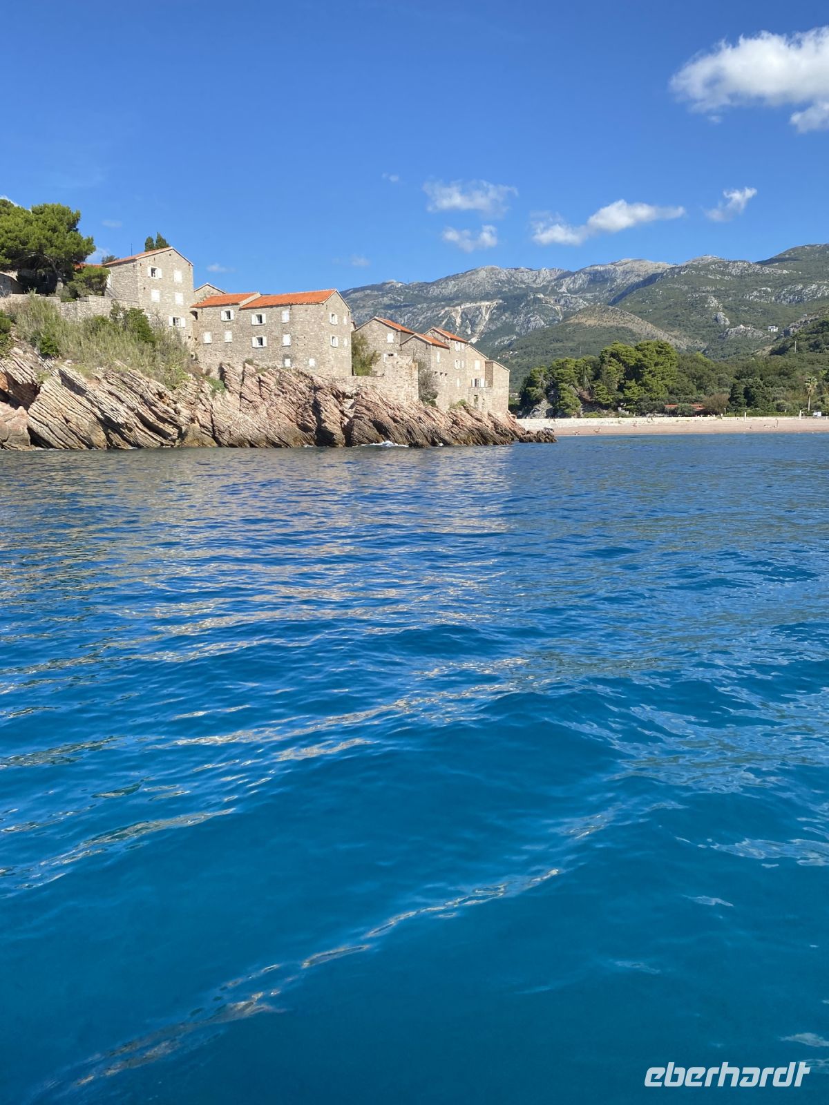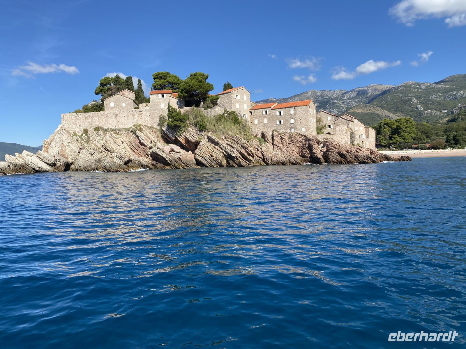 Dies wird ein entspannter Tag, 10:00 Uhr starten wir zu einer Bootsfahrt durch die Bucht von Budva, sehen die Hotelinsel Sv. Stefan vom Wasser aus. Im zur Zeit geschlossenen Hotel logierten früher berühmte Persönlichkeiten wie Sophia Loren, Sylvester Stallone, Boris Becker, Claudia Schiffer u.a. Bis zum Jahr 1950 war die Insel ein Fischerdorf, bevor sie ein exklusives Hoteldorf wurde.