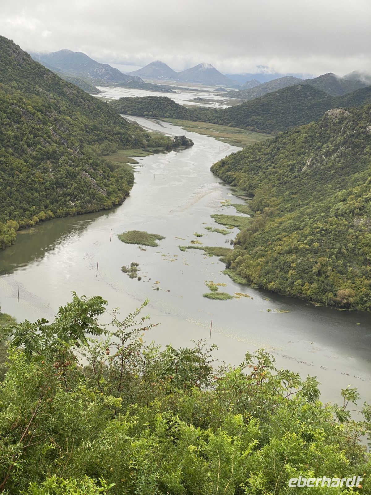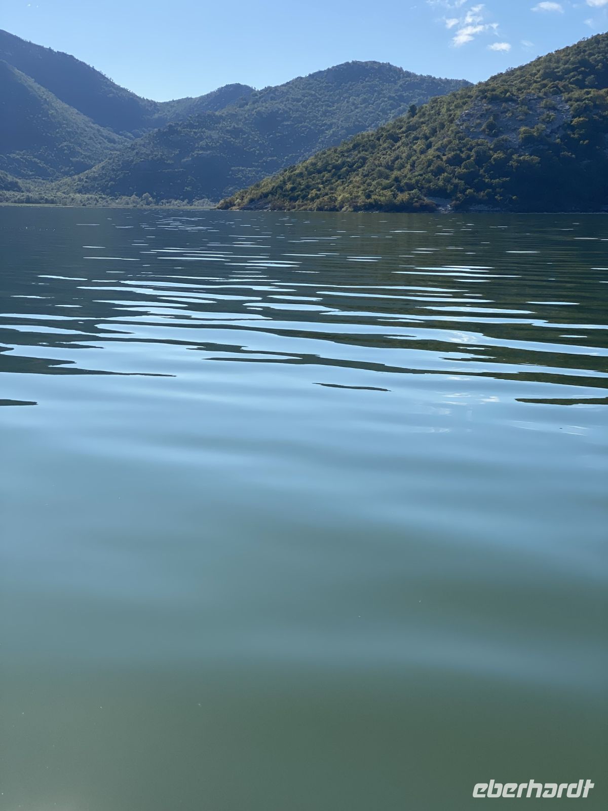 Danach heißt es nochmals 27 Serpentinen überstehen und nach einer Stärkungspause am unteren Parkplatz erreichen wir nach kurzer Fahrt Virpazar am Skutarisee. Von hier aus fahren wir mit dem Boot auf den Skutarisee, der mit 350 km² der größte See der Balkanhalbinsel ist. Bei starken Niederschlägen kann sich die Oberfläche bis auf 500 km² ausdehnen. Durch den See verläuft die Grenze zwischen Albanien und Montenegro, aber zu Konflikten ist es bisher noch nie gekommen.