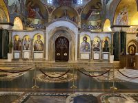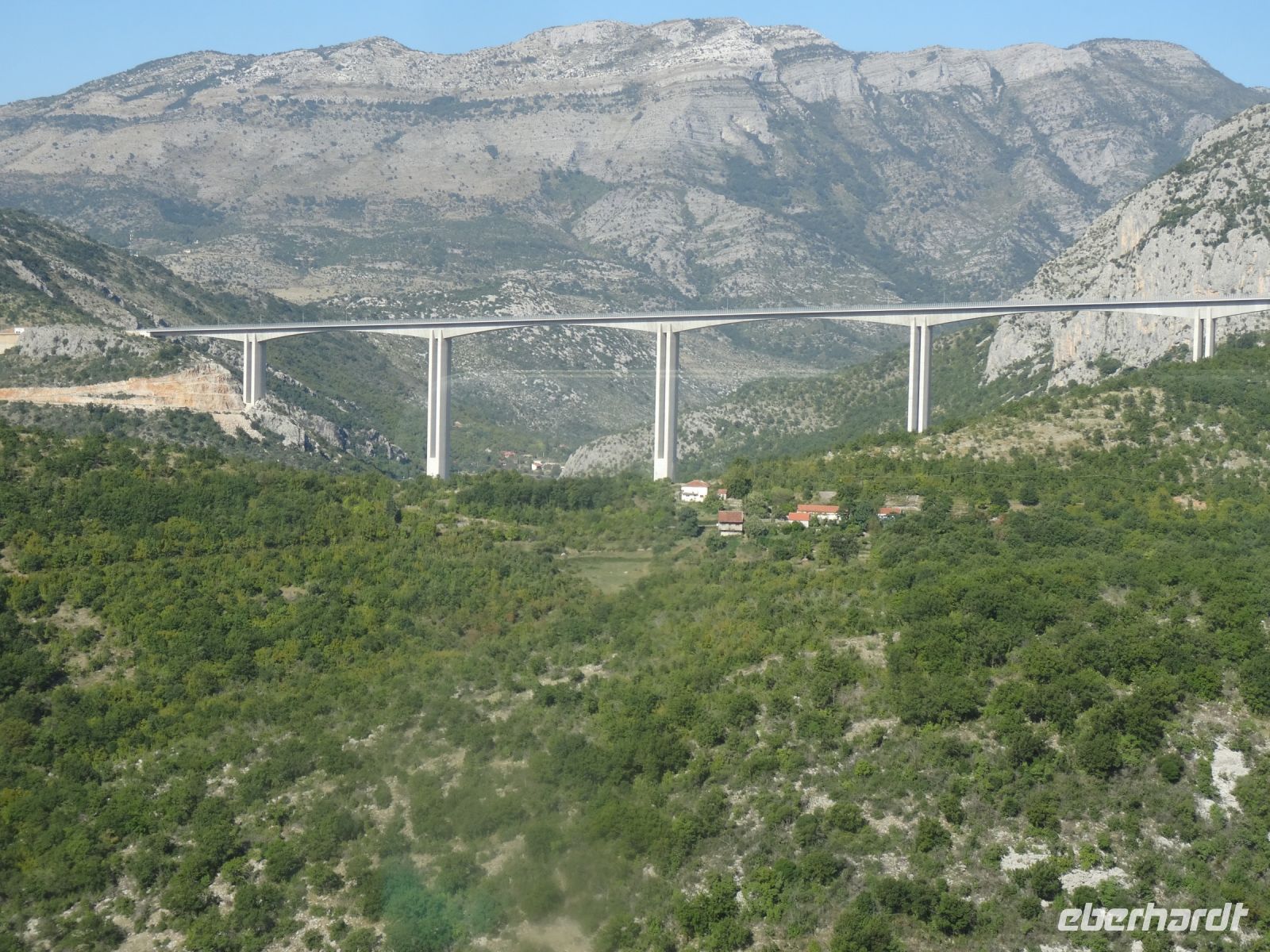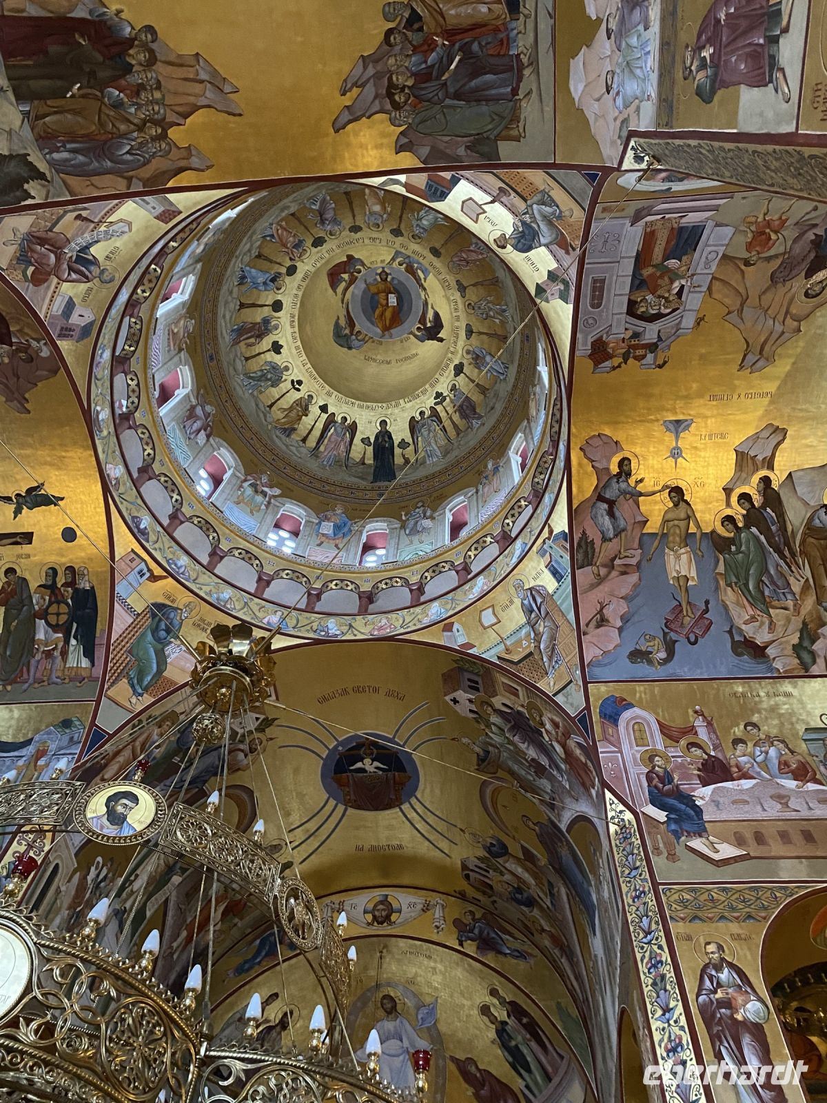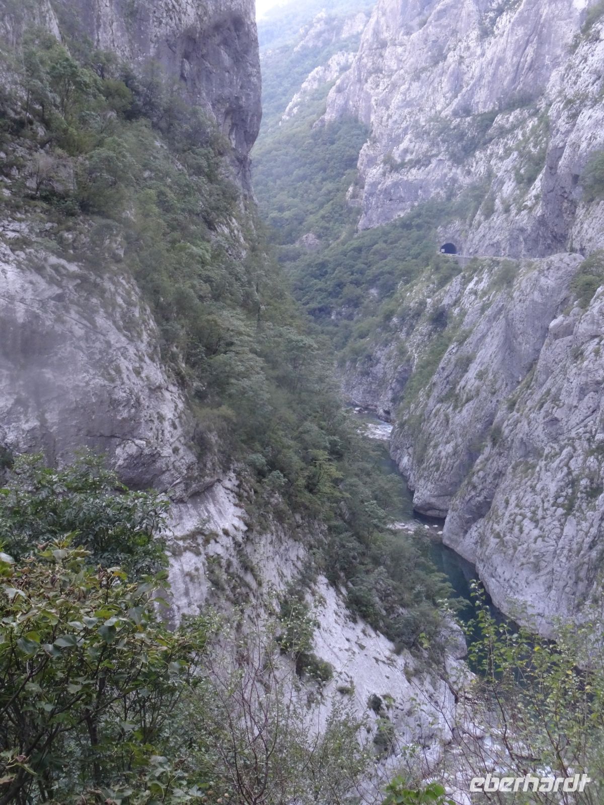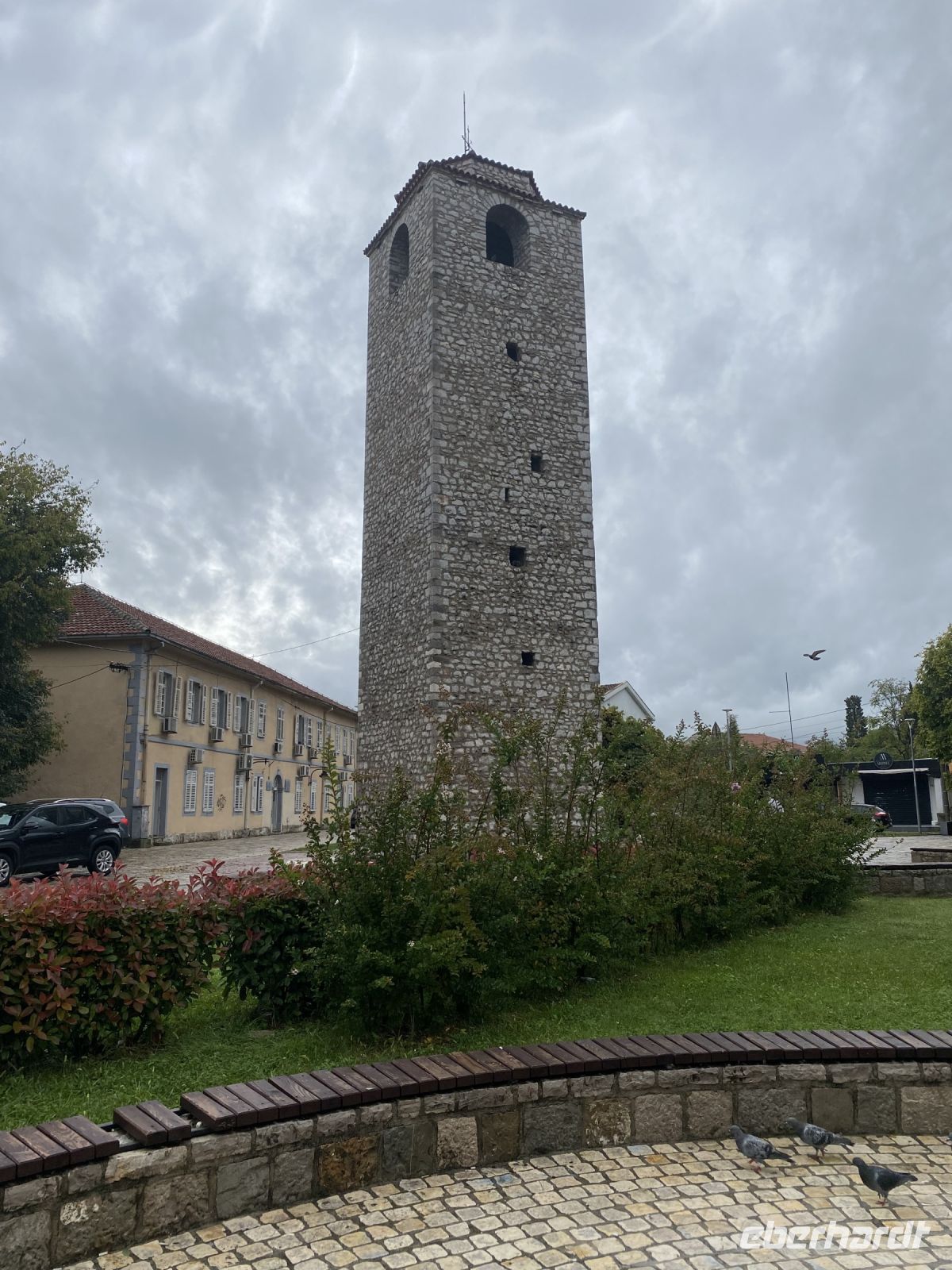 Das Wetter zeigt sich noch immer nicht von seiner besten Seite, wegen der Niederschläge ist der Fluss Crnojevica angeschwollen und über die Ufer getreten, so bleiben wir etwas oberhalb mit dem Bus stehen und sehen vom Restaurant aus die beeindruckende Flussschleife zwischen den Bergen. Danach zollen wir der Hauptstadt unsere Reverenz. Etwa die Hälfte der Einwohner Montenegros (620.000) lebt in der Hauptstadt und dem näheren Umland. Die Stadt liegt am Zusammenfluss von Moraca und Ribnica an einem wichtigen Handelsweg von der Küste ins Hinterland. Die Osmanen eroberten sie 1474 und bauten zahlreiche Moscheen und Wohnhäuser und Brücken. Nach dem Abzug der Türken wurde die Stadt ein Wirtschaftszentrum Montenegros. Im II. Weltkrieg stark zerstört, erhielt die Stadt nach dem Krieg ein sozialistisches Gepräge und wurde in Titograd umbenannt. Seit 1992 heißt sie wieder Podgorica und erhielt nach und nach ein moderneres Aussehen. Das neue Wahrzeichen ist die Milleniumsbrücke (173 m lang und 57 m hoch). Wir fahren erst ein wenig durch die Stadt mit ihren breiten Straßen und neuen Gebäuden, dann essen wir in einem kleinen Restaurant nahe der alten Stadtmauer zu Mittag. Natürlich fahren wir noch zur großen Auferstehungskirche. Mit ihrem Bau wurde 1992 begonnen, 2013 wurde sie geweiht, ihre Kuppel ist 36 m hoch, zahlreiche Mosaike erzählen die Geschichte Montenegros. Die drei Glockentürme besitzen zusammen 17 Glocken, eine davon ist mit 11 t die schwerste der Balkanstaaten.