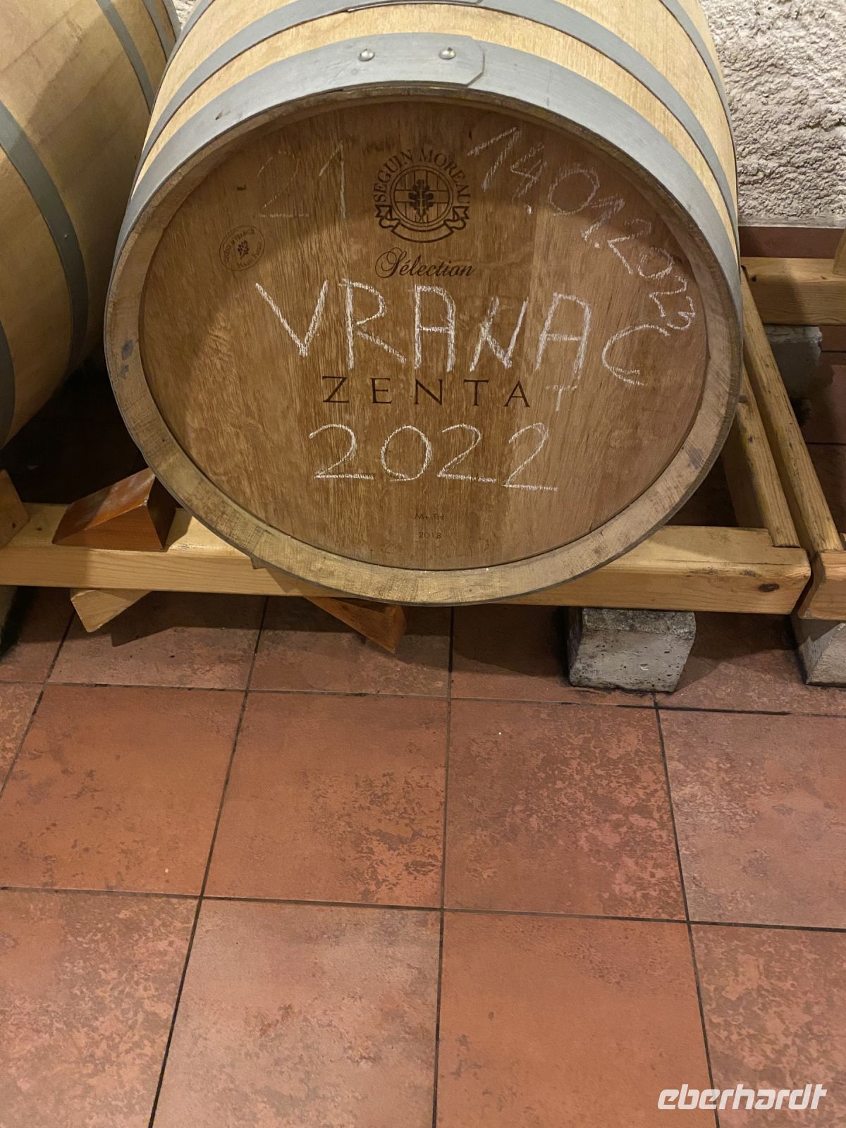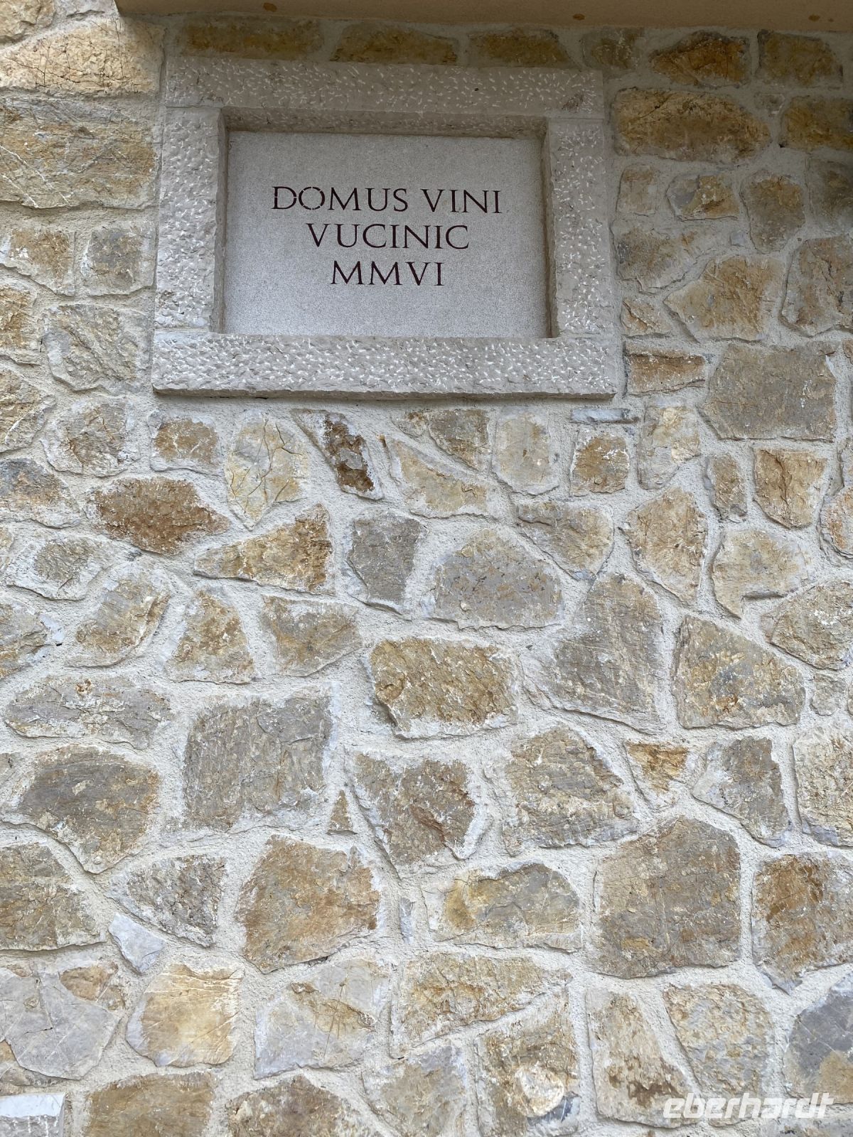 Nun wird es Zeit für einen Programmwechsel und wir fahren in das nahegelegene Weingut Vucinic. Die Besitzerin führt uns durch ihren Weinkeller und erklärt die Besonderheiten ihres Weingutes. Danach probieren wir drei Weine: einen Weißen, einen Rosé und einen Roten , dazu gibt es kleine Leckereien wie Schinken und Käse, das passt recht gut und alle greifen beherzt zu.