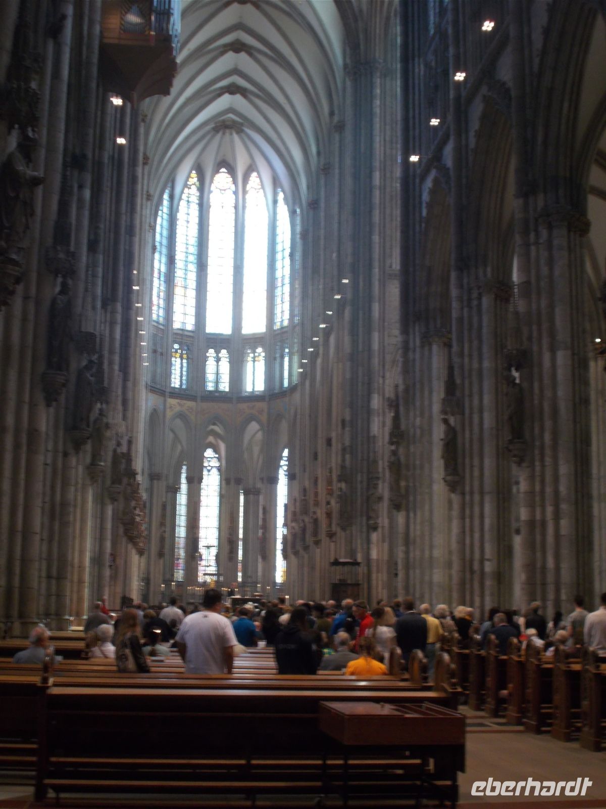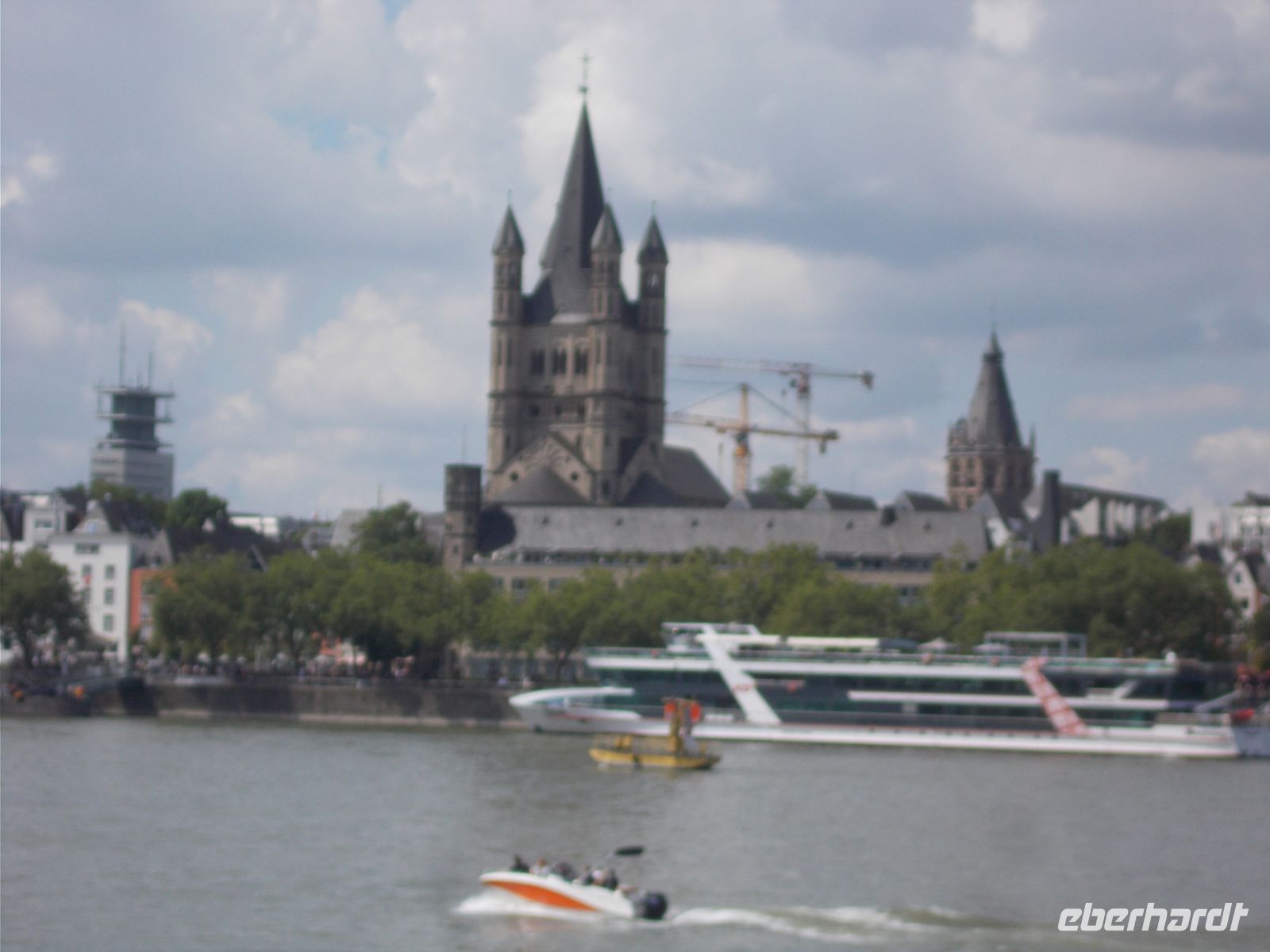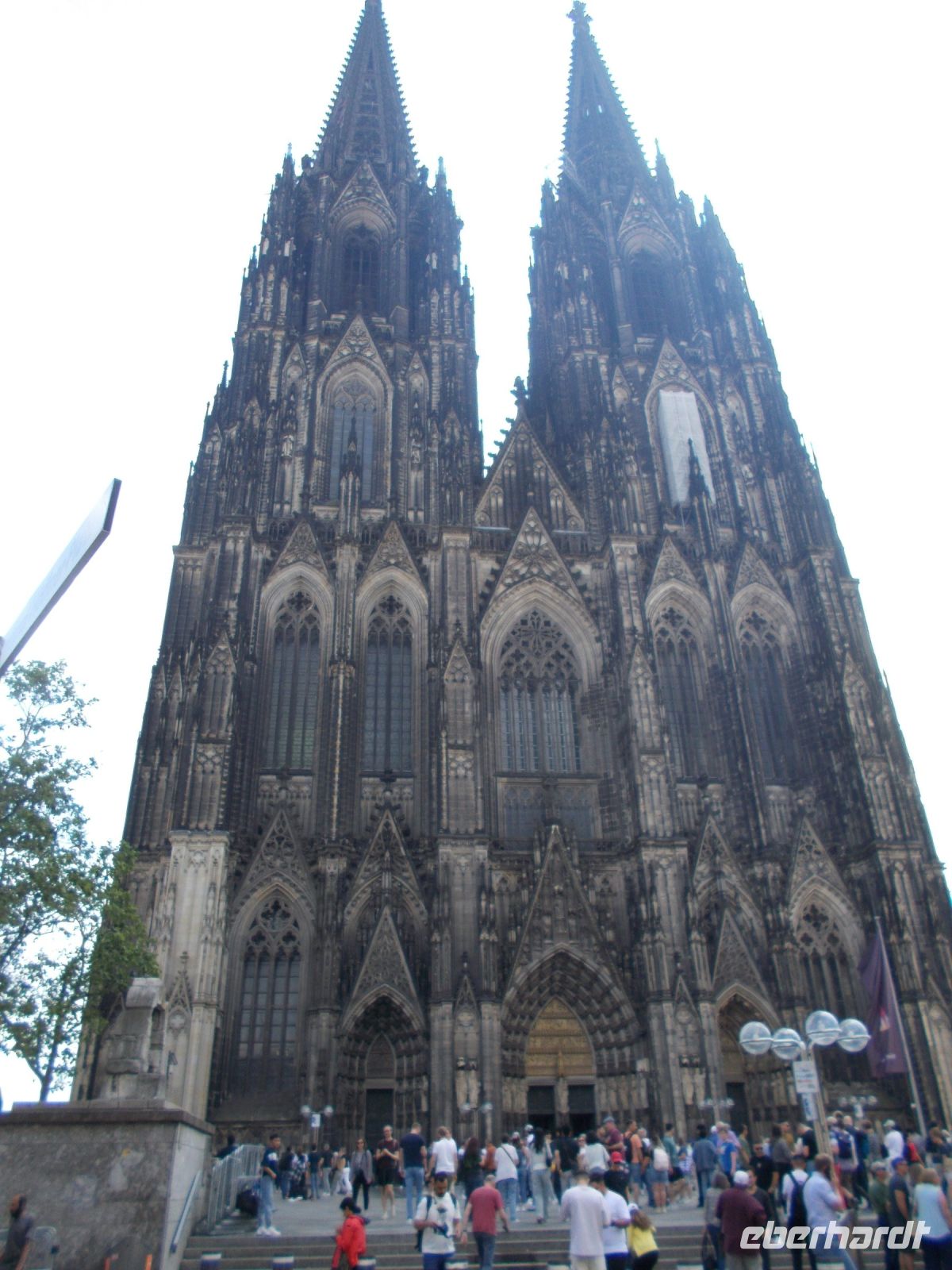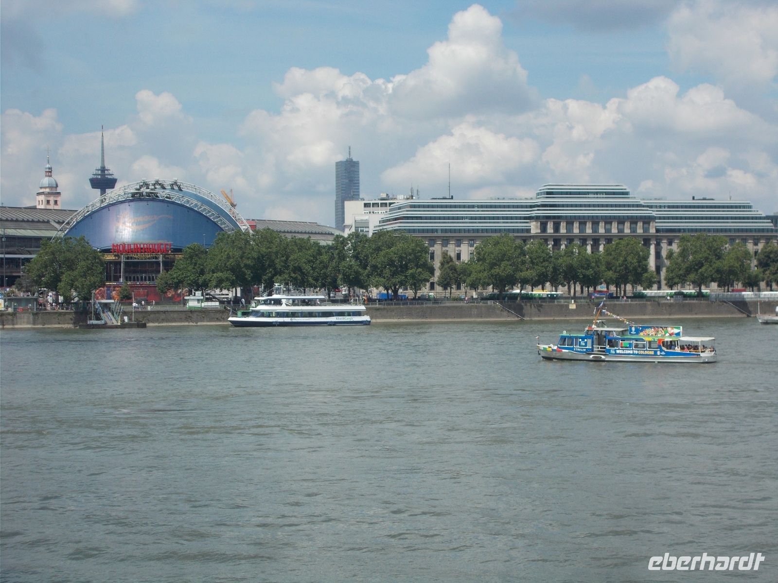 Nach dem Frühstück und dem Anbringen unserer Kofferbänder ,starteten wir Richtung Köln. In der Nähe des Doms trafen wir unseren Stadtführer, Michael,der uns begleiten wird. Wer schon in Köln ist muß, unbedingt versuchen das gigantische Wahrzeichen - den Dom, auch von innen zu besichtigen.Sonntags wird zwar die Messe dort zelebriert, aber wir schafften es einen Blick ins Innere zu werfen.Danach ging es zur Stadtrundfahrt. Die Straßen und Plätze waren immer noch gut belebt von den vielen Fußballfans ,die zum Spiel -Belgien / Rumänien- nach Köln angereist waren.Wir legten einen Fotostop am Rheinufer ein .An der gegenüberliegenden Seite sahen wir auf ein wunderschönes Panorama von Köln.Die Stadt hat sich zur viertgrößten Metropole von Deutschland entwickelt. Für die Einheimischen gibt es nur 3Ks, die wirklich für die Stadt interessant sind : 1. Kölsch - Bier und Sprache .