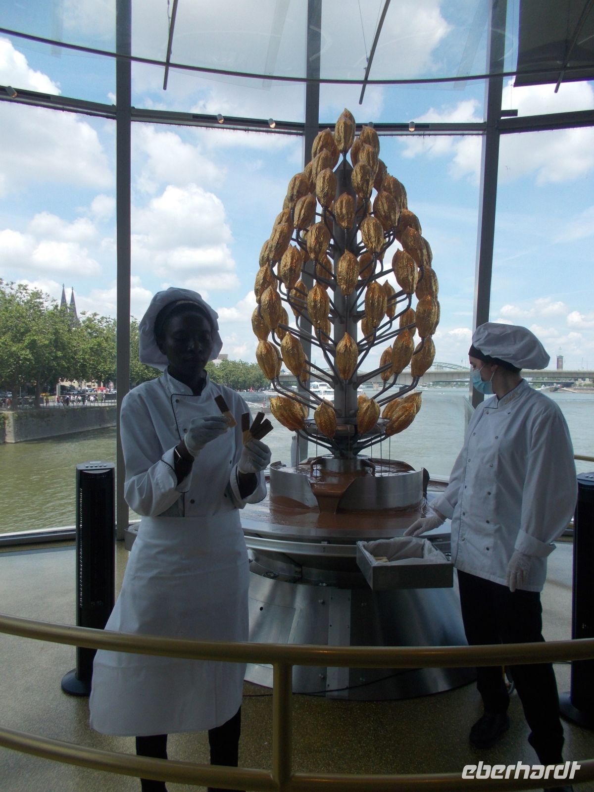 und ganz vorn dran der Spruch : " Kölsch ist die einzige Sprache ,die man trinken kann" ! na dann Prost. Leider schafften wir es nicht,ein Kölsch, zu probieren.Wir probierten etwas anderes, nämlich - Schokolade. Im Schokoladenmuseum wurden wir in die Kunst der Schoko - Herstellung eingeweiht und erhielten dazu Kostproben. Beim anschließenden Rundgang ,durchs Museum, erfuhren wir viel wissenswertes über die "süßeste Versuchung der Welt". Die Krönung war der Schokobrunnen. Eigentlich wollten wir ja eine Schiffsreise antreten und so steuerten wir den Liegeplatz der A ROSA Silva am Deutzer Ufer an. Nach dem Bezug der Kabinen und einer Einweisung ,durch das Bordpersonal,hieß es auch bald : "Leinen los" . Wir fuhren an Bonn vorbei und in der Nacht bogen wir am Deutschen Eck in die Mosel ab.