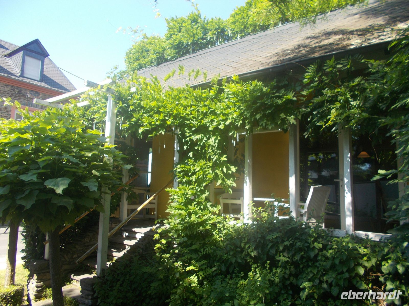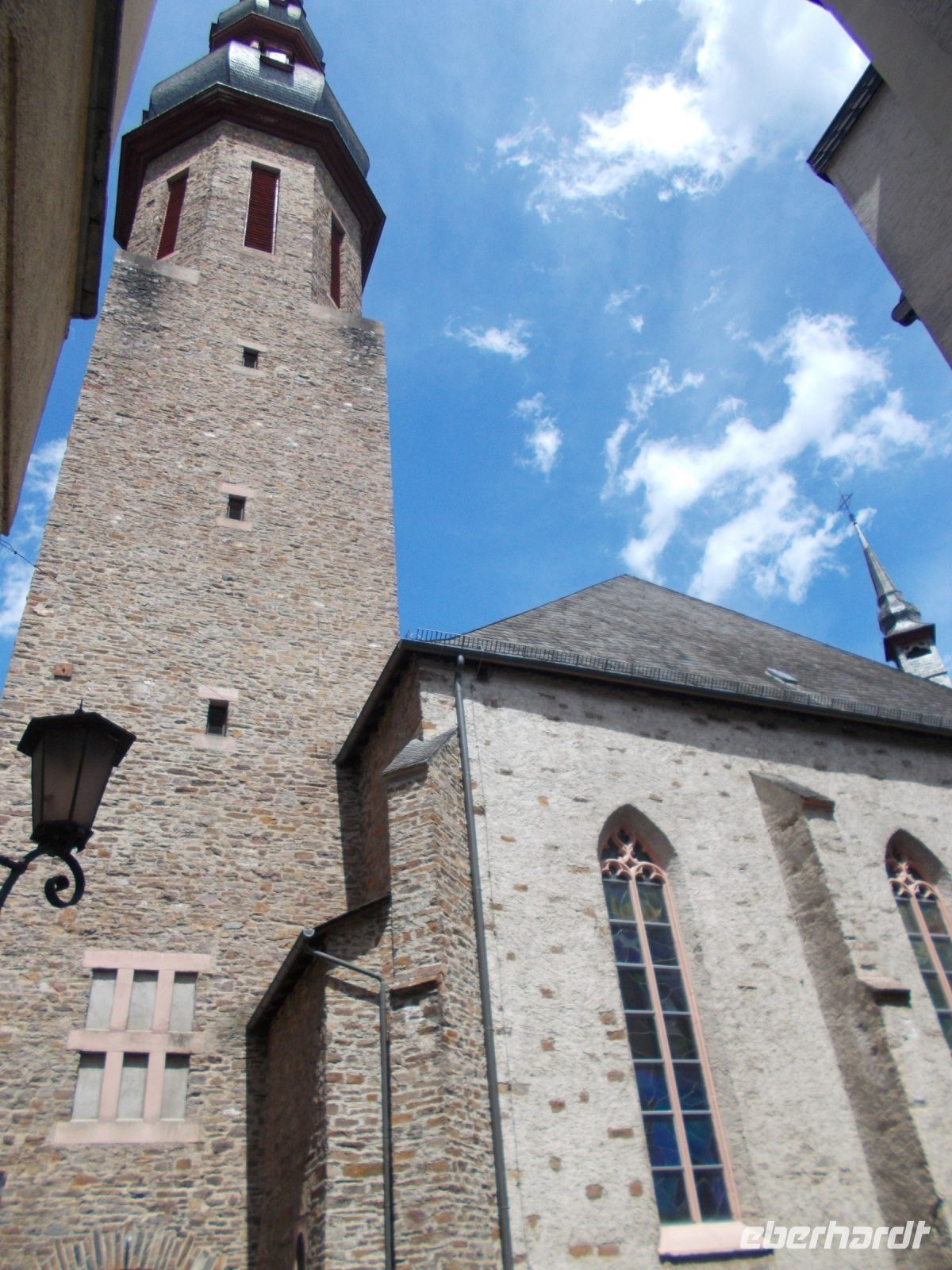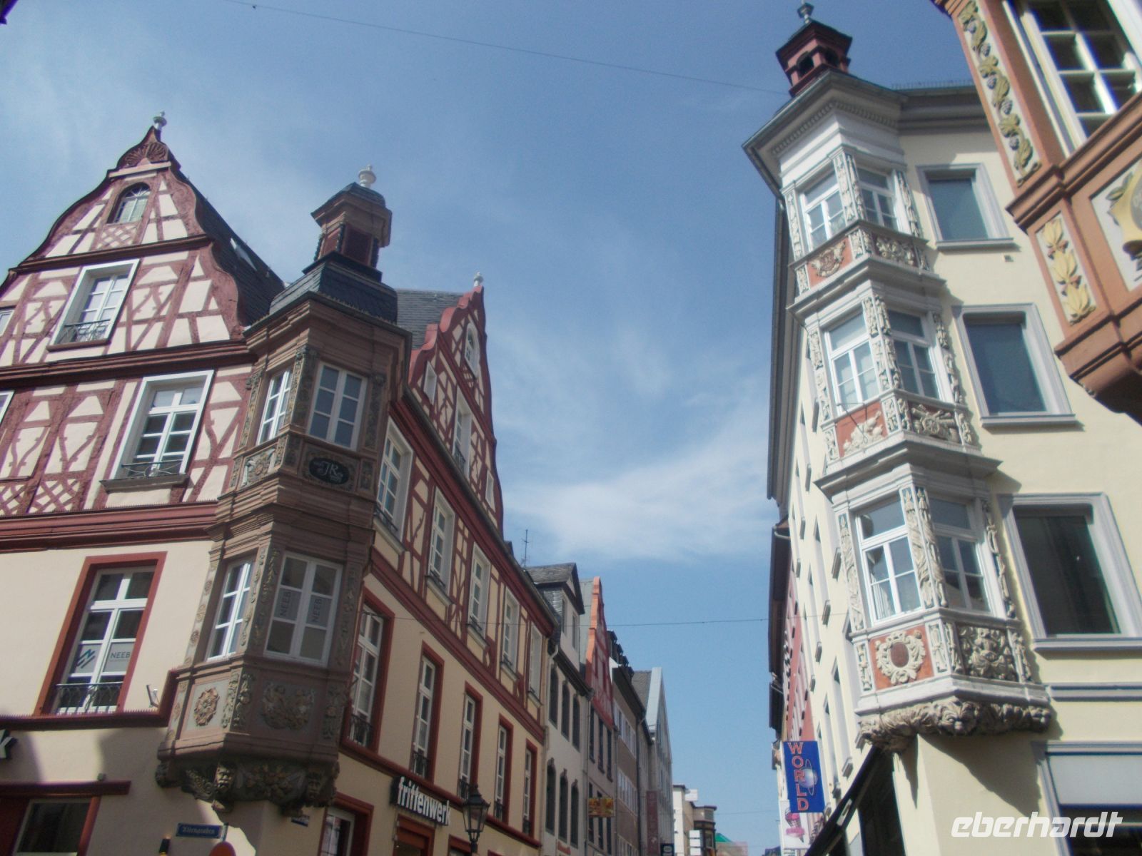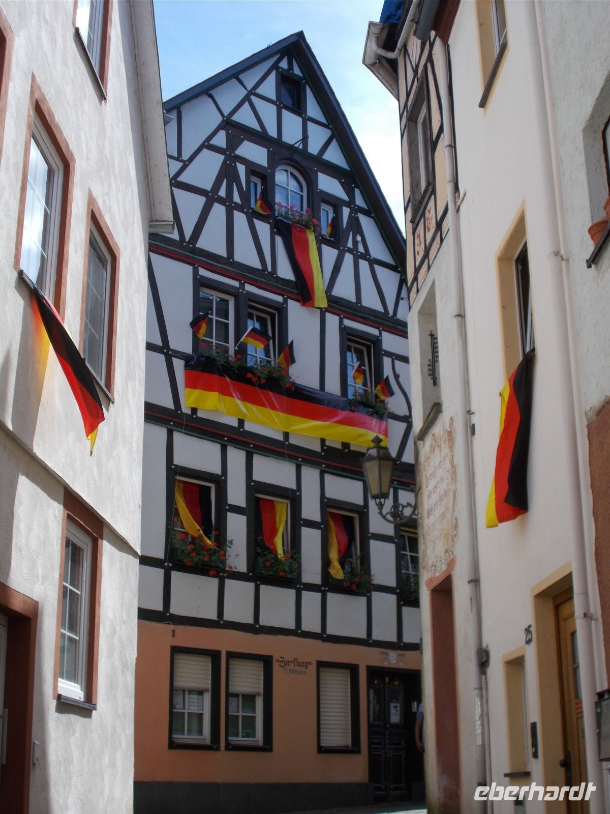 Das Frühstück nahmen wir also auf der Mosel ein und schon bald erreichten wir unseren Anleger in Treis - Karden. Das Städtchen erstreckt sich auf beiden Seiten des Rheins und verbindet sie durch eine Brücke. Ein beschaulicher kleiner Ort, mit vielen alten Fachwerkbauten. Die Anwohner müssen nur gute Nerven haben ! Die Zugstrecke führt direkt an einigen Balkons vorbei- man muß dies schon wollen und aushalten können. Als die Kelten hier vor über 2000 Jahren ihre Kultstätte errichteten und danach der heilige Castor hier siedelte, war es auf alle Fälle ruhiger. Castor war der erste Missionar im Moselgebiet. Ihm zu Ehren wurde die Kirche St.Castor gebaut. Heute ist sie die älteste Kirche, an der Mosel zwischen Trier und Koblenz - auch Moseldom genannt.Am Nachmittag sollten wir unseren Landgang beendet haben, denn das Schiff legte ab und vom Sonnendeck konnten wir die vorbeiziehende, liebliche Landschaft der Mosel genießen.