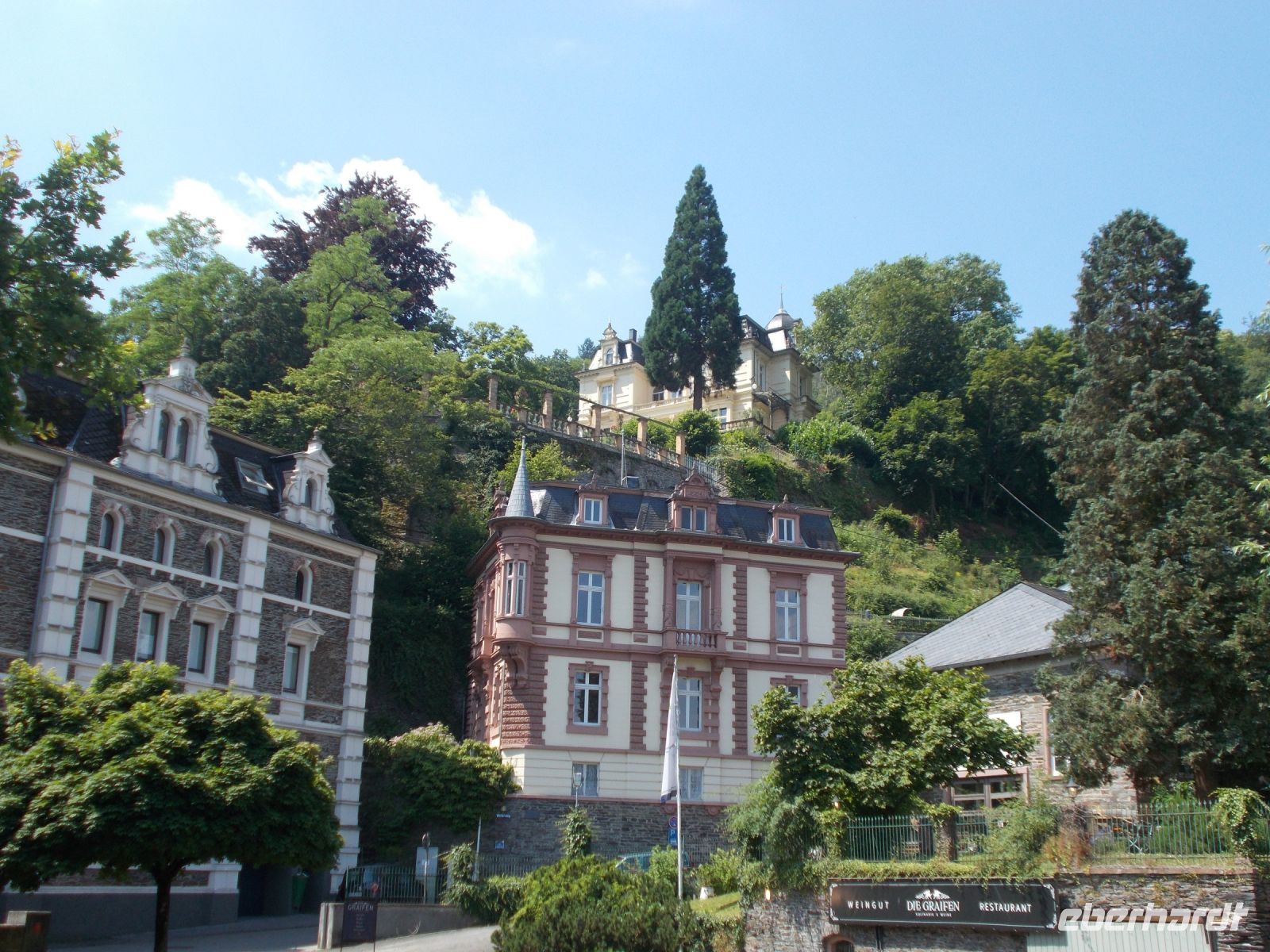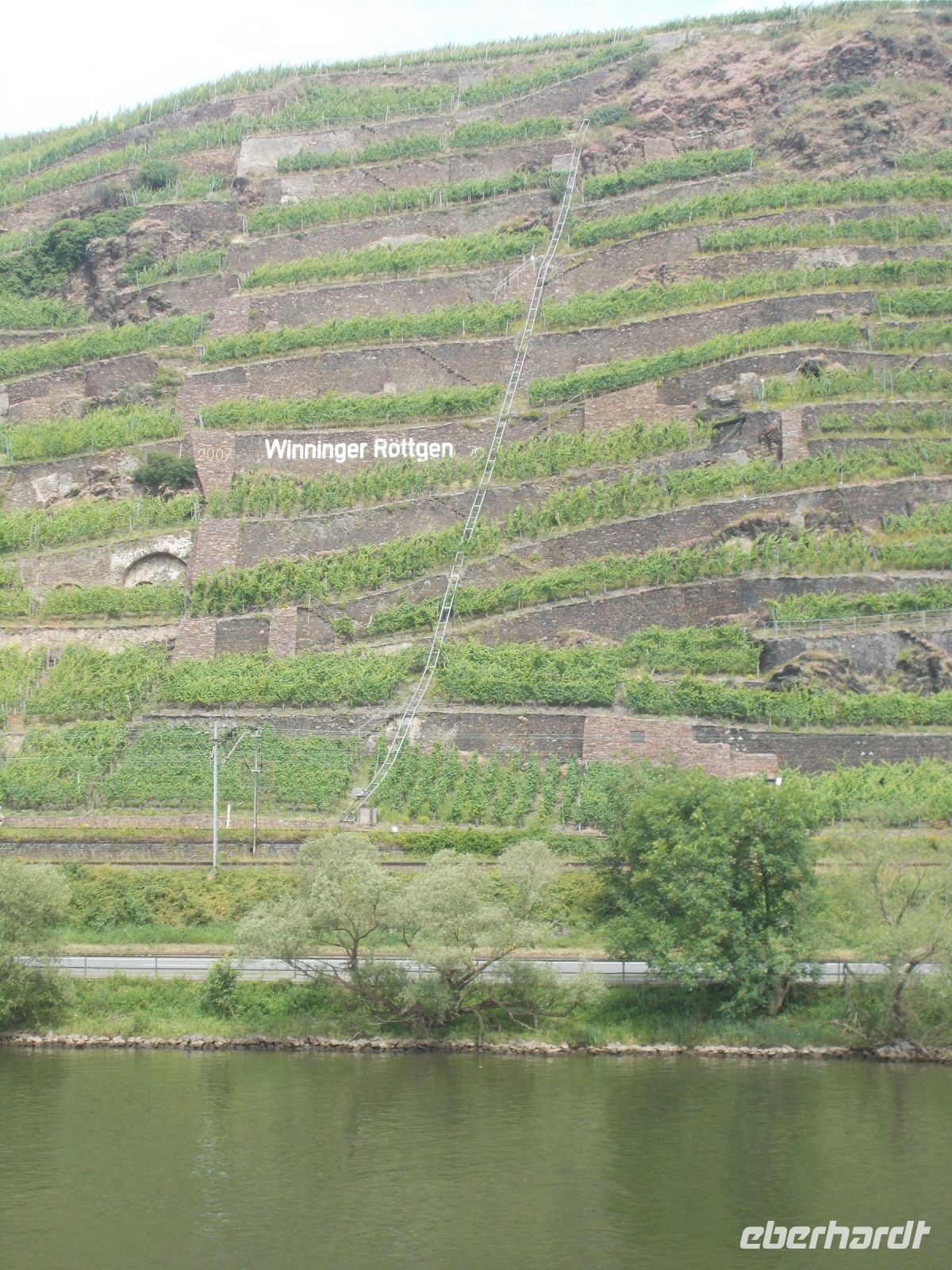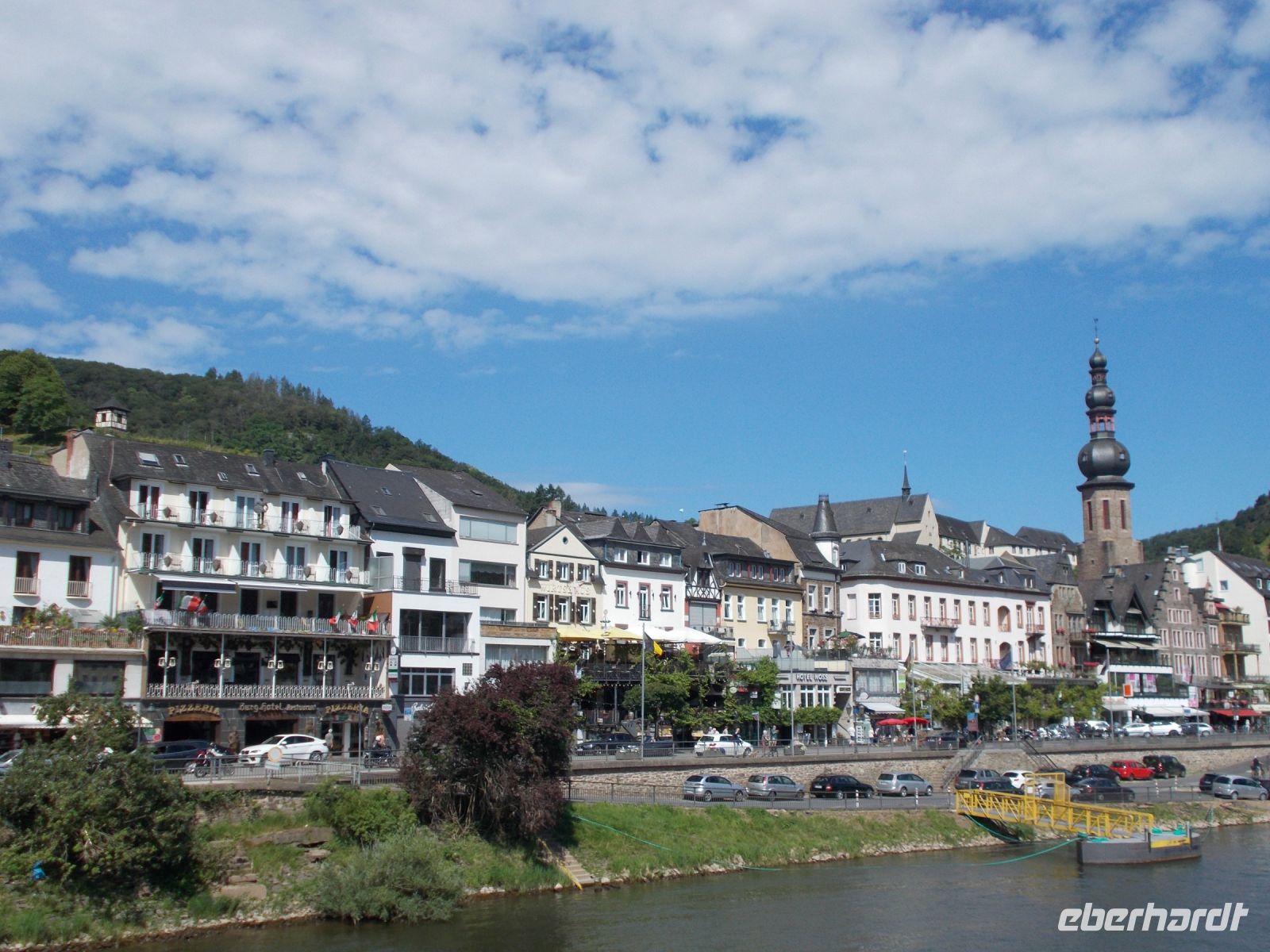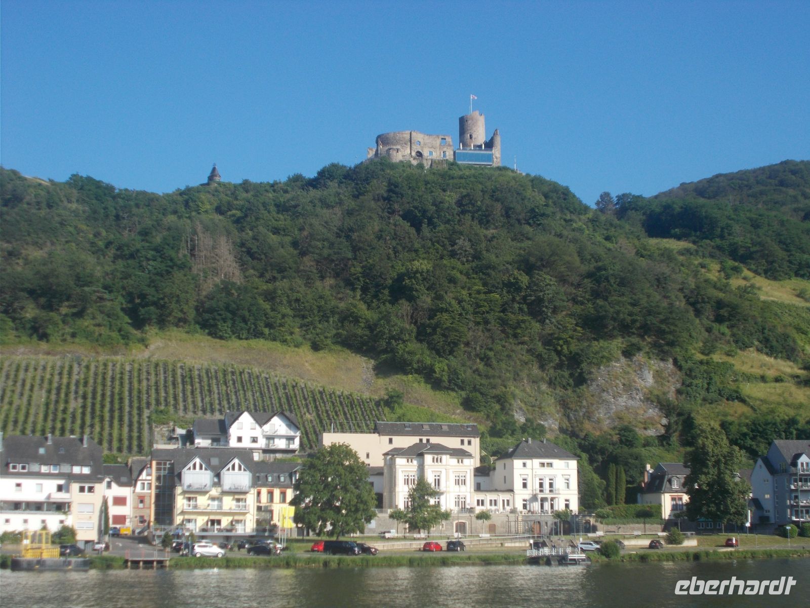 Bis Mittag Bordtag ! Wir können endlich einmal ,wieder bei angenehmen Temperaturen, die vorbeiziehende Landschaft vom Sonnendeck aus bertachten. Auf dem Abschnitt, am Moselsteig ,befindet sich der steilste Weinberg Europas, mit einer Hanglage bis 68%, - der Bremmer Calmont. Alles wird hier in Handarbeit erledigt, außer der Hubschrauber kommt (beim sprühen ) zum Einsatz. Am Mittag erreichen wir dann die Moselschleife bei Cochem.Von weitem grüßt schon die Reichsburg, mit ihrer wechselvollen Geschichte, die wir besuchen werden. Ein markannter Punkt ist auch die Aussicht vom Pinnerkreuz , welches mit einer Sesselbahn zu erreichen ist. Unser Schiff verläßt erst am Abend diesen romantischen Ort .Wir haben genügend Zeit, uns den alten Stadtkern ,mit Stadttoren, Stadtmauer, Marktplatz und die vielen schönen Fachwerkhäusern, anzusehen. Ein Bummel entlang der Moselpromenade und ein Schlückchen Wein runden diesen Ausflug ab.