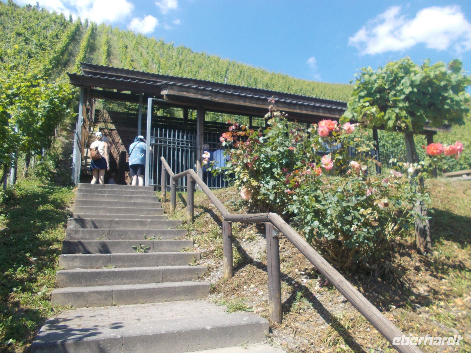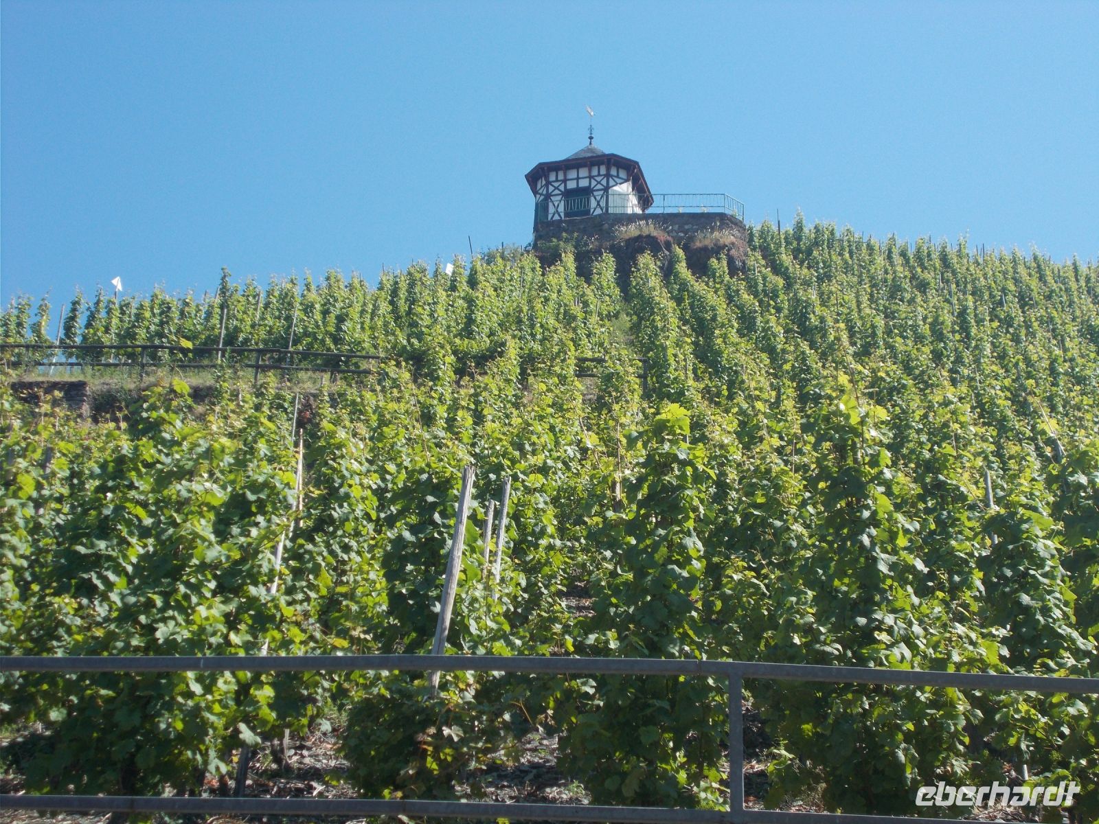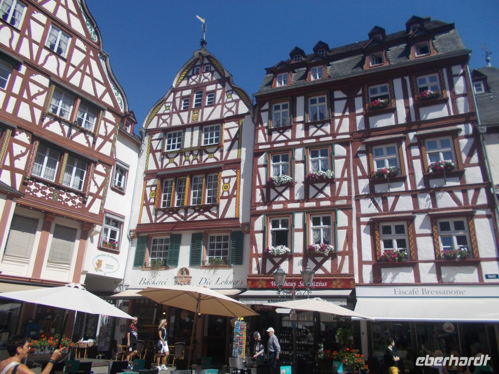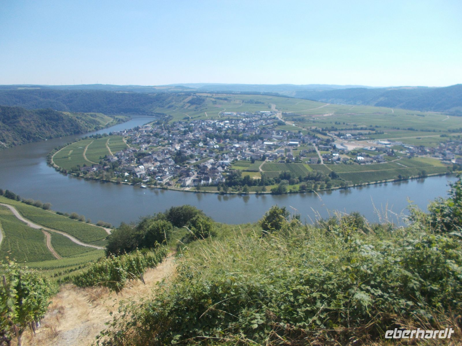 Bis Mittag Bordtag ! Wir können endlich einmal ,wieder bei angenehmen Temperaturen, die vorbeiziehende Landschaft vom Sonnendeck aus bertachten. Auf dem Abschnitt, am Moselsteig ,befindet sich der steilste Weinberg Europas, mit einer Hanglage bis 68%, - der Bremmer Calmont. Alles wird hier in Handarbeit erledigt, außer der Hubschrauber kommt (beim sprühen ) zum Einsatz. Am Mittag erreichen wir dann die Moselschleife bei Cochem.Von weitem grüßt schon die Reichsburg, mit ihrer wechselvollen Geschichte, die wir besuchen werden. Ein markannter Punkt ist auch die Aussicht vom Pinnerkreuz , welches mit einer Sesselbahn zu erreichen ist. Unser Schiff verläßt erst am Abend diesen romantischen Ort .Wir haben genügend Zeit, uns den alten Stadtkern ,mit Stadttoren, Stadtmauer, Marktplatz und die vielen schönen Fachwerkhäusern, anzusehen. Ein Bummel entlang der Moselpromenade und ein Schlückchen Wein runden diesen Ausflug ab.