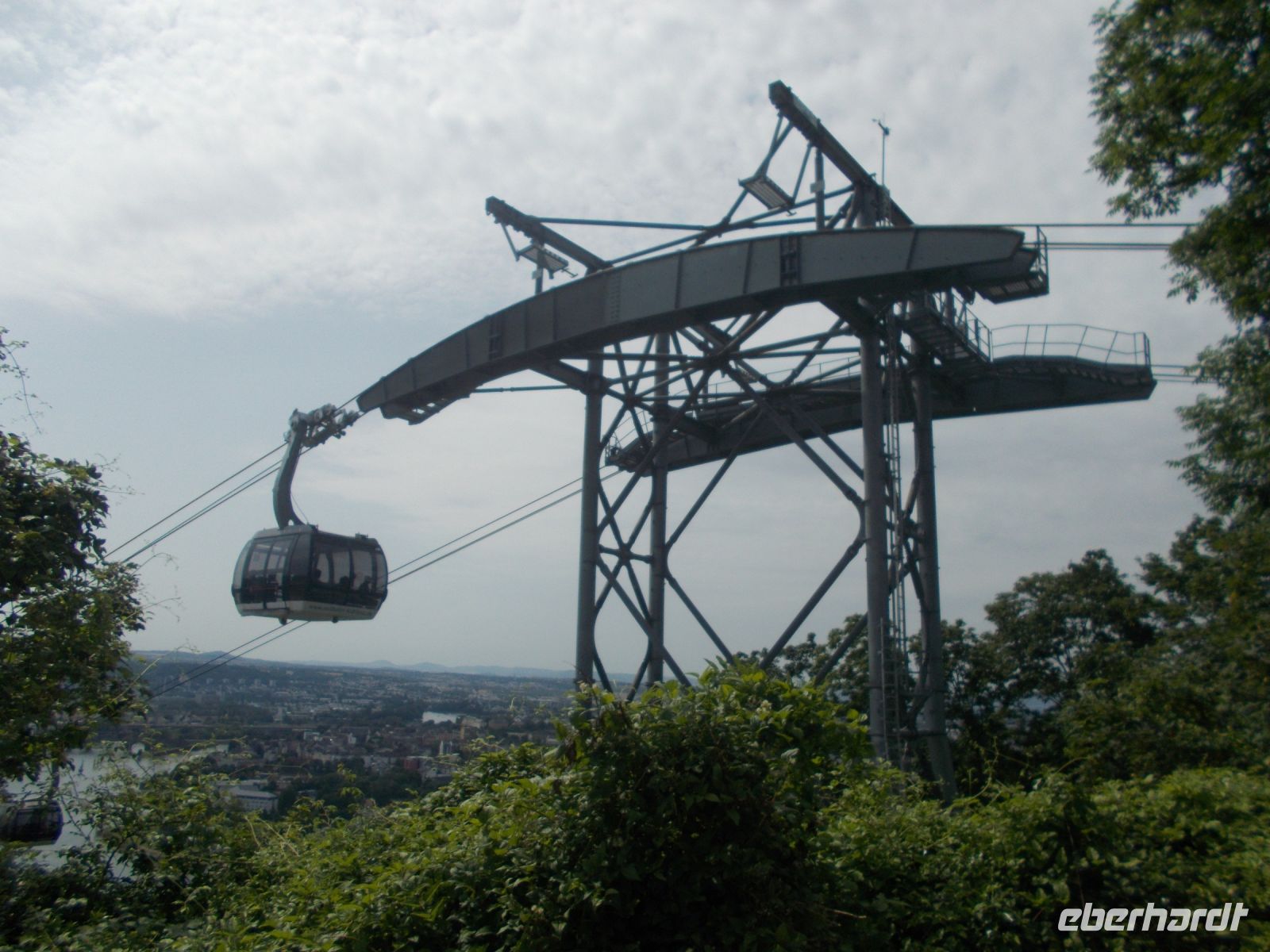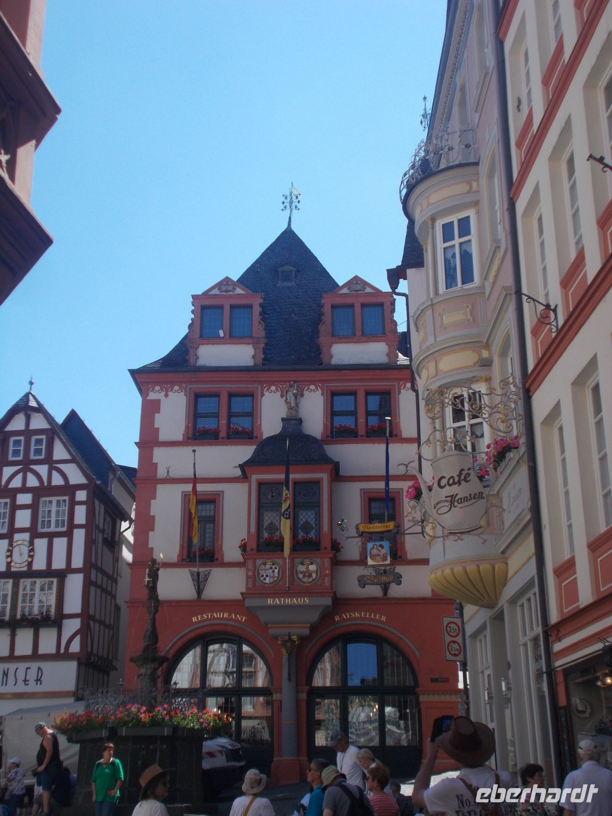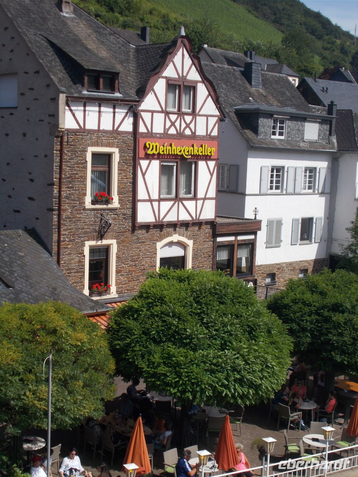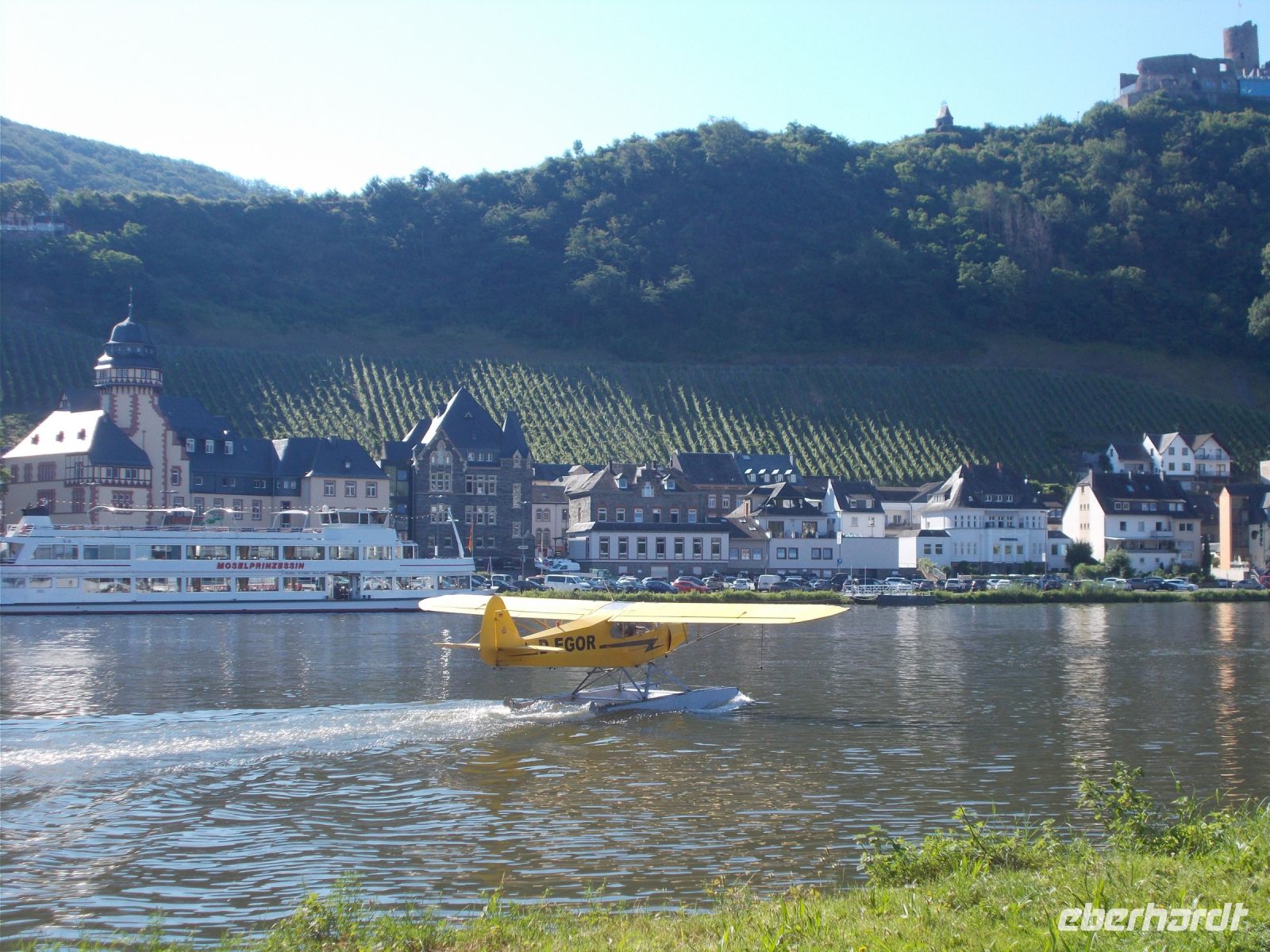 Bis Mittag Bordtag ! Wir können endlich einmal ,wieder bei angenehmen Temperaturen, die vorbeiziehende Landschaft vom Sonnendeck aus bertachten. Auf dem Abschnitt, am Moselsteig ,befindet sich der steilste Weinberg Europas, mit einer Hanglage bis 68%, - der Bremmer Calmont. Alles wird hier in Handarbeit erledigt, außer der Hubschrauber kommt (beim sprühen ) zum Einsatz. Am Mittag erreichen wir dann die Moselschleife bei Cochem.Von weitem grüßt schon die Reichsburg, mit ihrer wechselvollen Geschichte, die wir besuchen werden. Ein markannter Punkt ist auch die Aussicht vom Pinnerkreuz , welches mit einer Sesselbahn zu erreichen ist. Unser Schiff verläßt erst am Abend diesen romantischen Ort .Wir haben genügend Zeit, uns den alten Stadtkern ,mit Stadttoren, Stadtmauer, Marktplatz und die vielen schönen Fachwerkhäusern, anzusehen. Ein Bummel entlang der Moselpromenade und ein Schlückchen Wein runden diesen Ausflug ab.