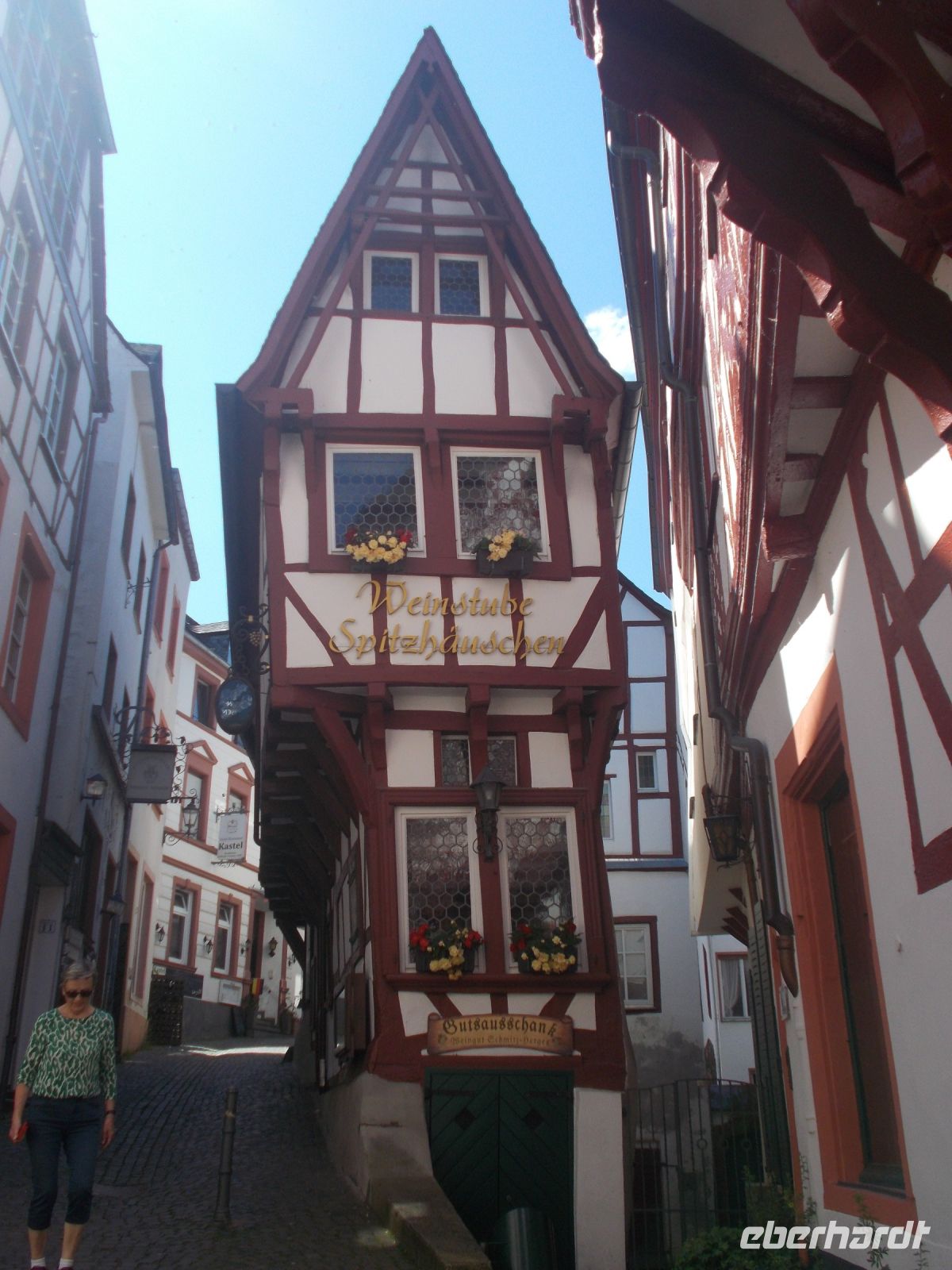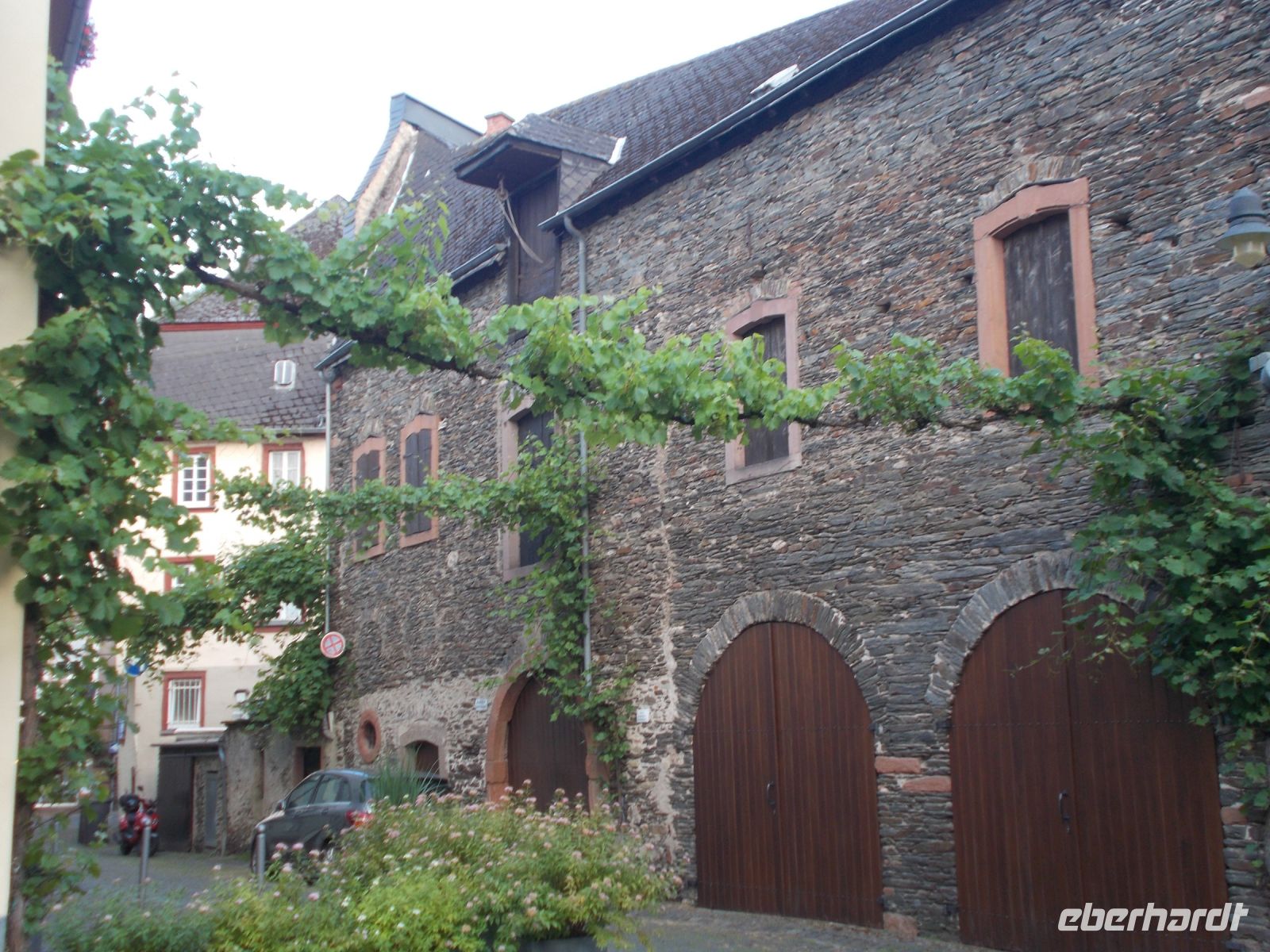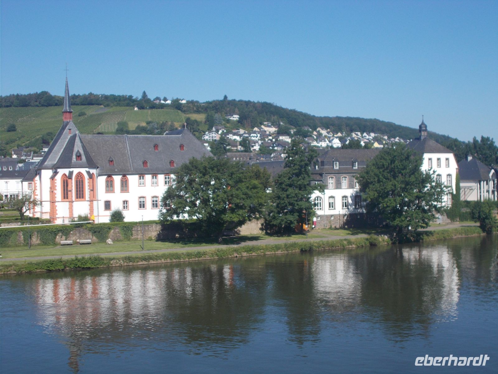 In der Nacht haben wir Bernkastel Kues erreicht. Gefrühstückt wird heute mit Blick auf die Burgruine Landshut. Sie könnte einer der ältesten Burganlagen im Moseltal sein. Auf alle Fälle gesundete hier der Kurfürst Boemund, nach der Verabreichung des hiesigen Weines. Noch heute wird dieser Wein hier am berühmten Doktorberg angebaut und serviert. Die Weine des Doktor- Weingutes zählen zu den teuersten "Traubensäften". Diese Geschichte und vieles mehr, erführen wir bei einem unterhaltsamen Stadtrundgang auf Bernkasteler Seite. Ja, auch dieser Ort erstreckt sich zu beiden Seiten der Mosel und wird durch eine Brücke miteinander verbunden. Unser Schiff lag auf der Kueser Seite und so hatten wir es nicht weit bis zum Cusanusstift. Es wurde als Armenhaus gegründet ,hat noch heute diese Funktion (Seniorenstift) und gehört somit zu den ältesten Einrichtungen seiner Art in Europa.Die Gründung, dieser Stiftung, geht auf Kardinal Nikolaus Cusanus zurück, ein Universalgelehrter seiner Zeit.In den altehrwürdigen Gemächern befindet sich außerdem eine bedeutende Bibliothek und Vinothek. Zur Weinverkostung und Rundfahrt ,durch diverse Moselstädtchen, geht es am Nachmittag. Entlang der engen Straßendörfer , an der Mosel, erreichten wir Brauneberg. Dort wurde bei Arbeiten im Weinberg, eine alte römische Kelteranlage entdeckt und freigelegt. Typisch für den Bau solcher Anlagen waren die Steillagen der Rebenhänge, an derem Fuß sie angelegt wurden. Der Riesling ist die bevorzugte Traubensorte. Sie gedeiht hier hervorragend auf diesen Schieferböden, die die nötigen Mineralien für den besonderen Geschmack bringen. Selbst die Winzerhäuser sind aus Schieferbruchsteinen erbaut und geben der Gegend ein besonderes Flair. Im Weingut Karp - Schreiber , in Brauneberg konnten wir diese köstlichen Tropfen verkosten. LECKER ! Auf der Rückfahrt ,von unserer Tour entlang der Mittelmosel, bestaunten wir noch das Lieser Schloß, welches aus dem Dornröschenschlaf erweckt wurde.