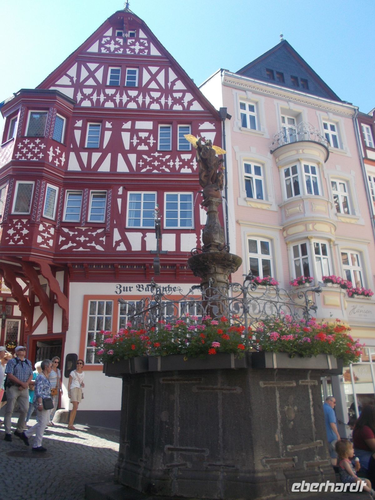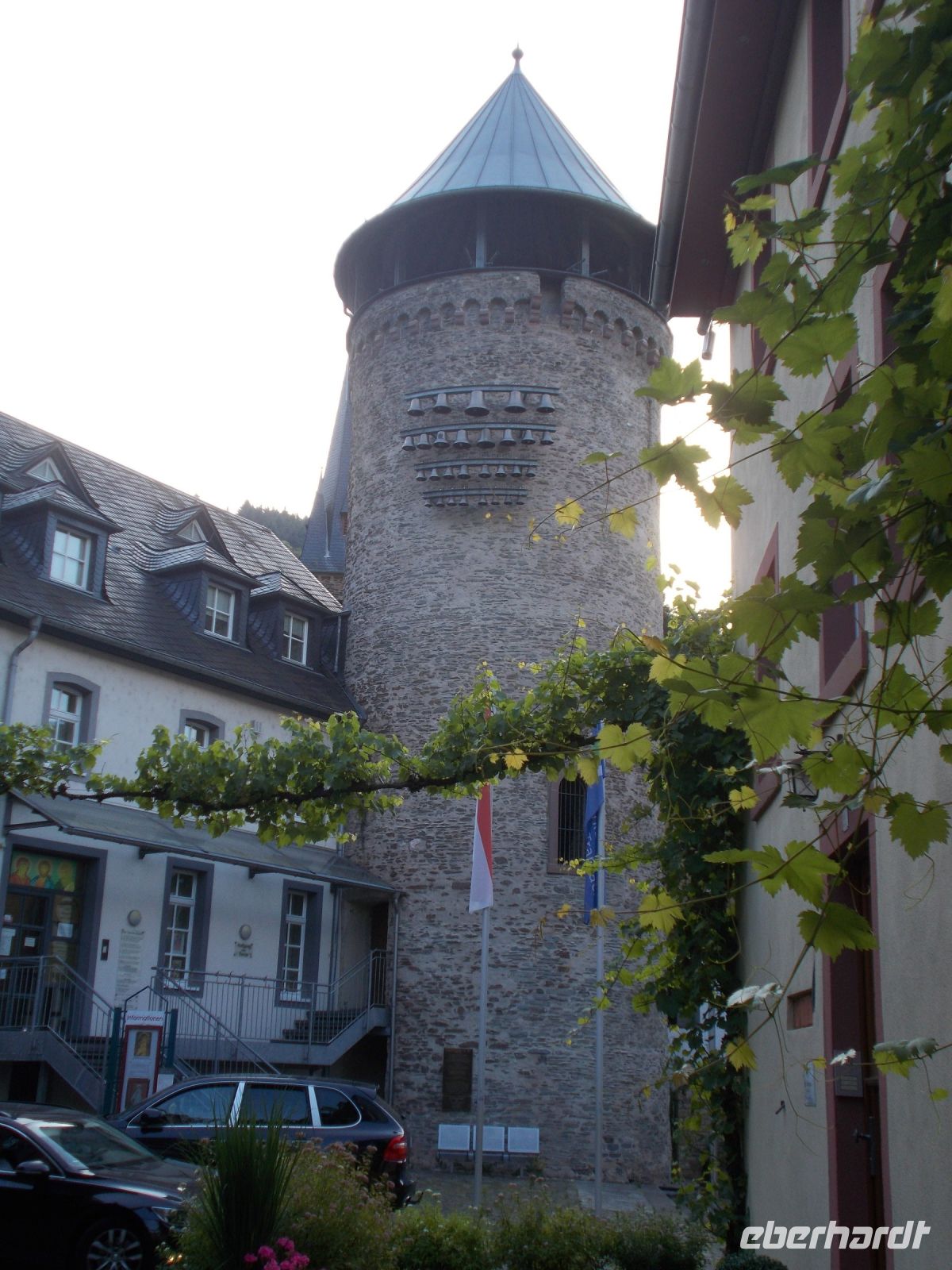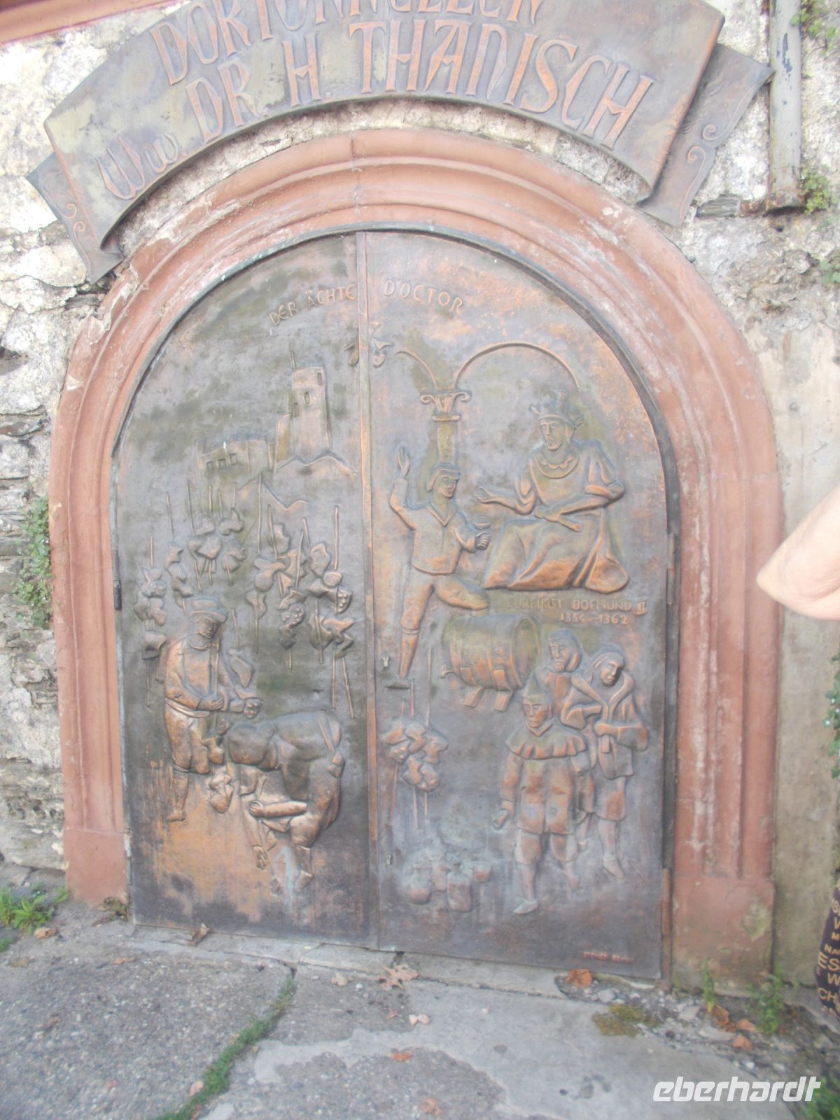 In der Nacht haben wir Bernkastel Kues erreicht. Gefrühstückt wird heute mit Blick auf die Burgruine Landshut. Sie könnte einer der ältesten Burganlagen im Moseltal sein. Auf alle Fälle gesundete hier der Kurfürst Boemund, nach der Verabreichung des hiesigen Weines. Noch heute wird dieser Wein hier am berühmten Doktorberg angebaut und serviert. Die Weine des Doktor- Weingutes zählen zu den teuersten "Traubensäften". Diese Geschichte und vieles mehr, erführen wir bei einem unterhaltsamen Stadtrundgang auf Bernkasteler Seite. Ja, auch dieser Ort erstreckt sich zu beiden Seiten der Mosel und wird durch eine Brücke miteinander verbunden. Unser Schiff lag auf der Kueser Seite und so hatten wir es nicht weit bis zum Cusanusstift. Es wurde als Armenhaus gegründet ,hat noch heute diese Funktion (Seniorenstift) und gehört somit zu den ältesten Einrichtungen seiner Art in Europa.Die Gründung, dieser Stiftung, geht auf Kardinal Nikolaus Cusanus zurück, ein Universalgelehrter seiner Zeit.In den altehrwürdigen Gemächern befindet sich außerdem eine bedeutende Bibliothek und Vinothek. Zur Weinverkostung und Rundfahrt ,durch diverse Moselstädtchen, geht es am Nachmittag. Entlang der engen Straßendörfer , an der Mosel, erreichten wir Brauneberg. Dort wurde bei Arbeiten im Weinberg, eine alte römische Kelteranlage entdeckt und freigelegt. Typisch für den Bau solcher Anlagen waren die Steillagen der Rebenhänge, an derem Fuß sie angelegt wurden. Der Riesling ist die bevorzugte Traubensorte. Sie gedeiht hier hervorragend auf diesen Schieferböden, die die nötigen Mineralien für den besonderen Geschmack bringen. Selbst die Winzerhäuser sind aus Schieferbruchsteinen erbaut und geben der Gegend ein besonderes Flair. Im Weingut Karp - Schreiber , in Brauneberg konnten wir diese köstlichen Tropfen verkosten. LECKER ! Auf der Rückfahrt ,von unserer Tour entlang der Mittelmosel, bestaunten wir noch das Lieser Schloß, welches aus dem Dornröschenschlaf erweckt wurde.